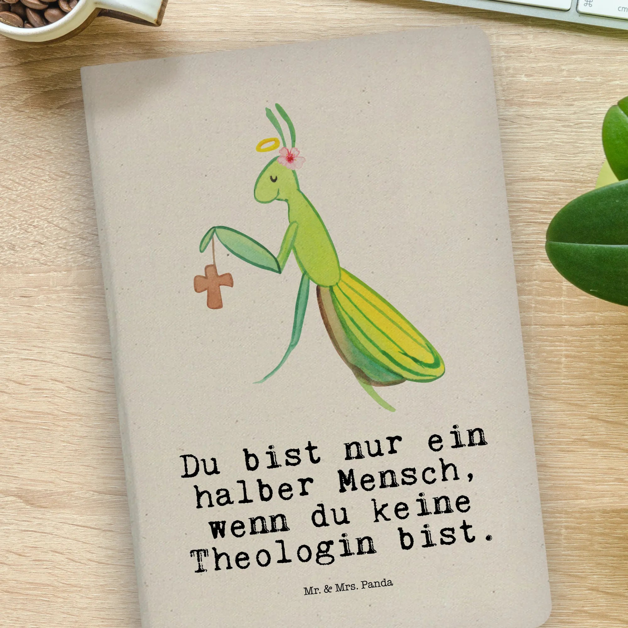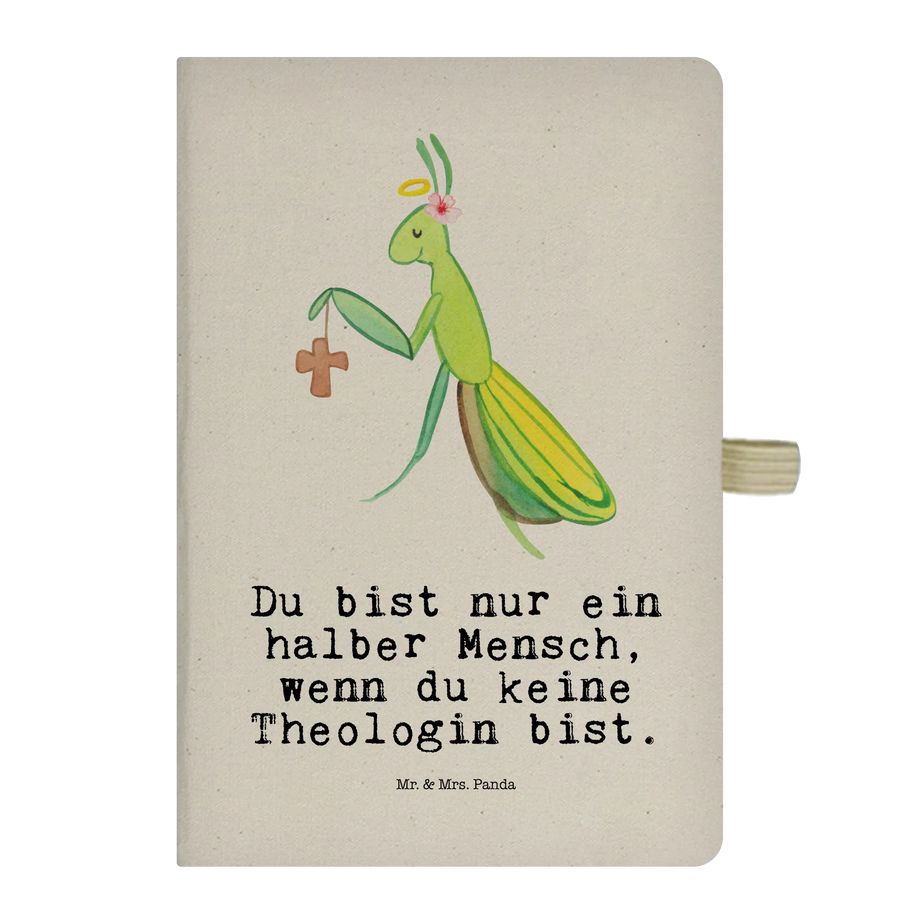 Liebevoll & persönlich: Das DIN A4 Baumwoll Notizbuch "Theologin mit Herz" aus der Berufe-Kollektion von Mr. & Mrs. Panda ist ein herzliches Geschenk für Theologinnen, Religionslehrerinnen, Theologiestudentinnen oder die liebe Kollegin im Pfarramt. Das Motiv zeigt eine süße Gottesanbeterin mit Heiligenschein und Kreuz – kombiniert mit dem frechen Spruch „Du bist nur ein halber Mensch, wenn du keine Theologin bist.“