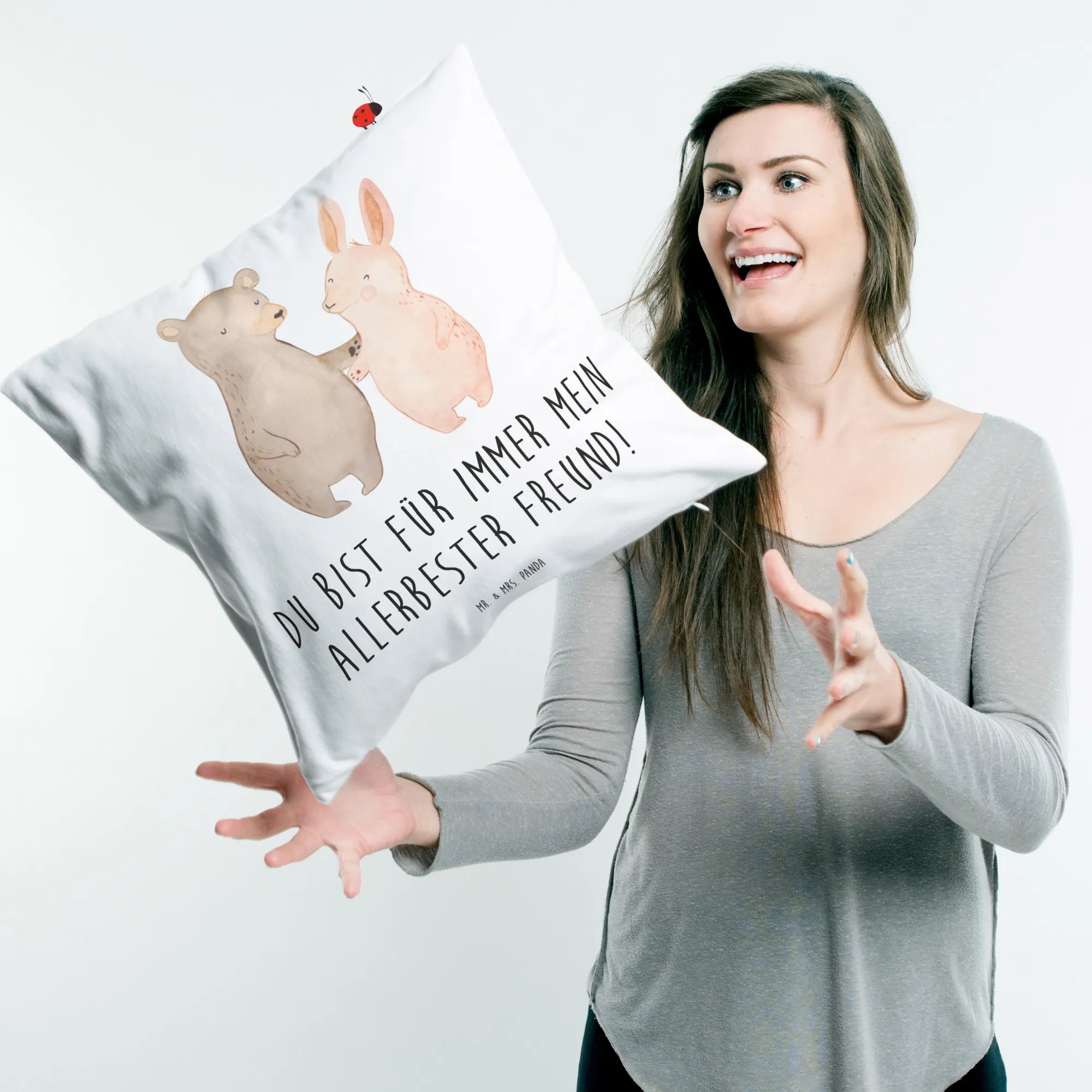 This cushion is also a lovely expression of affection for various occasions! Whether it's for an anniversary gift, Valentine's Day surprise, or as a heartfelt wedding present, the Bear and Bunny hug motif speaks volumes about love and friendship. Plus, with the touching sentiment of "You’ll always be my very best friend!", it's sure to make your loved one feel special and cherished.