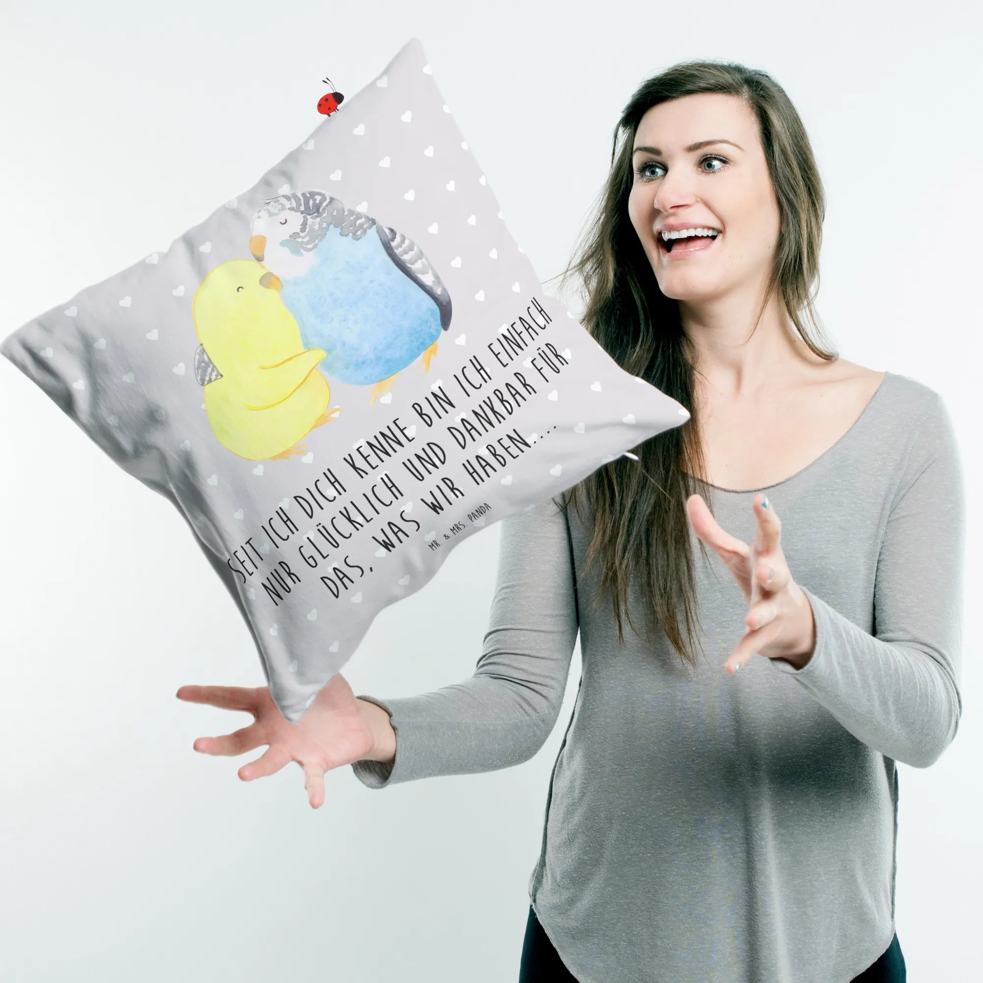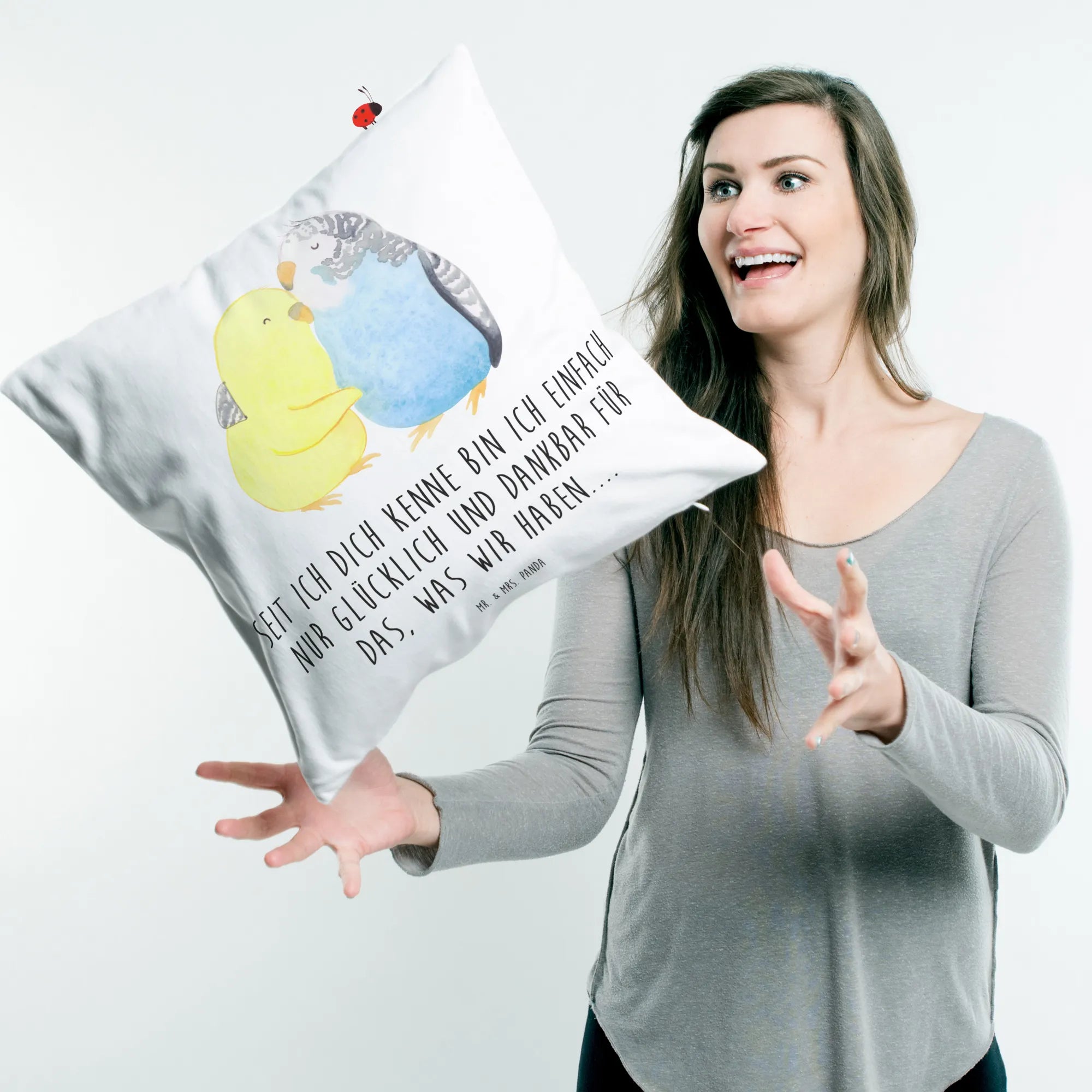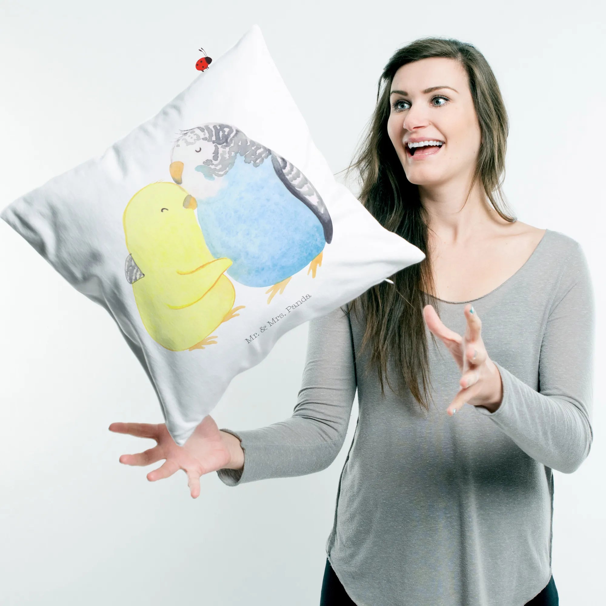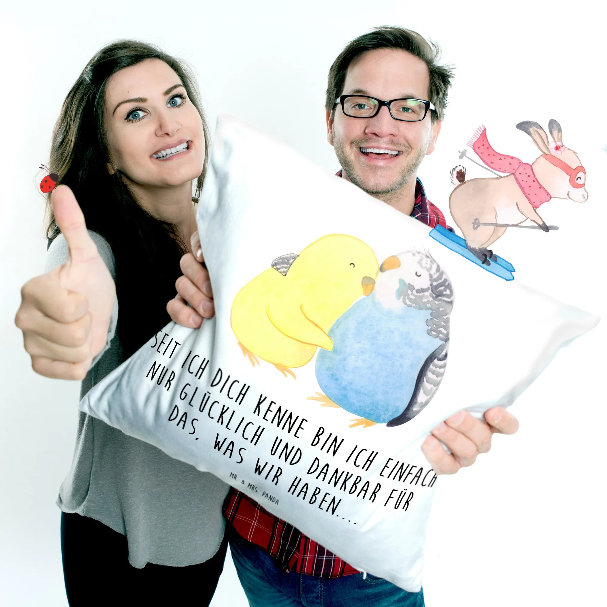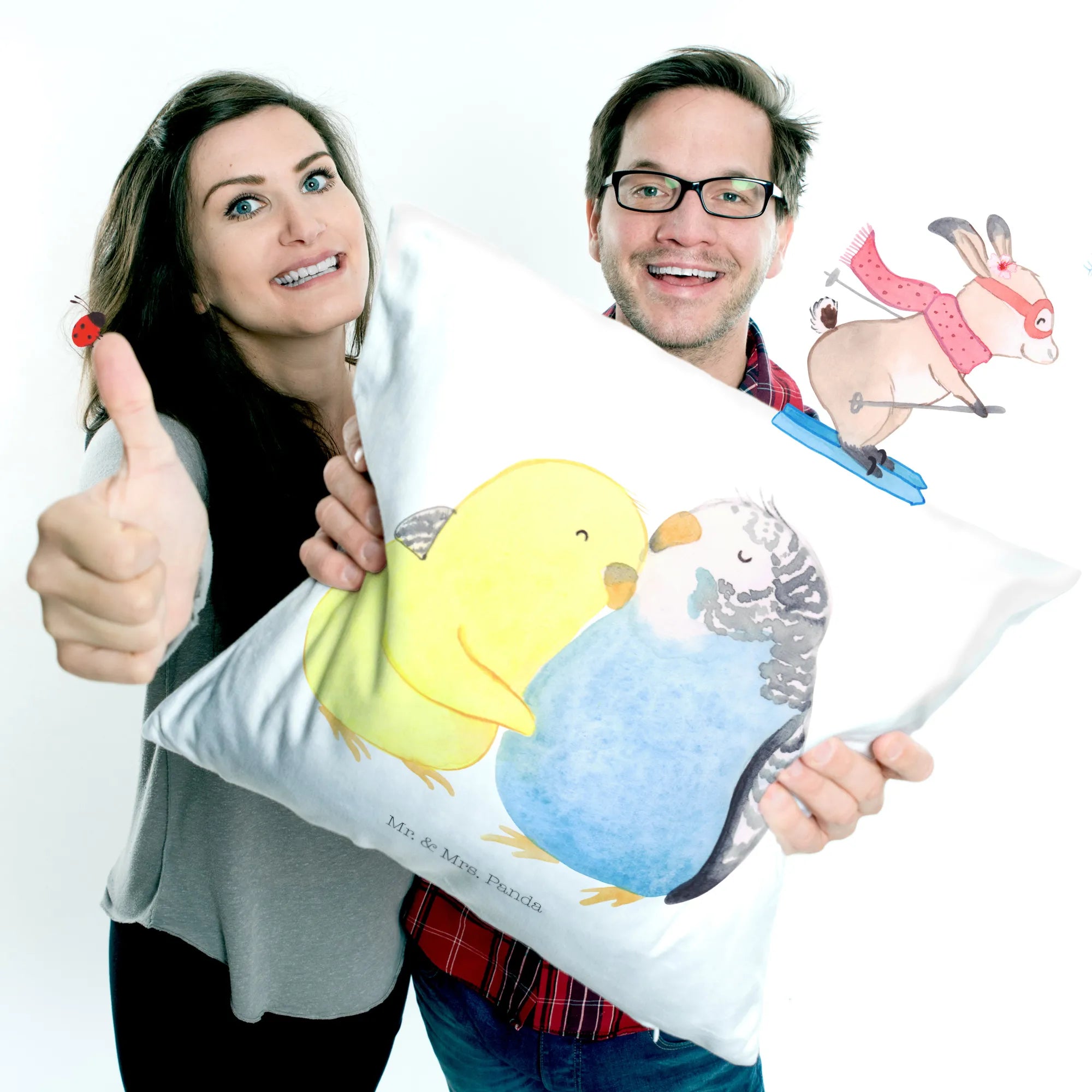Make this adorable cushion a part of your living space today or gift it to someone special and watch their face light up with surprise and joy! Because who wouldn’t want a pair of loving parakeets by their side, encouraging them to celebrate love every day? Come and cuddle up with Mr. & Mrs. Panda’s delightful designs!
