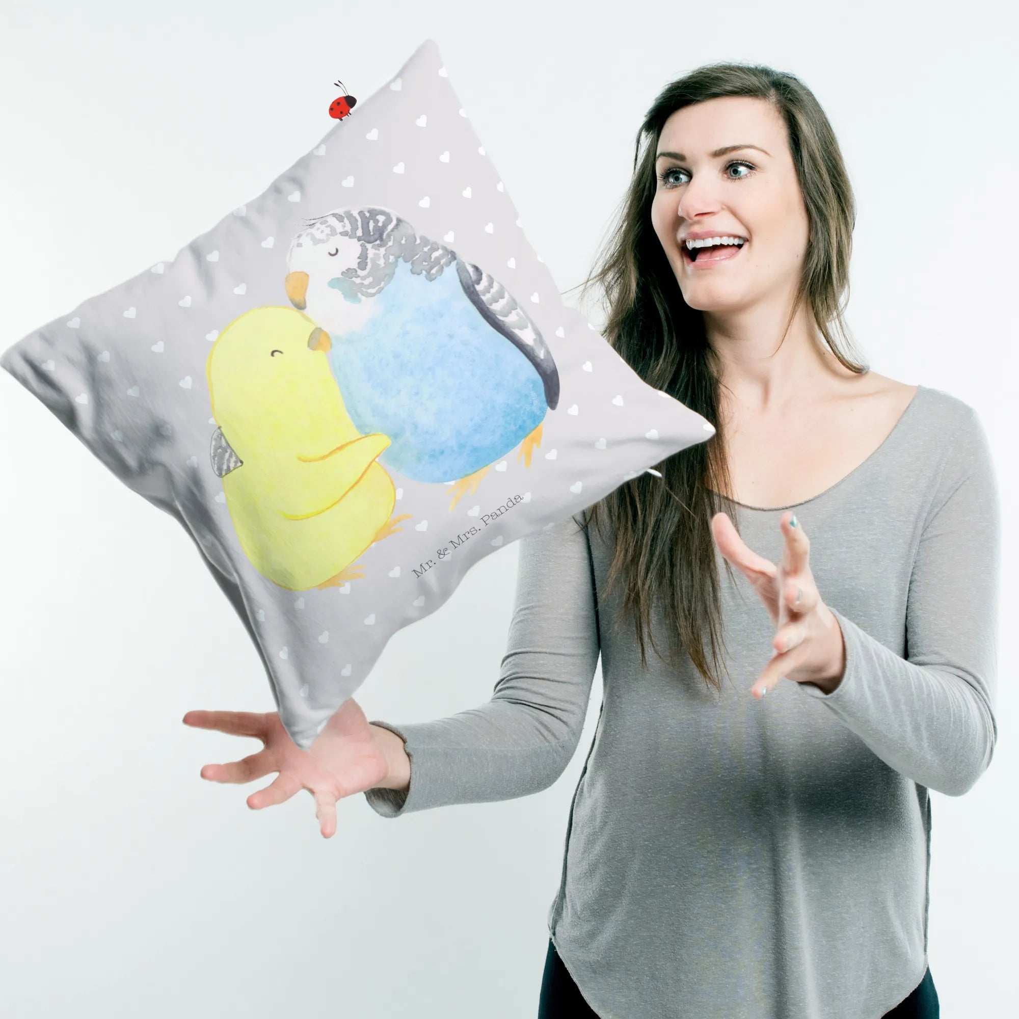 If you’re searching for the perfect gift for that special someone in your life, look no further than the fabulous Cushion featuring Parakeets in Love from our beloved Love collection at Mr. & Mrs. Panda! This delightful cushion is soft, fluffy, and designed to add a cozy touch to any space, be it a bedroom, couch, or settee.