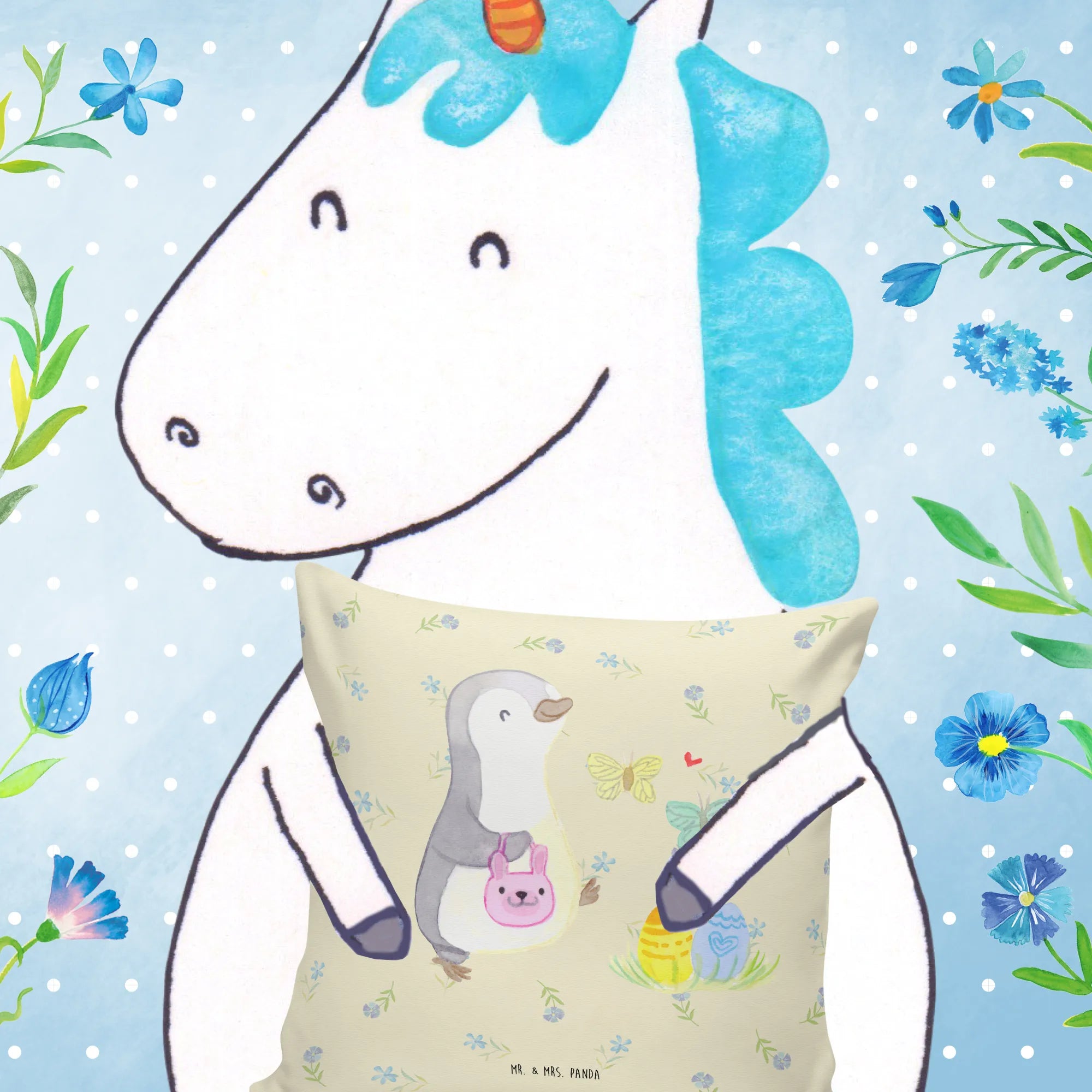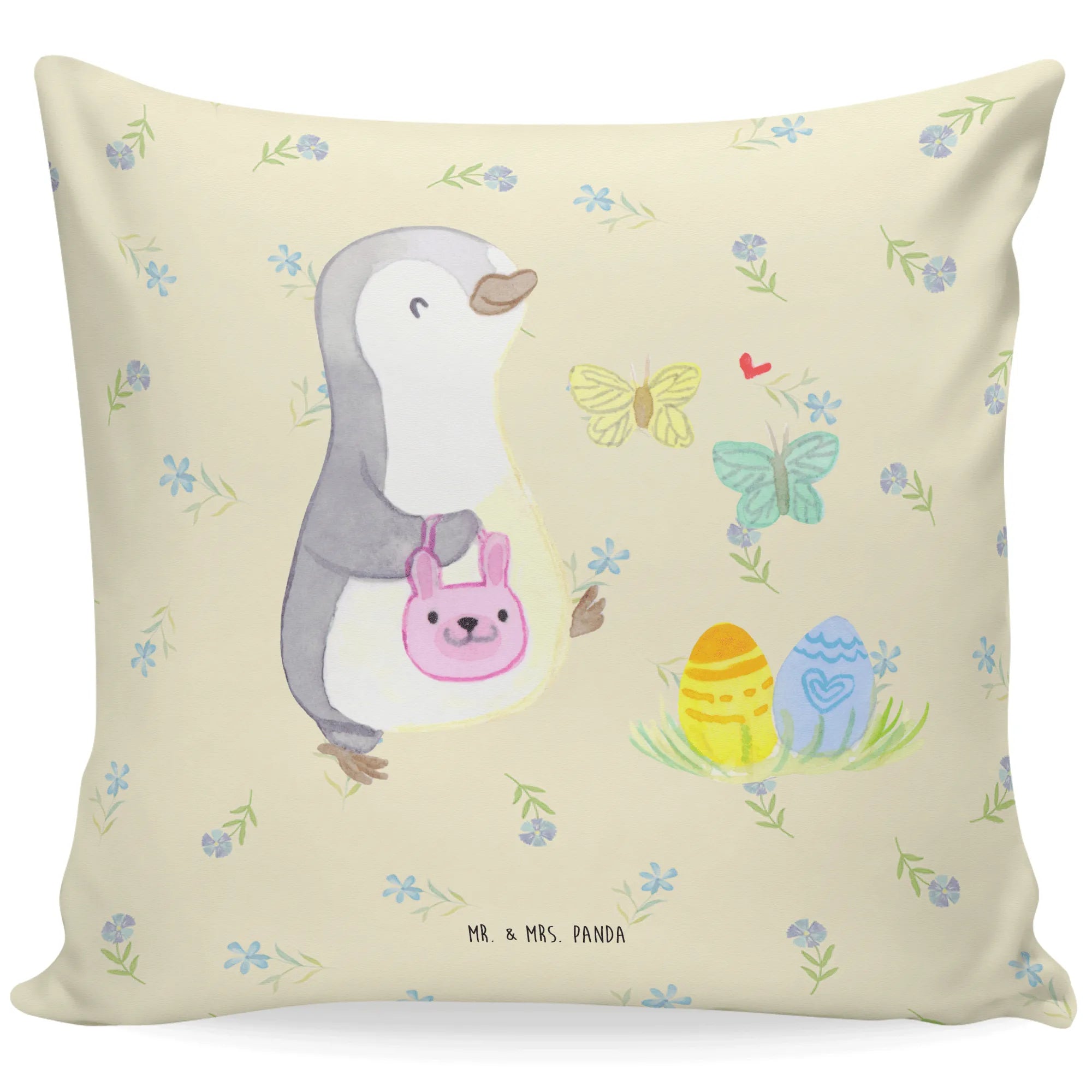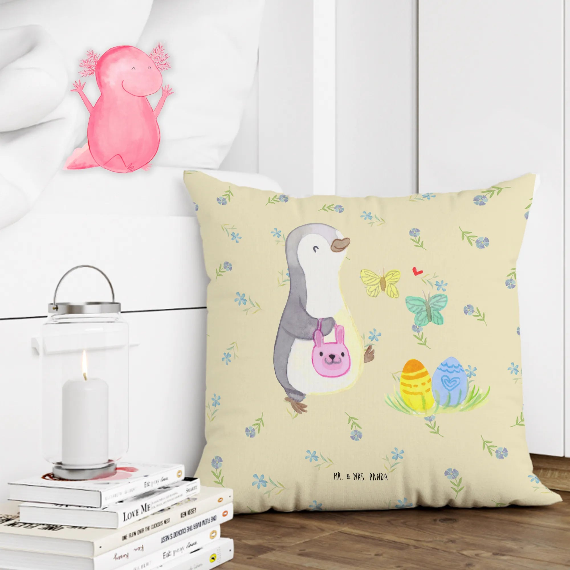 The adorable design features a cheerful penguin on a quest for Easter eggs, lovingly hand-drawn by Mrs. Panda. It’s an eye-catching motif that tells a story—one of adventure and fun, exciting both kids and adults alike. The vibrant colors and whimsical charm of this pillow bring the Easter spirit right into your home.
