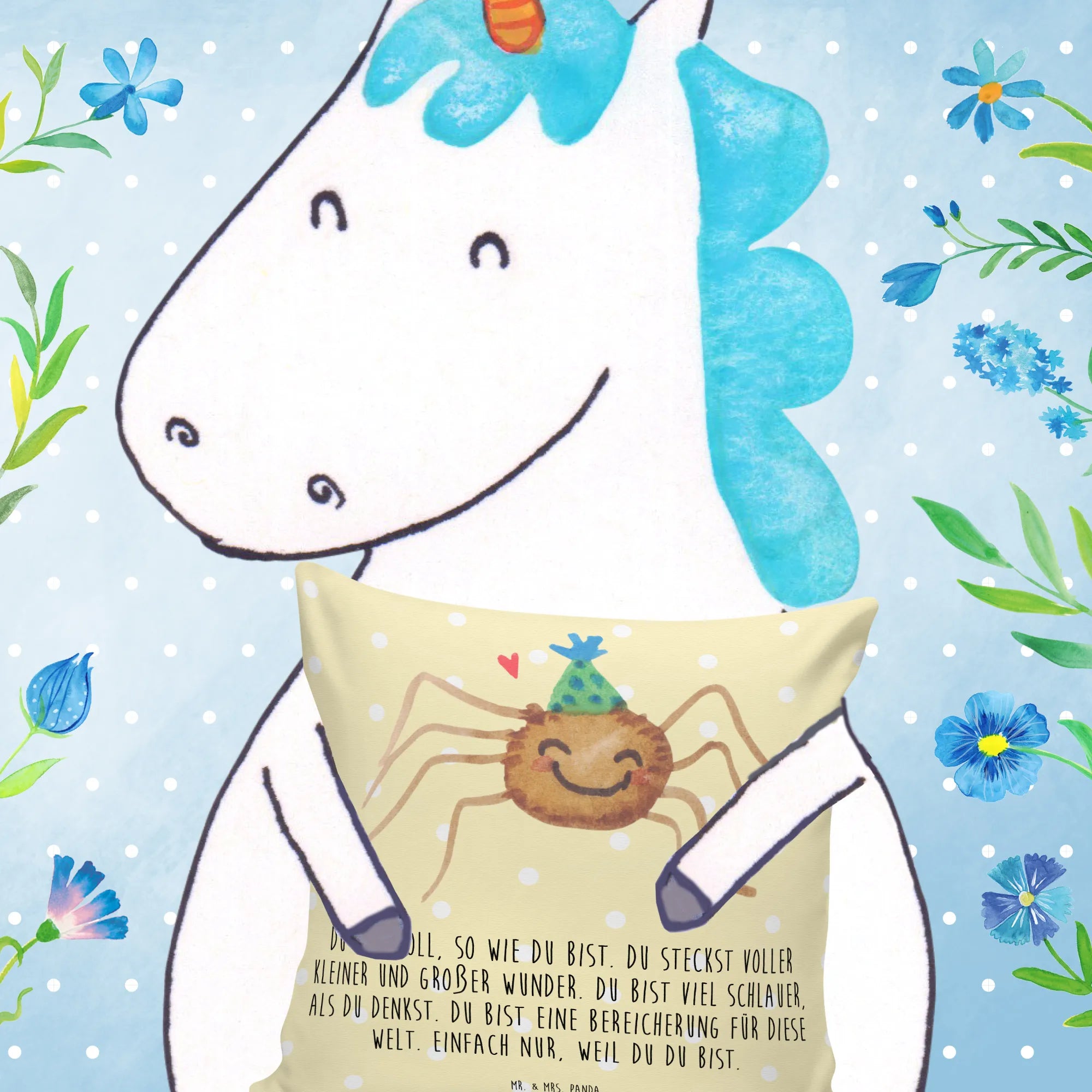 Cushion Spider Agathe Party - with a saying - Pastel Yellow