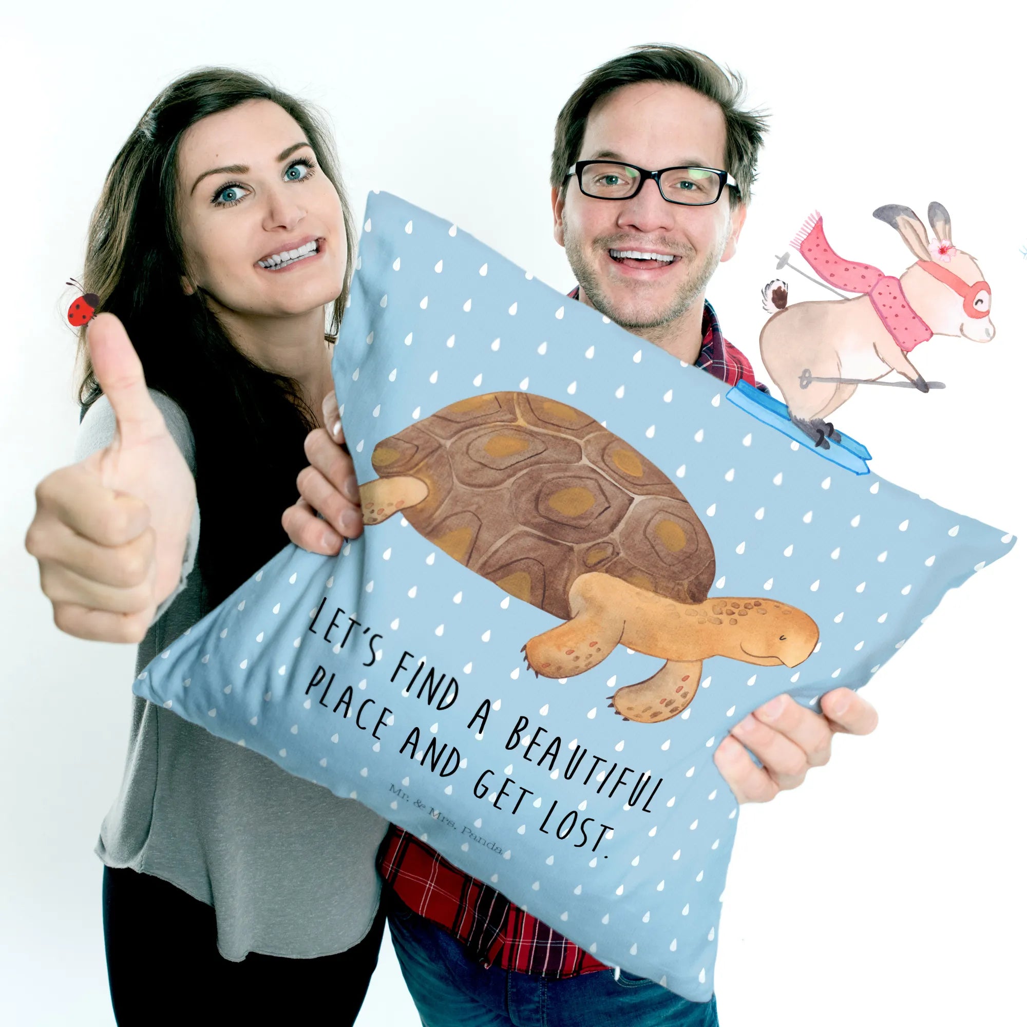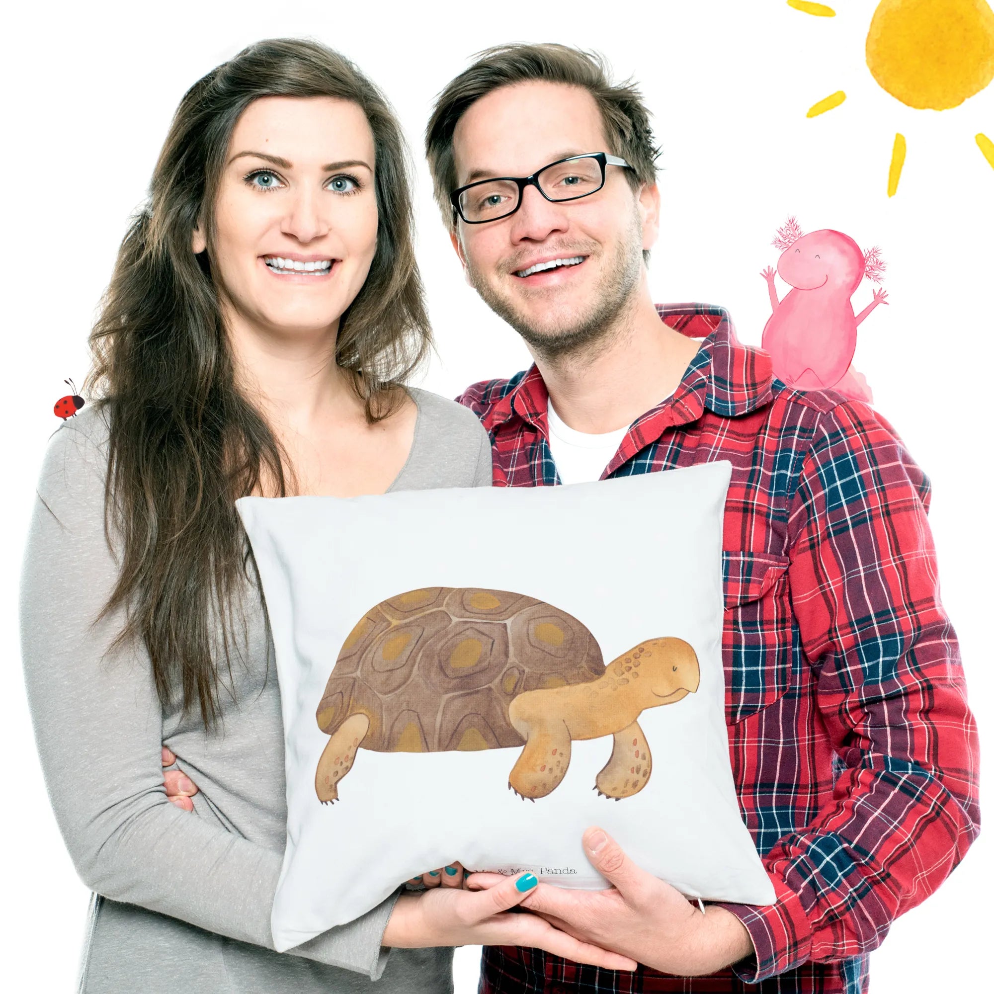 Bring home a piece of the underwater world with the Mr. & Mrs. Panda Turtle Marches cushion—because sometimes, we all need a cuddle from the sea! Dive into your adventures and let our cushion be your soft companion as you rest and dream of your next journey into the underwater world. Its soft, fluffy feel offers unmatched comfort, making it a fantastic addition to your life. Don’t wait any longer – treat yourself or surprise a loved one with this captivating cushion today!