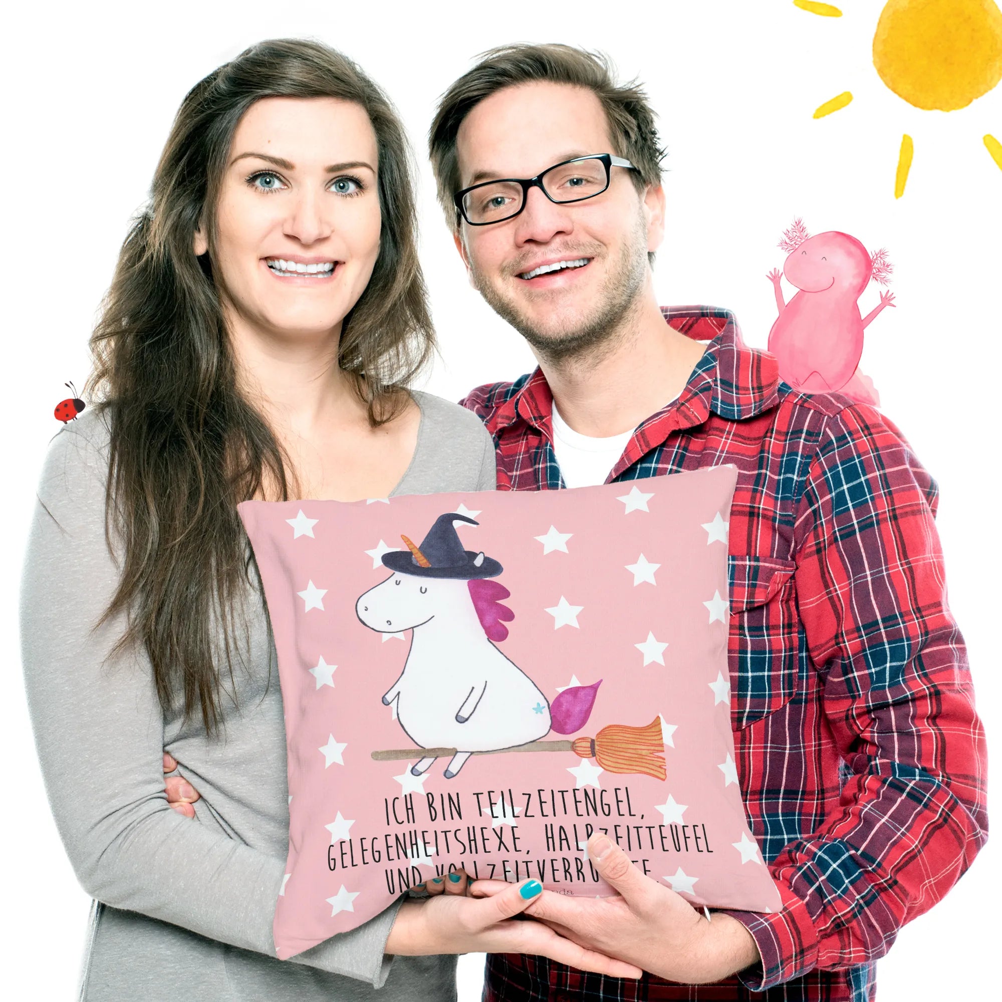 Cushion unicorn Witch - with saying - Pastel Red