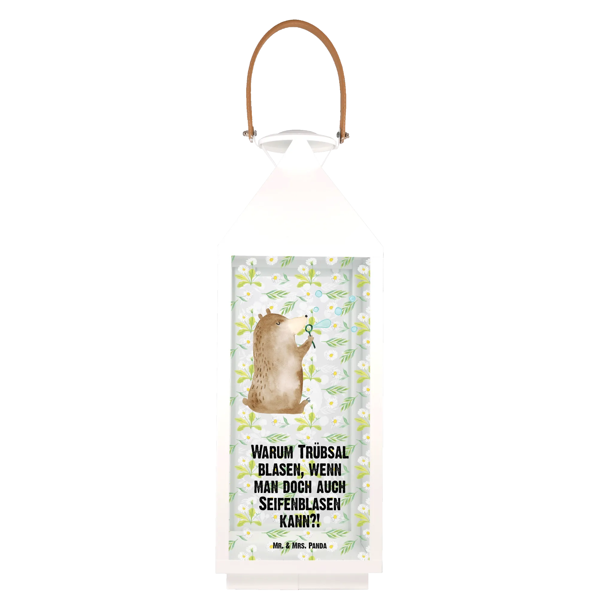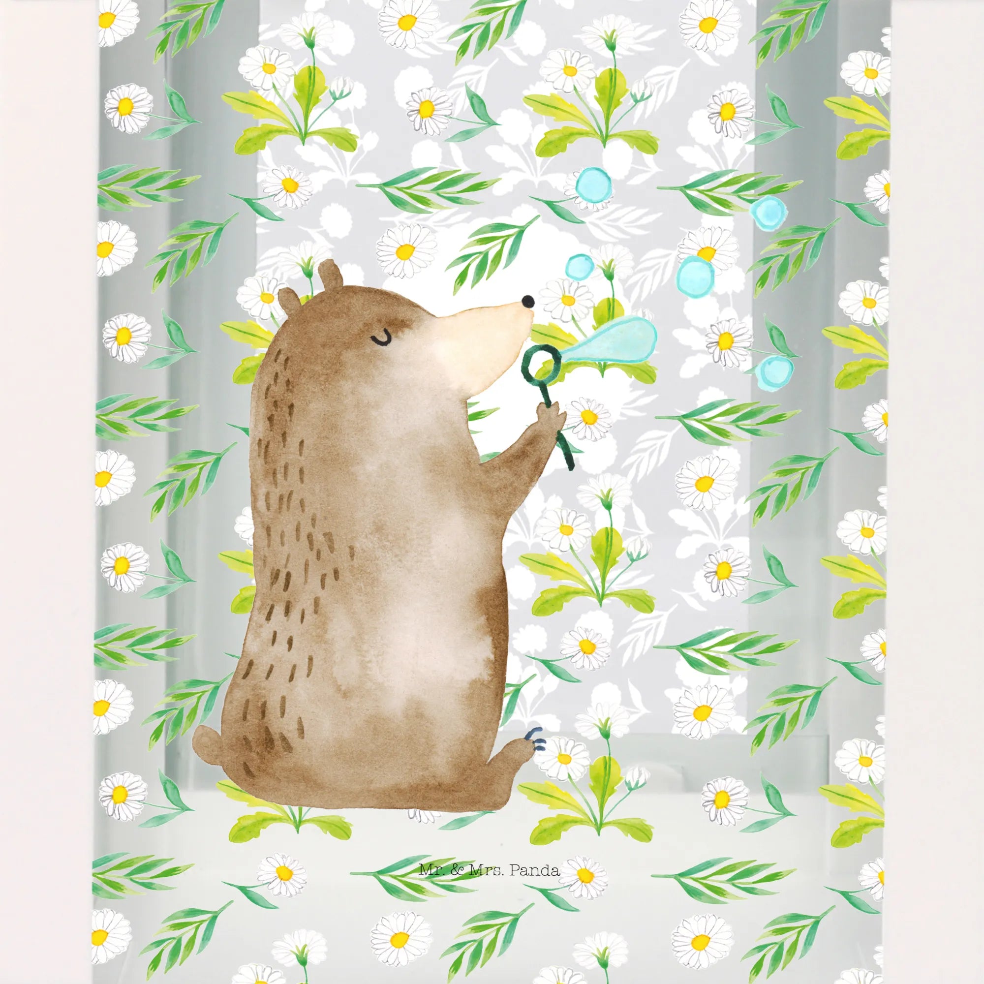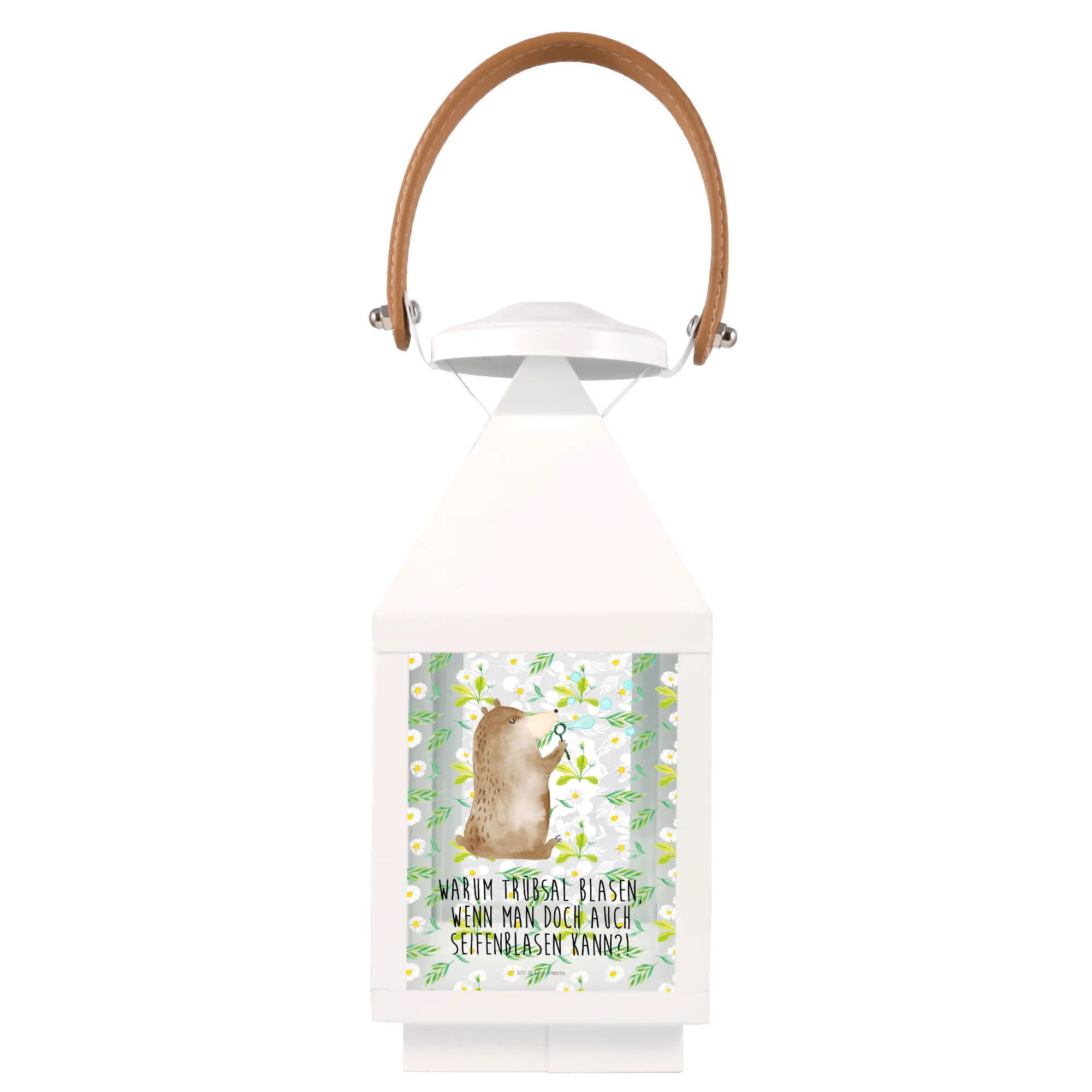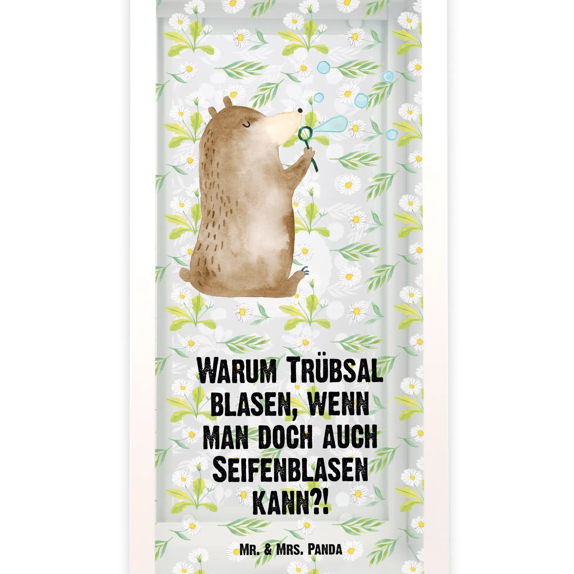 Measuring a convenient size of 240 mm x 100 mm x 100 mm, this lantern is perfectly designed for any corner of your garden or balcony. Whether you place it on a table or hang it, it adds a delightful touch to your space. Made from premium metal and high-quality glass, this charming piece not only serves as a light source but also as a beautiful decorative item. Every pane of this lamp is adorned with the delightful Bear motif – a reminder to embrace joy and creativity in our lives. The thoughtful phrase, "Why mope when you can blow bubbles, too?!" beautifully encapsulates the spirit of carefree amusement.