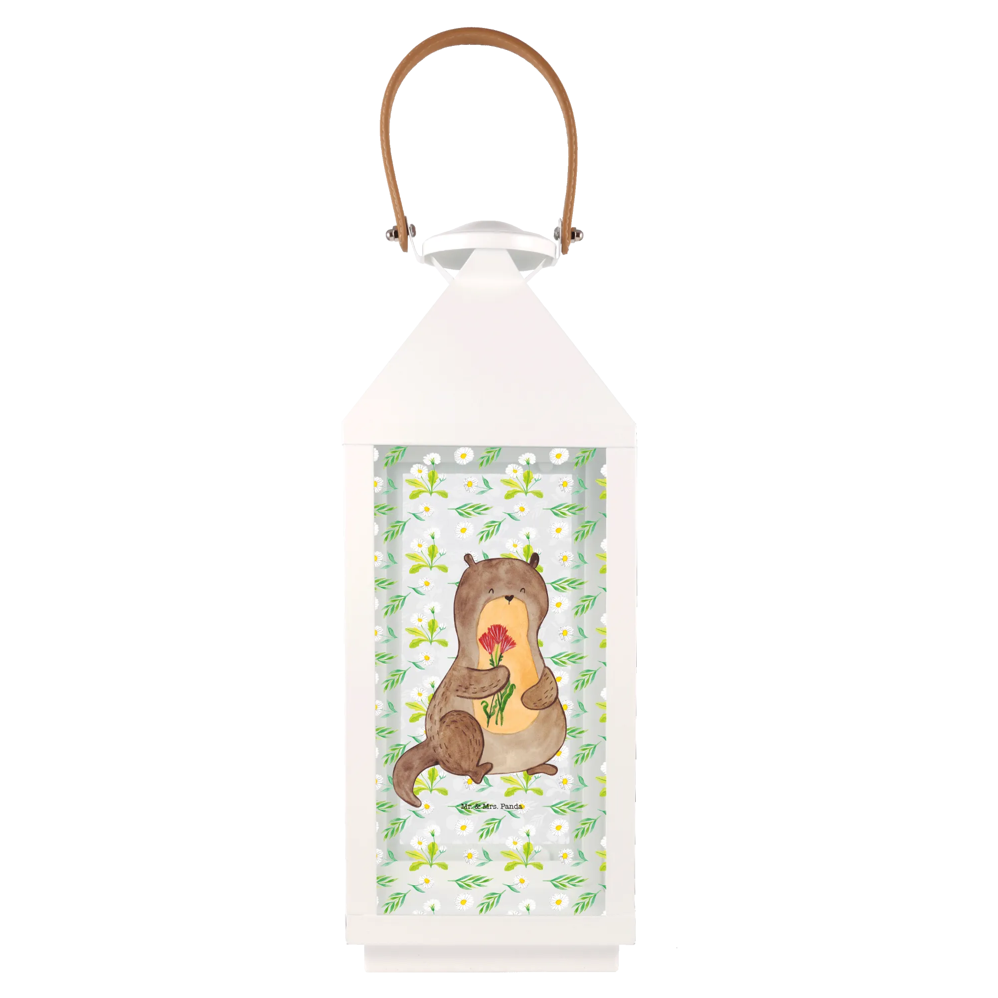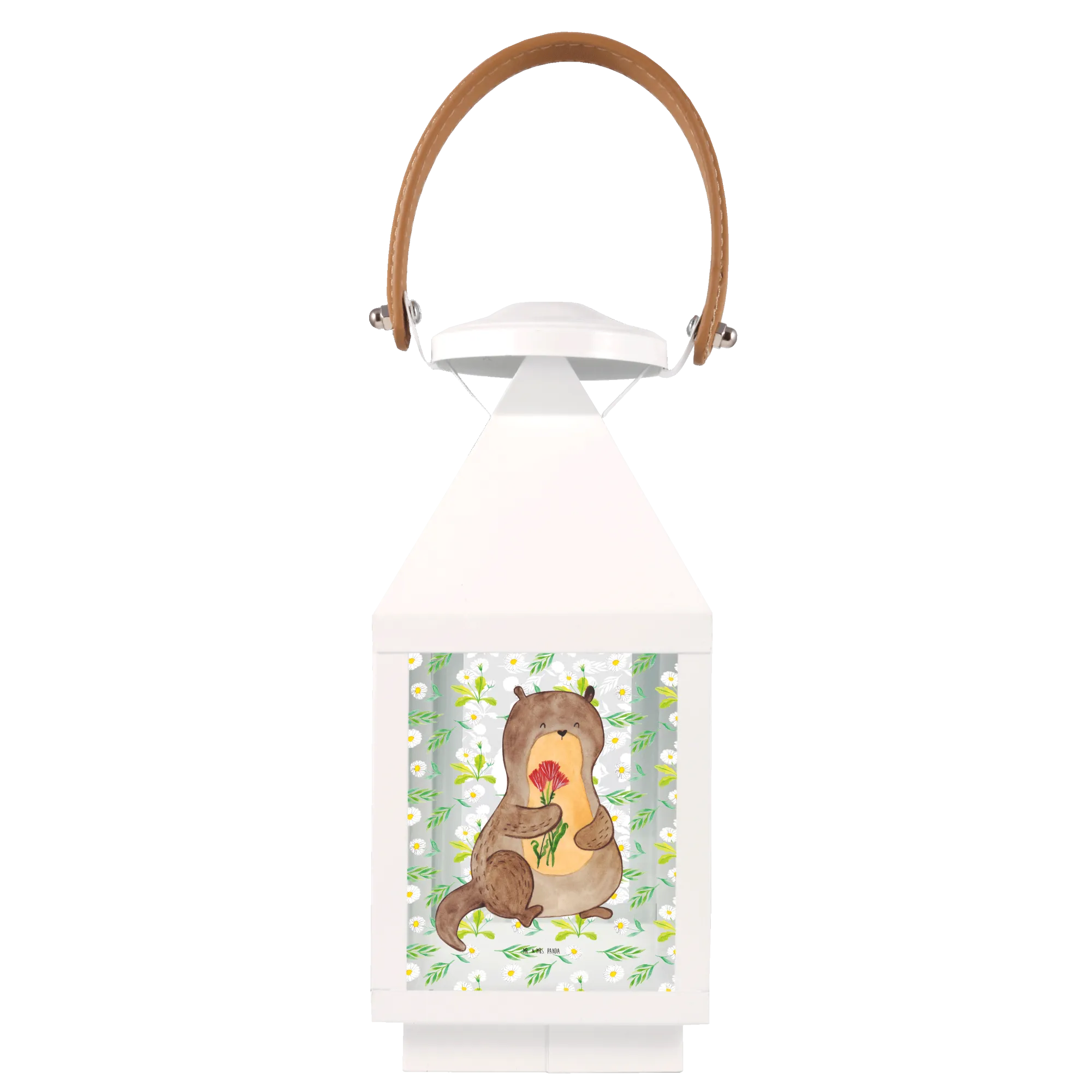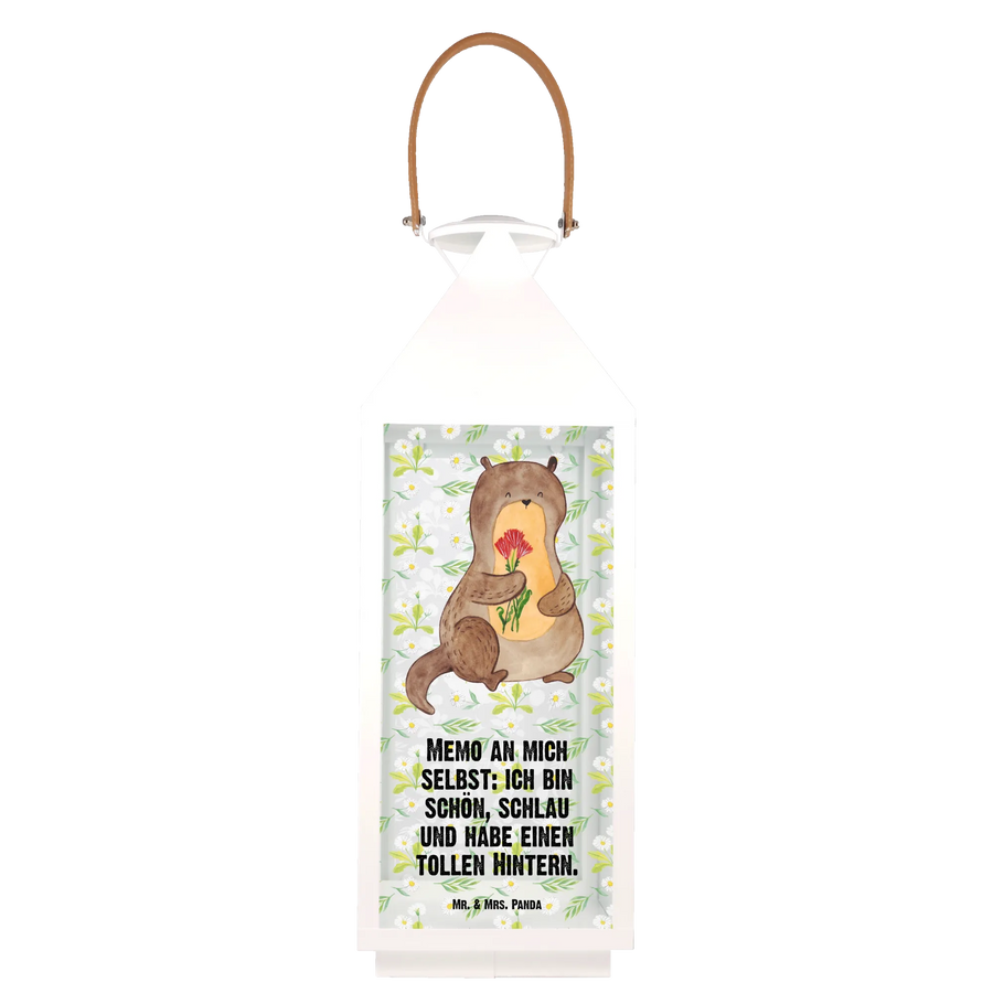 Introducing the delightful Decorative Lantern featuring an enchanting otter with flowers, part of the exclusive Otter - Collection from Mr. & Mrs. Panda! This charming garden lantern is perfect for bringing a unique touch of whimsy to your outdoor or indoor spaces. Hand-drawn with love, our otter design is not just a gift but a heartfelt statement for any animal lover in your life.