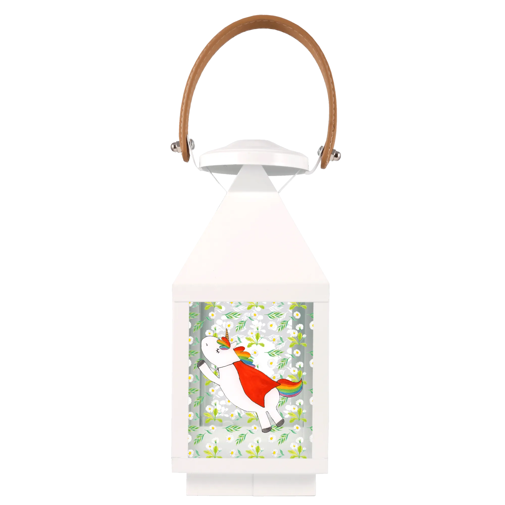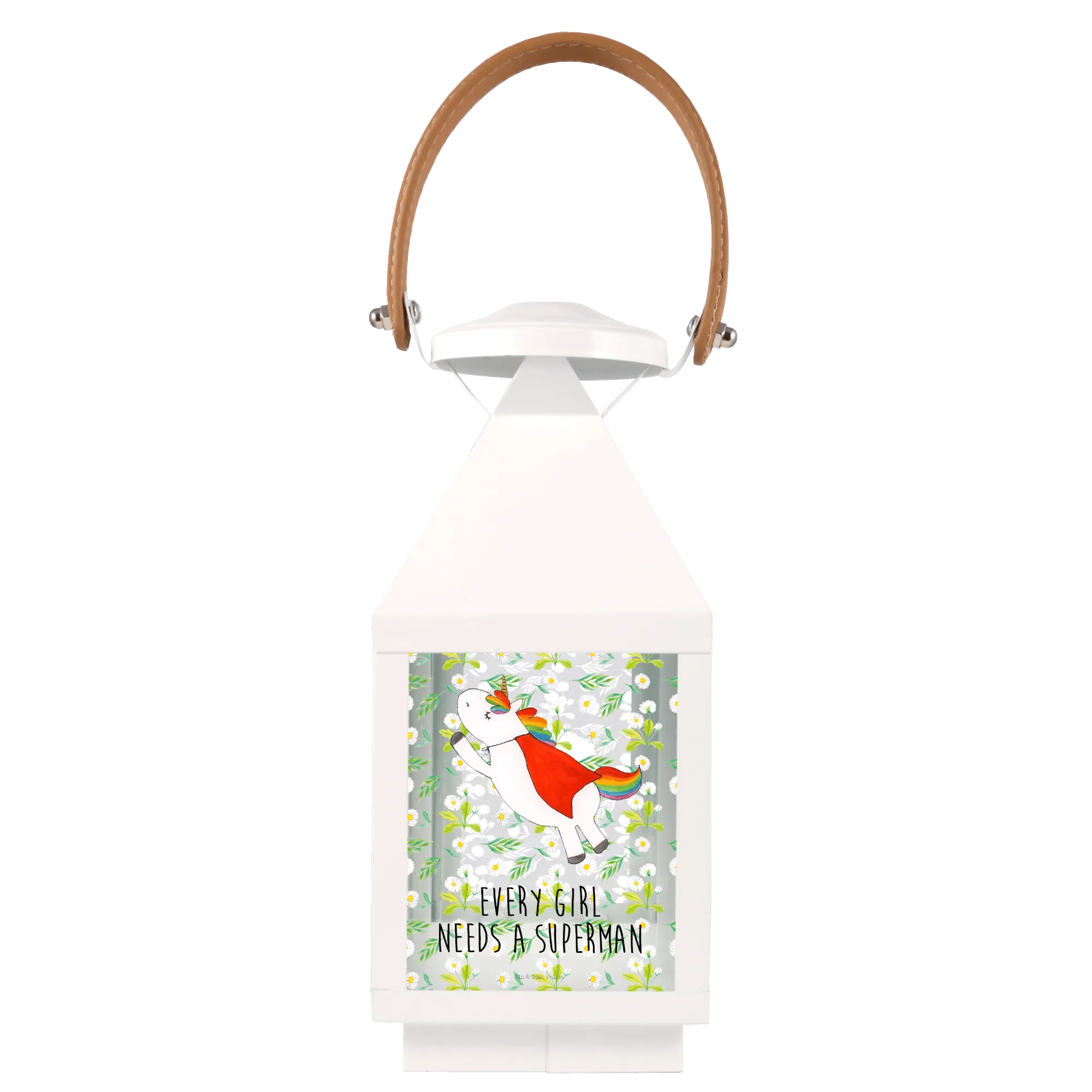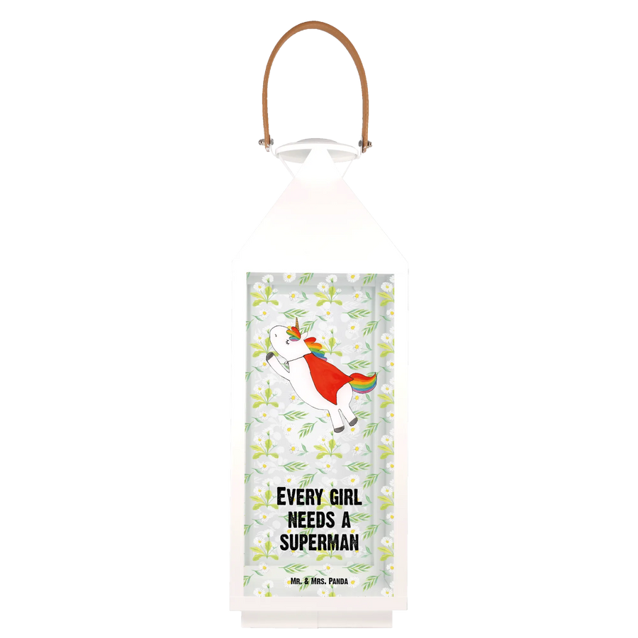 Introducing the beautiful Decorative Lantern Unicorn Superhero from the exclusive Unicorn Collection by Mr. & Mrs. Panda! This charming lantern is not just a delightful decoration for your garden, but also an enchanting piece that brings a whimsical touch to any setting. Crafted from premium metal and high-quality glass, it ensures durability while radiating charm.
