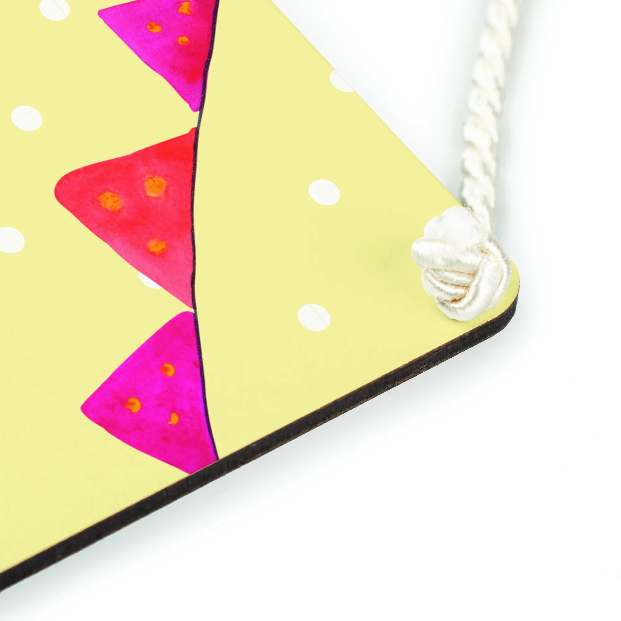 Imagine the smiles and laughter it will bring at birthday celebrations, school graduations, or even for an anniversary party. Painted in a vibrant pastel yellow, this sign is both eye-catching and versatile. Measuring a perfect DIN A4 size, it is ideal for adorning walls or doors, and can be easily hung using its wonderfully twisted cord.