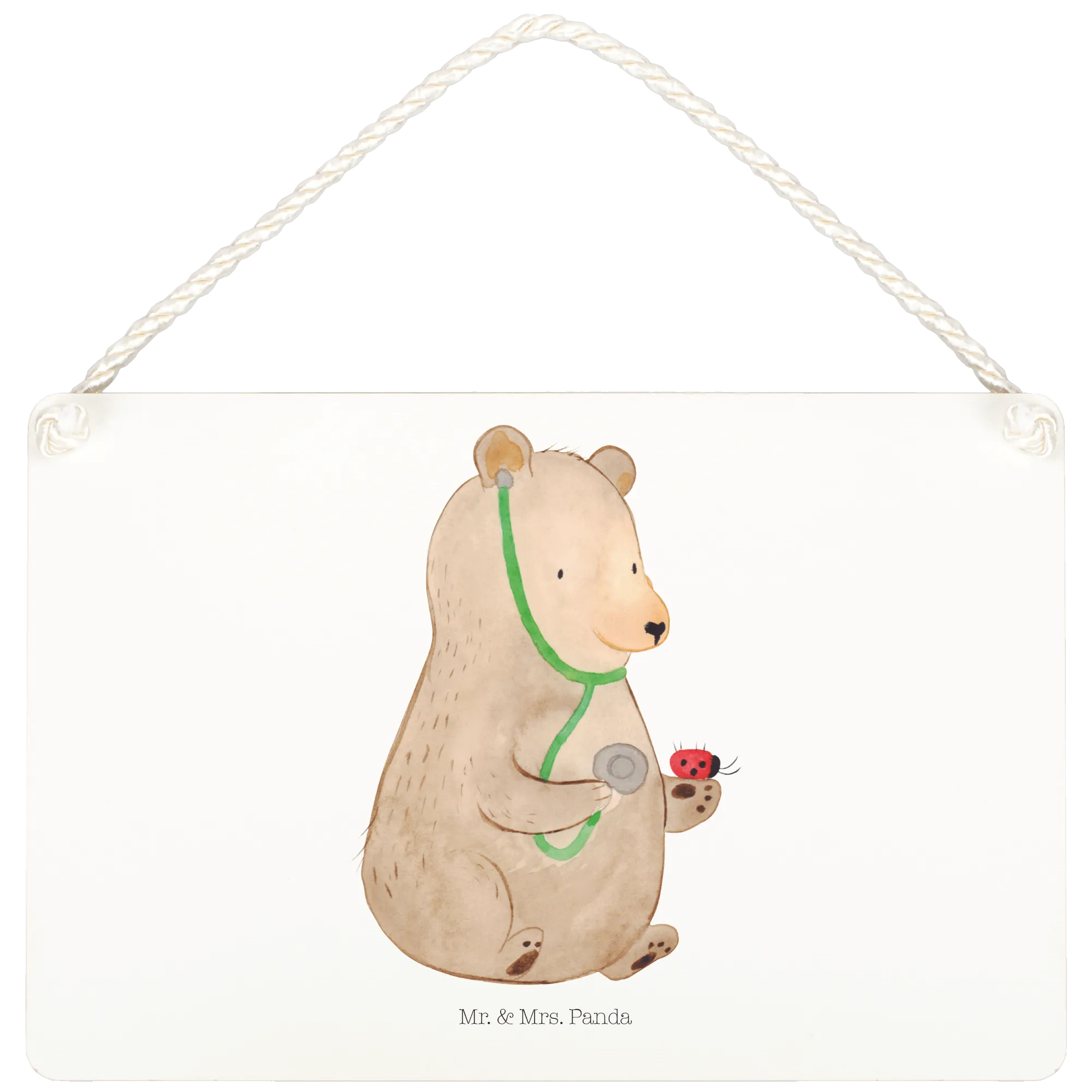 Introducing the delightful Decorative Sign featuring our adorable Bear Doctor from the charming Bear collection by Mr. & Mrs. Panda! This beautifully designed wooden sign showcases a heartwarming illustration of a teddy bear dressed as a doctor, taking care of a little ladybug. It's a perfect statement piece for any room, adding a touch of whimsy and cheer, while serving as a gentle reminder to take things easy!