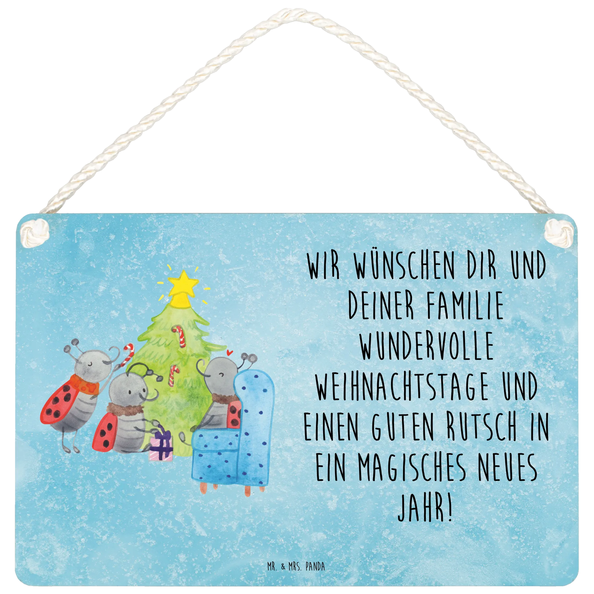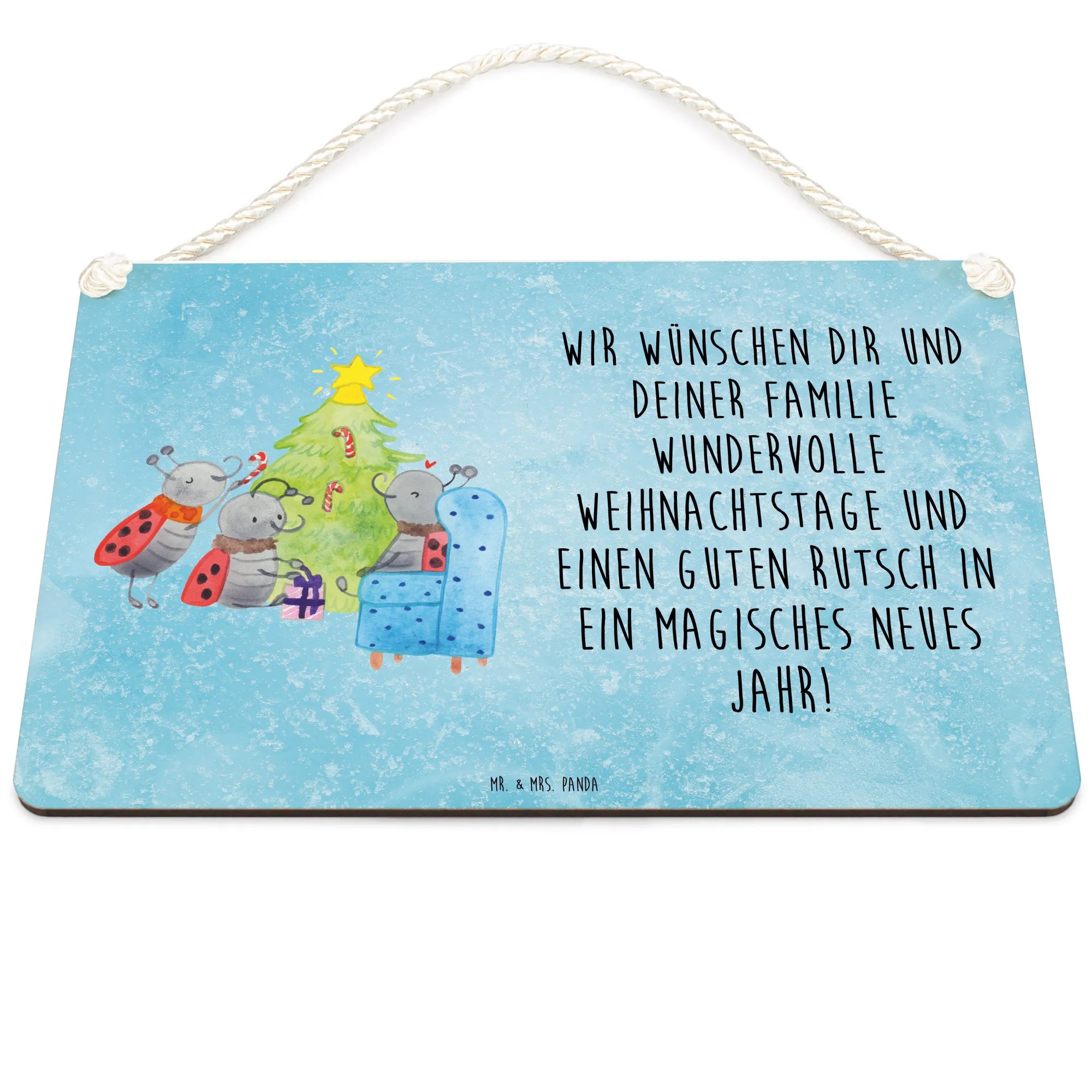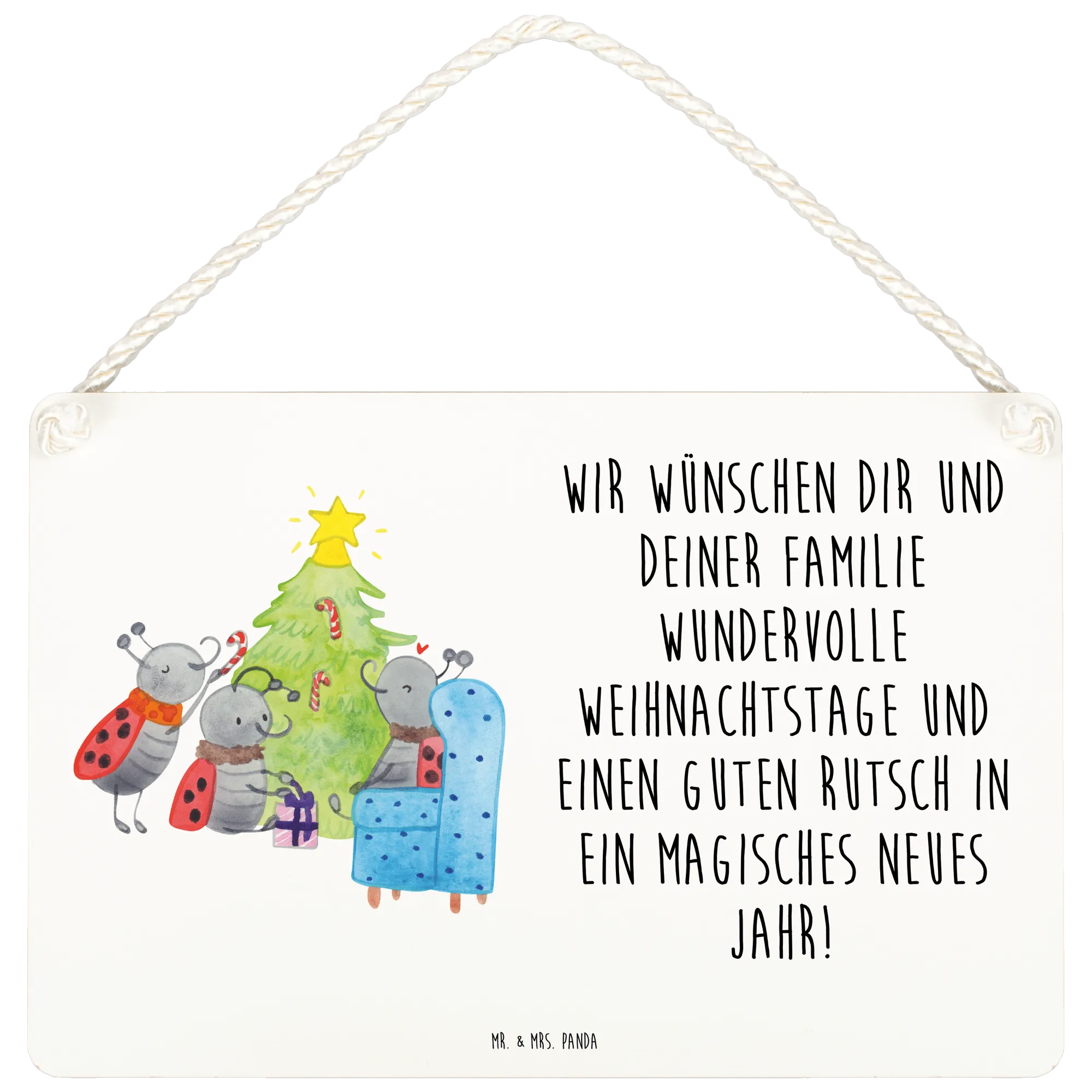 Mit den drei fröhlichen Marienkäfern, die um einen festlich geschmückten Weihnachtsbaum tummeln, bringt das Schild sofort eine weihnachtliche Stimmung in dein Zuhause. Die Marienkäfer sind dabei, Geschenke auszupacken, den Baum zu dekorieren und sich zusammen in einem gemütlichen Ohrensessel zu entspannen. Es ist, als könnte man den Duft von frisch gebackenem Plätzchen und Tannennadeln förmlich riechen!