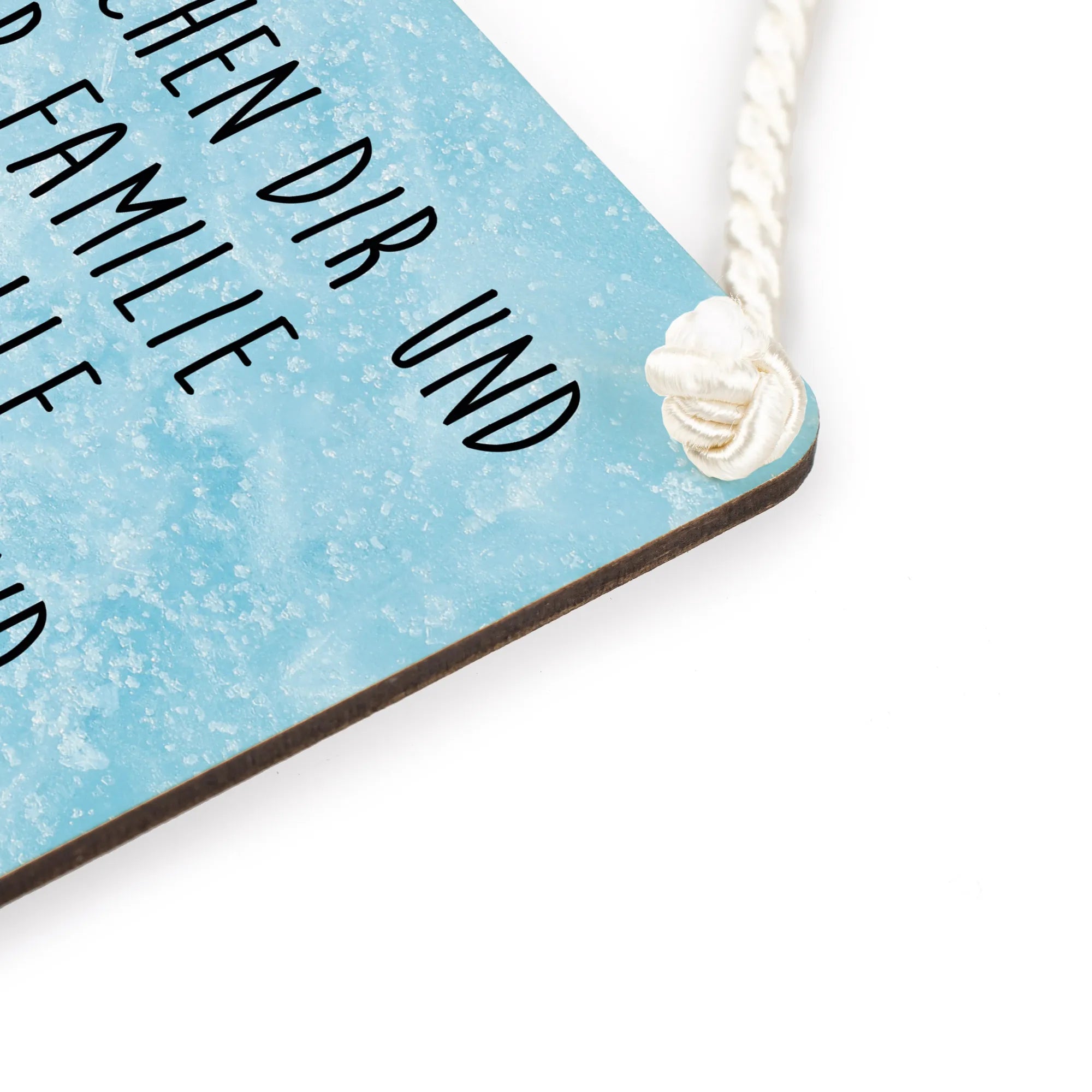 Das hochwertige Schild besteht aus widerstandsfähigem MDF-Material und hat eine beschichtete Oberfläche, die es langlebig und robust macht. Eine wunderschön gedrehte Kordel zur Aufhängung rundet das Gesamtbild ab und sorgt dafür, dass du das Schild ganz einfach anbringen kannst. Ob über die Tür, an der Wand oder als Teil deiner Weihnachtsdeko auf dem Tisch – das Deko Schild findet überall seinen Platz.