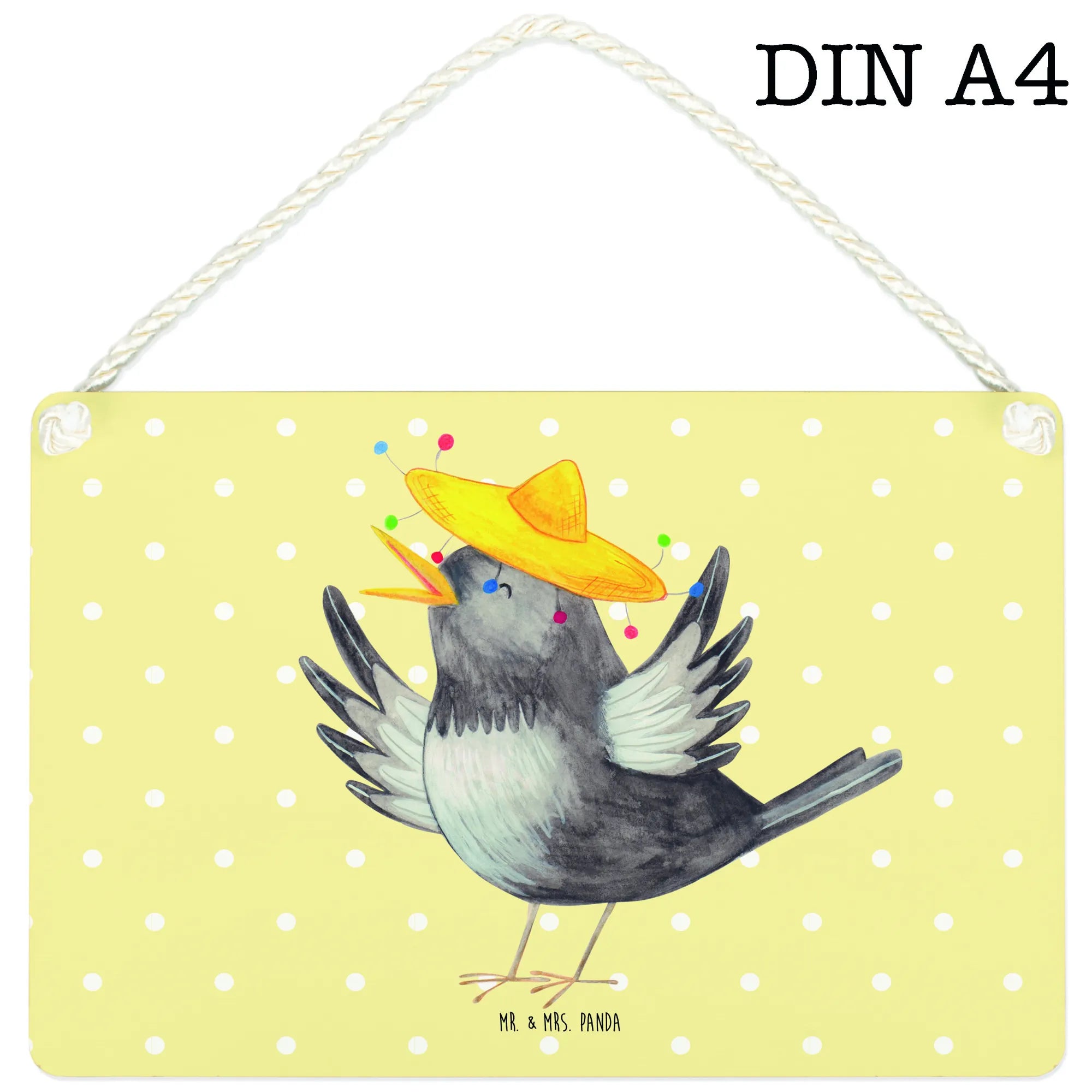 Made from high-quality MDF, this sign comes in the standard DIN A4 size, making it ideal for various placements, whether on a door, a wall, or as a unique centerpiece in your home. The pristine white background emphasizes the charming motif of our sweet little raven adorned with a bright sombrero. Its cute and funny design captures the essence of fun that the Small World collection is all about, providing a warm and inviting atmosphere for anyone who enters your home.