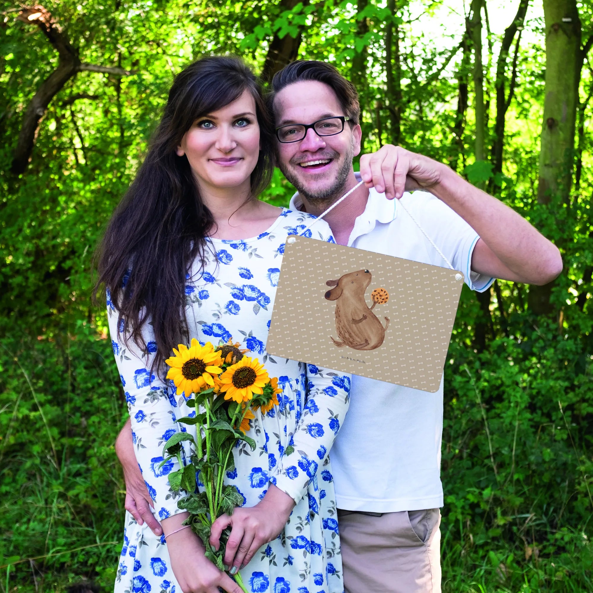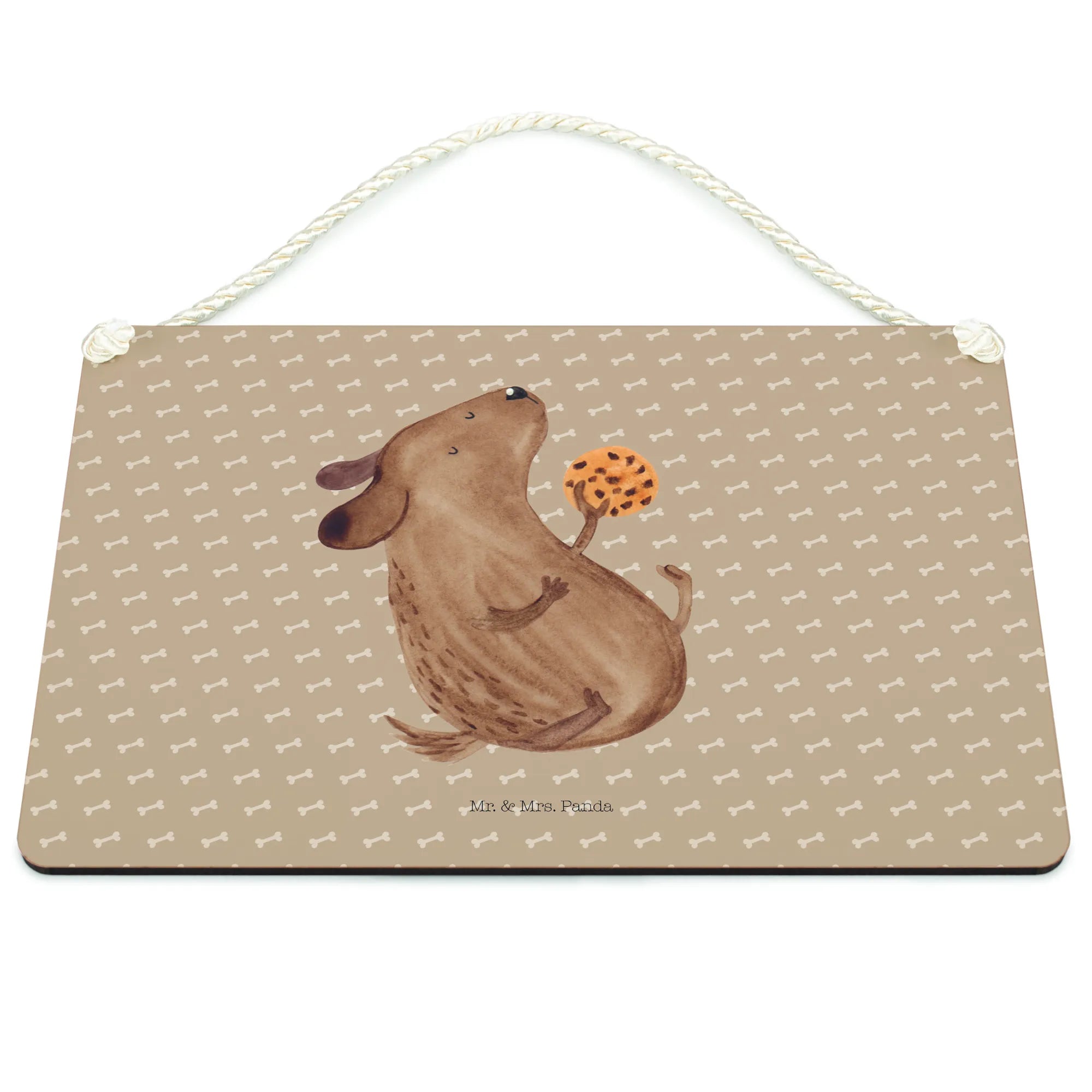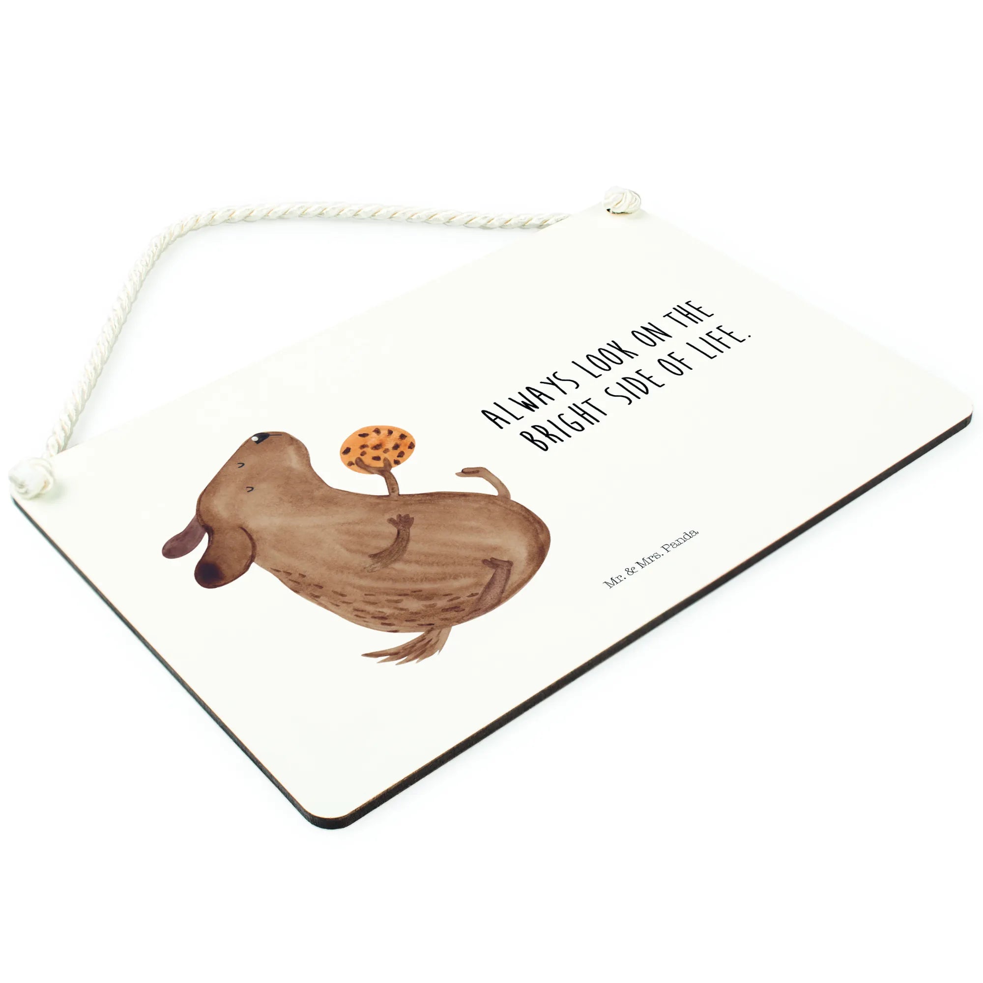 Handcrafted from durable MDF with a high-quality finish, this sign is both stylish and long-lasting. Adorned with a delightful illustration of a happy dog joyfully devouring a biscuit, it captures the joy and affection that only a dog can bring into our lives. The gentle humor and sweetness of this motif make it a fantastic conversation starter for any room.