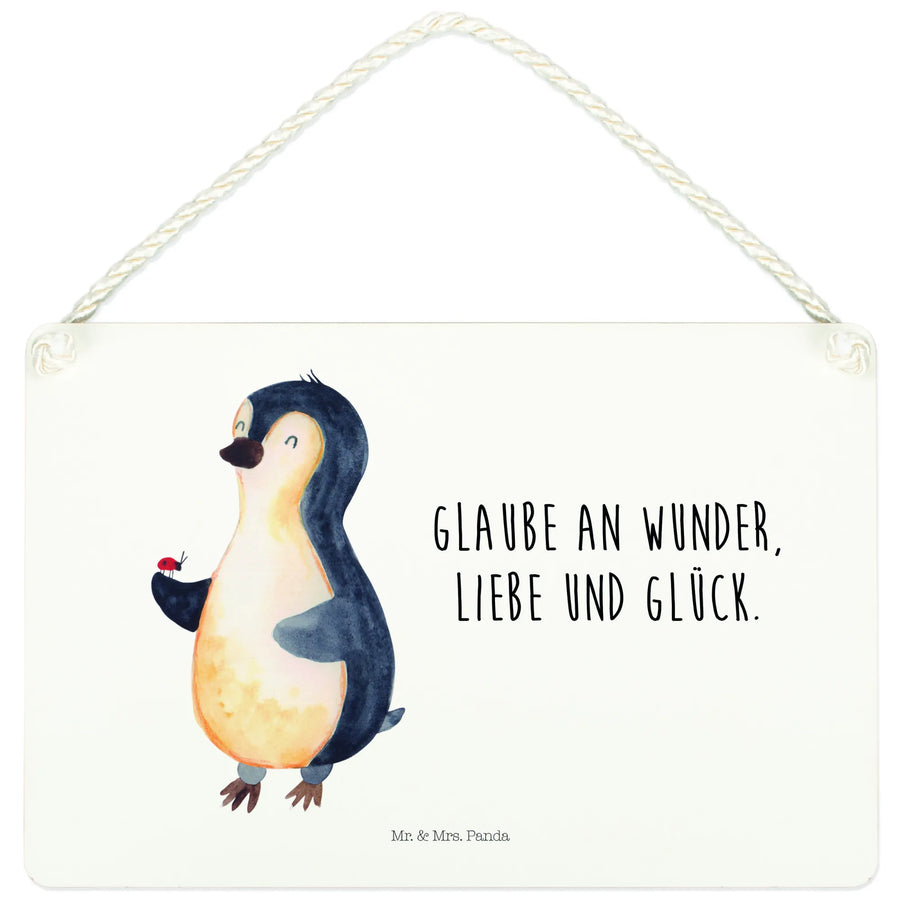 This appealing sign comes with a beautifully twisted cord, making it easy to hang right away. The subtle white background of the sign provides a perfect contrast against the vibrant colors of the penguin and ladybird, ensuring it stands out while maintaining an elegant look.