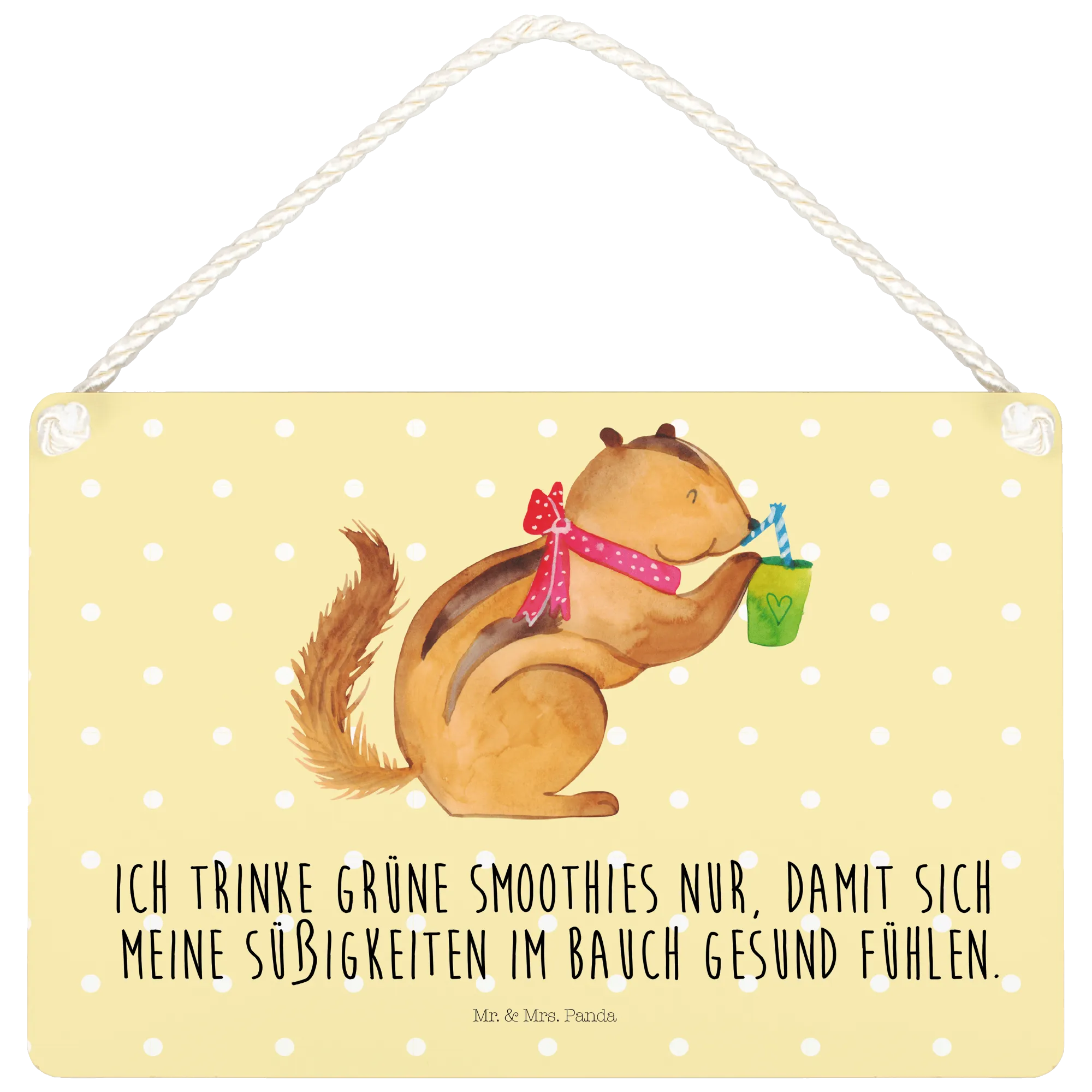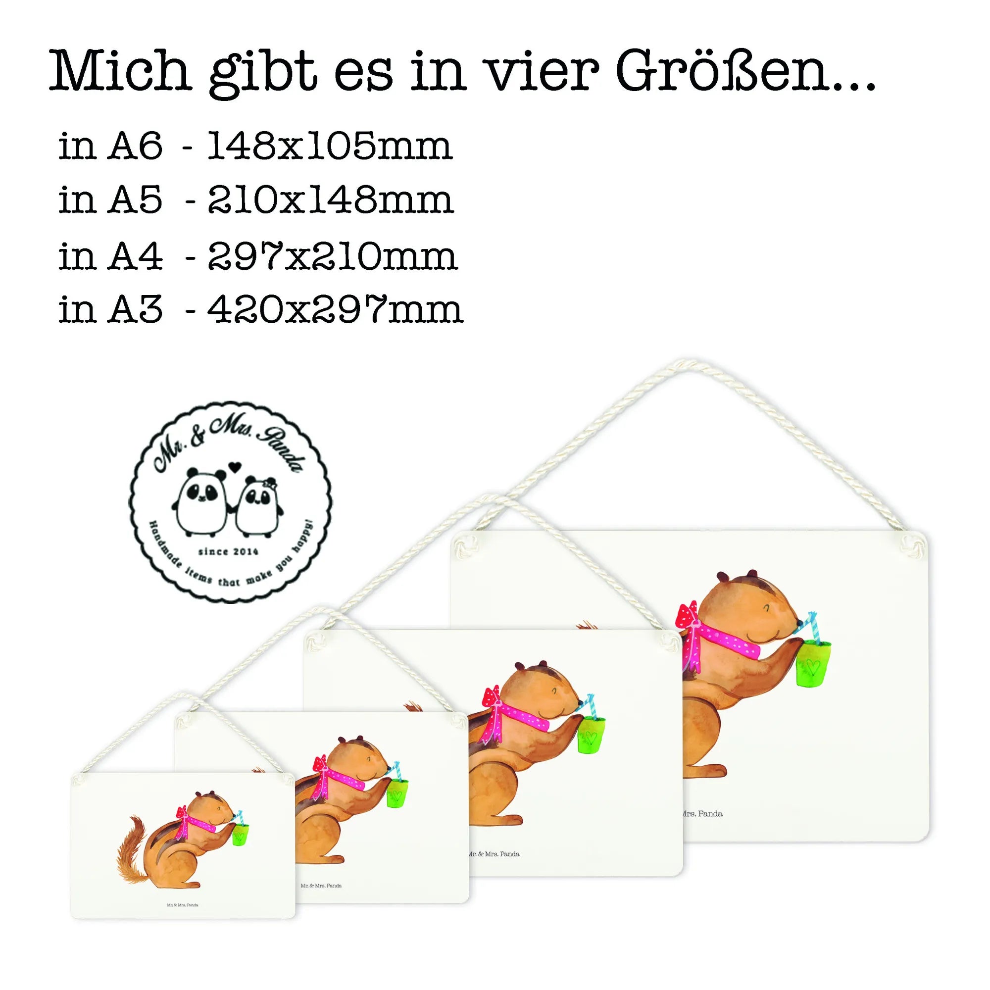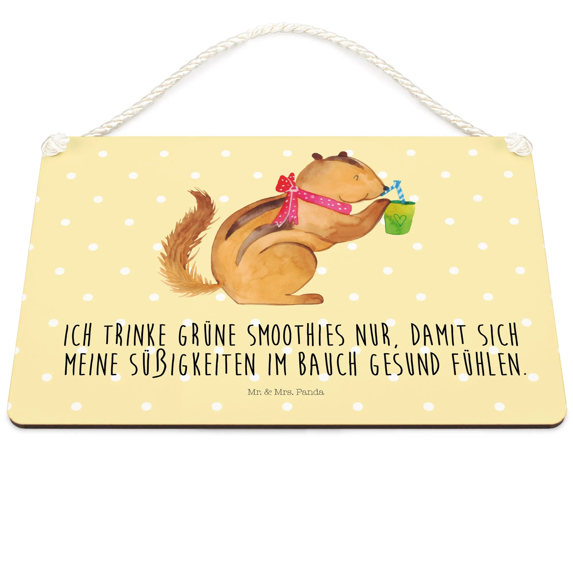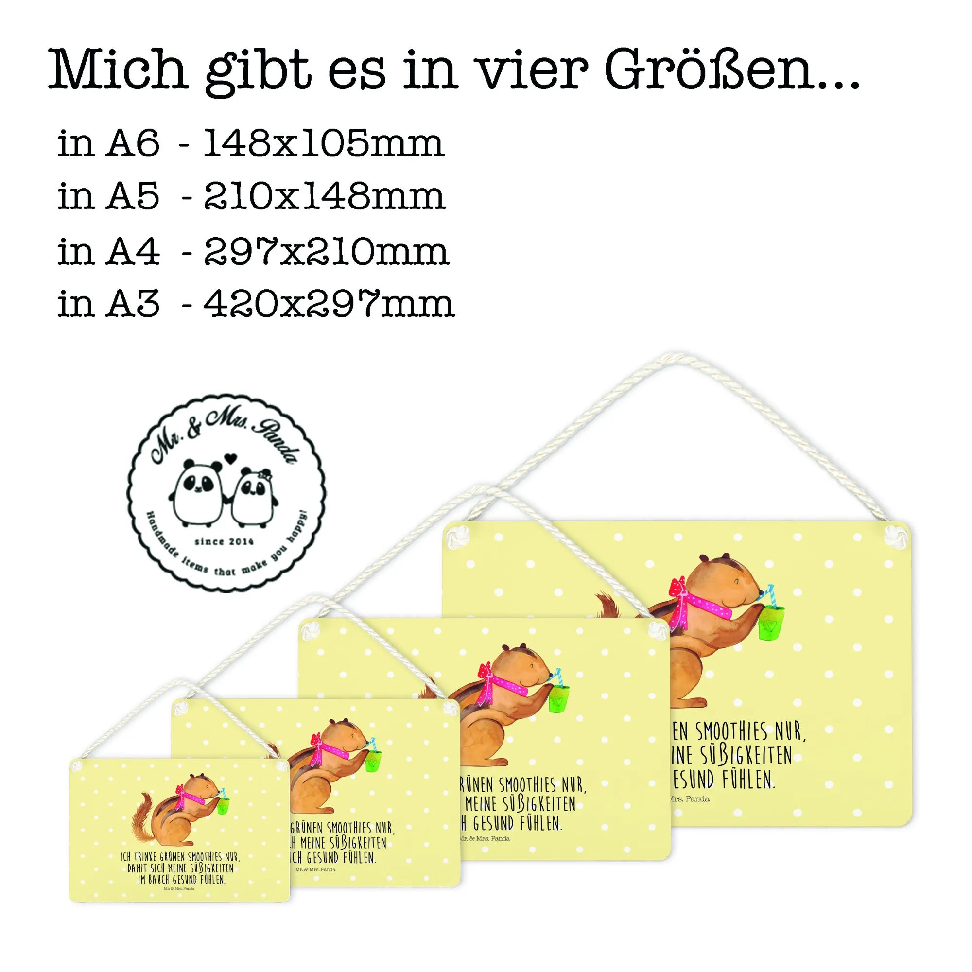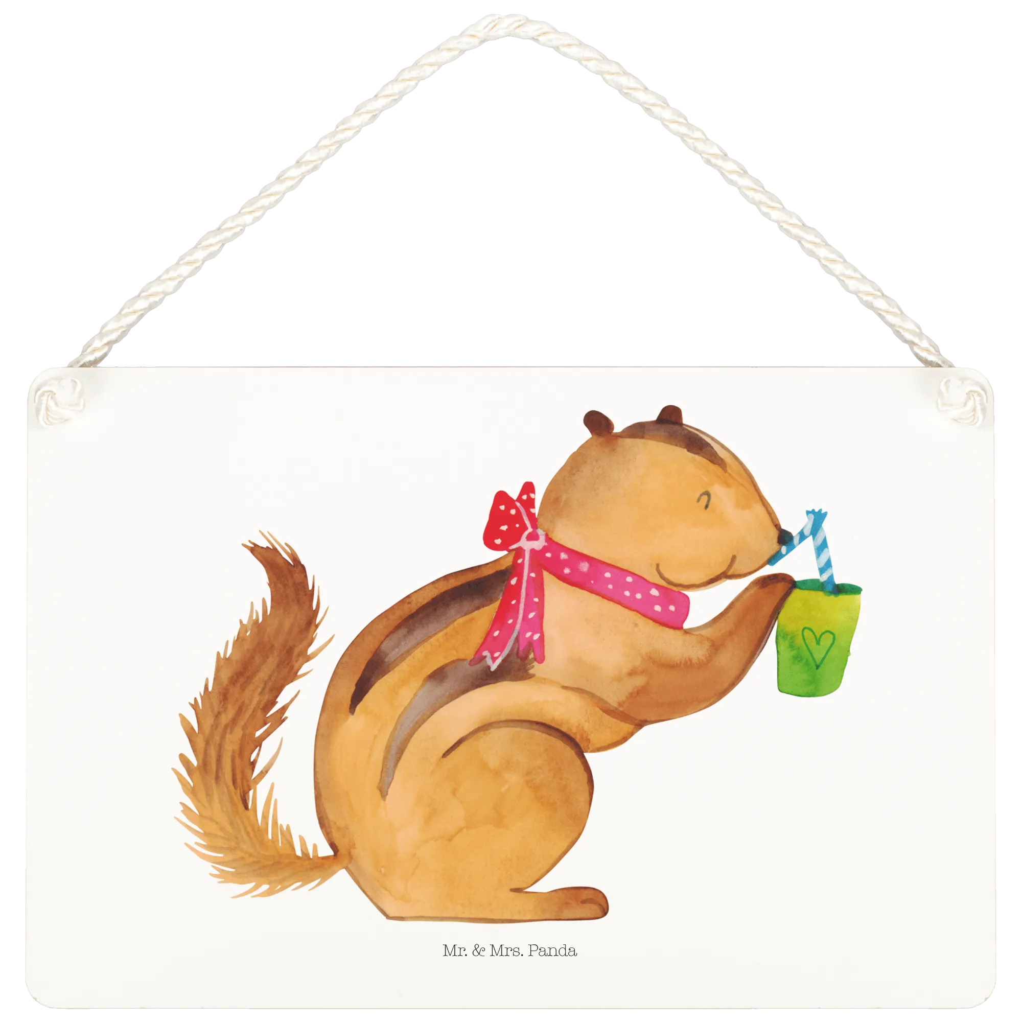 Introducing the delightful Decorative Sign featuring an adorable squirrel sipping on a green smoothie from the beloved Small World collection by Mr. & Mrs. Panda. This charming piece of wall art is perfect for all animal lovers and those who appreciate a good dose of humor in their decor.