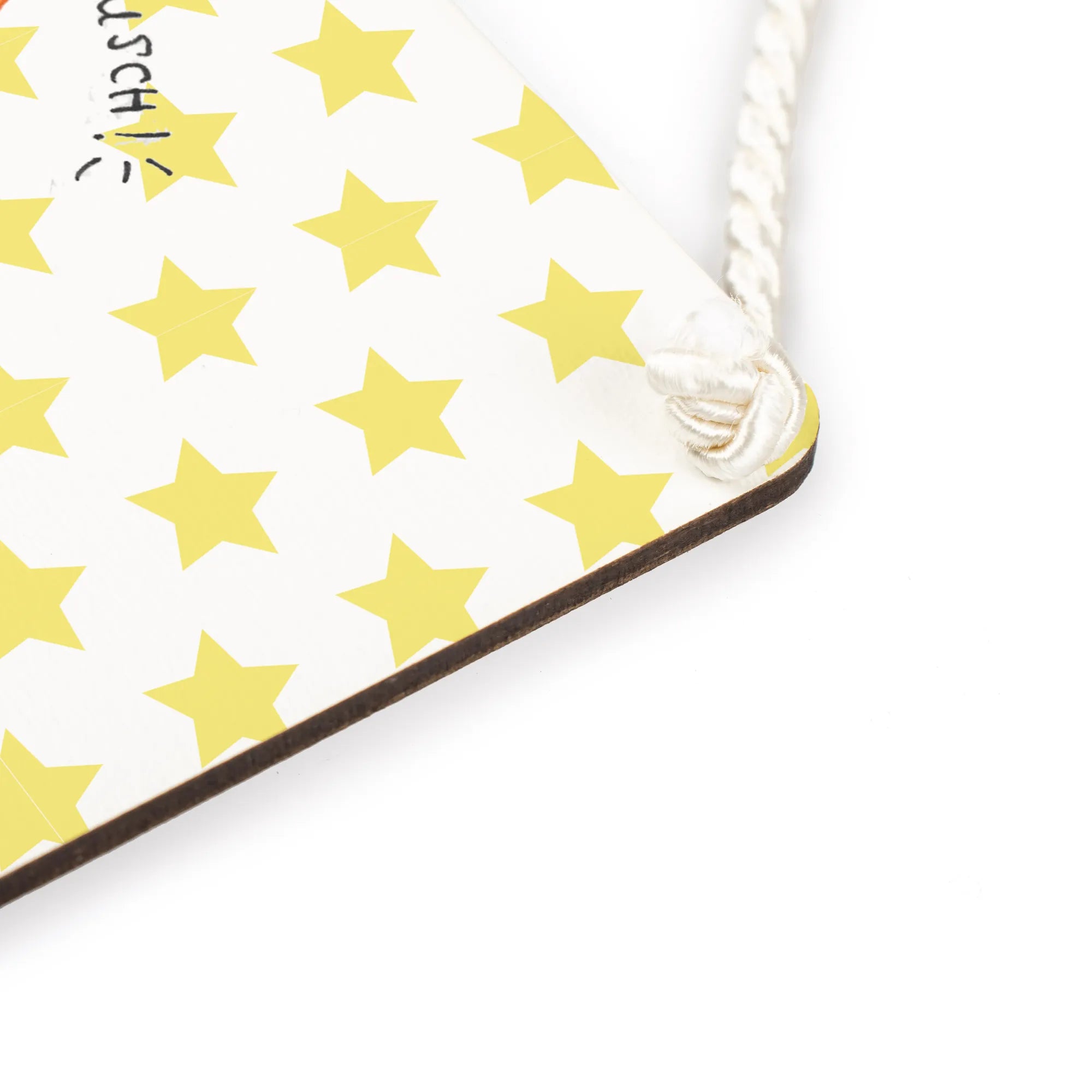 Crafted from high-quality MDF, our decorative sign is not only beautiful but also designed for durability. It’s coated for longevity, ensuring that the vibrant colors and adorable design won’t fade over time. Measuring at a charming DIN A5 size, it can be perfectly placed on a wall or door, adding that extra touch of personality. Thanks to its lovely twisted cord for hanging, it’s super easy to display, making it ideal for spaces like children’s rooms, playrooms, or even cozy corners in your home.