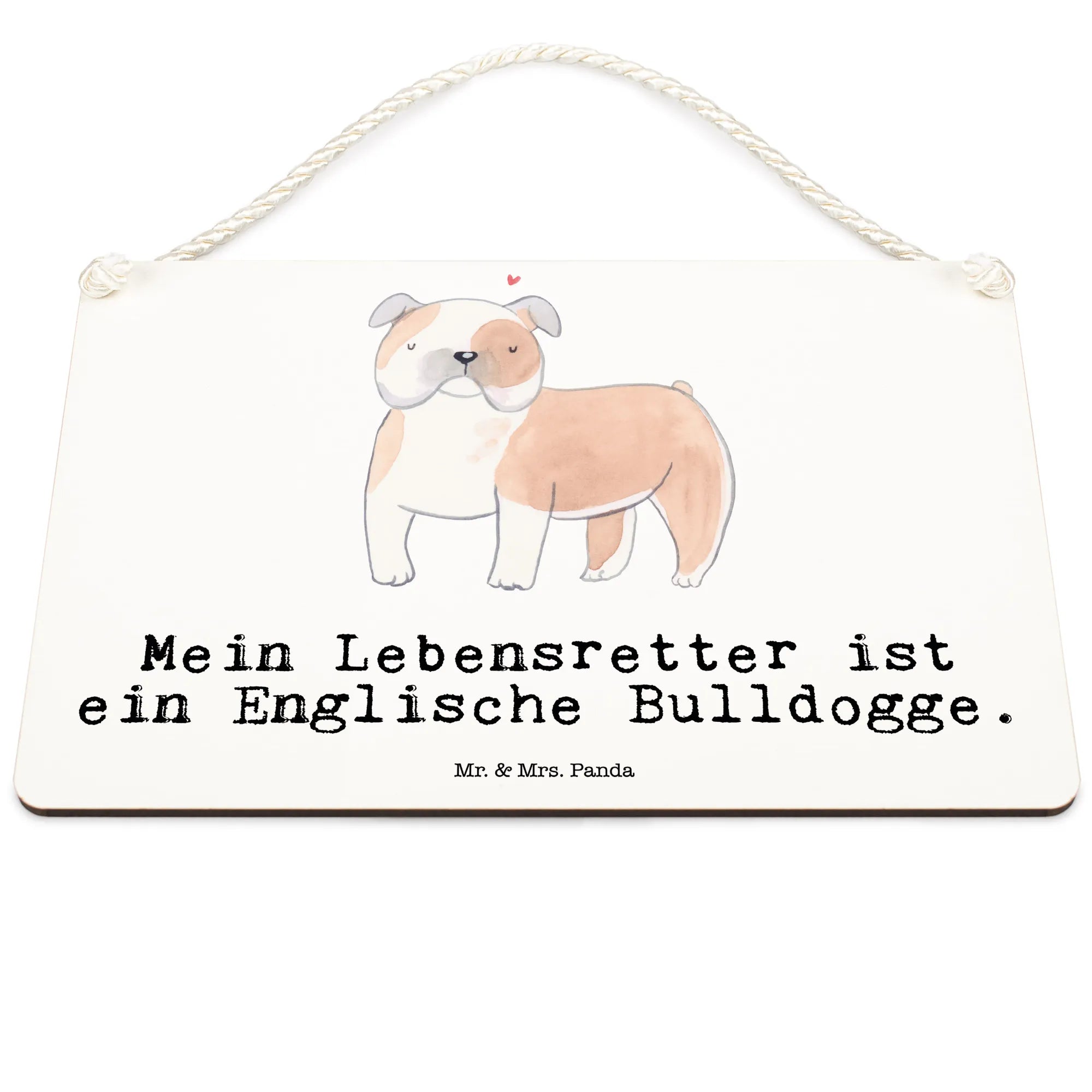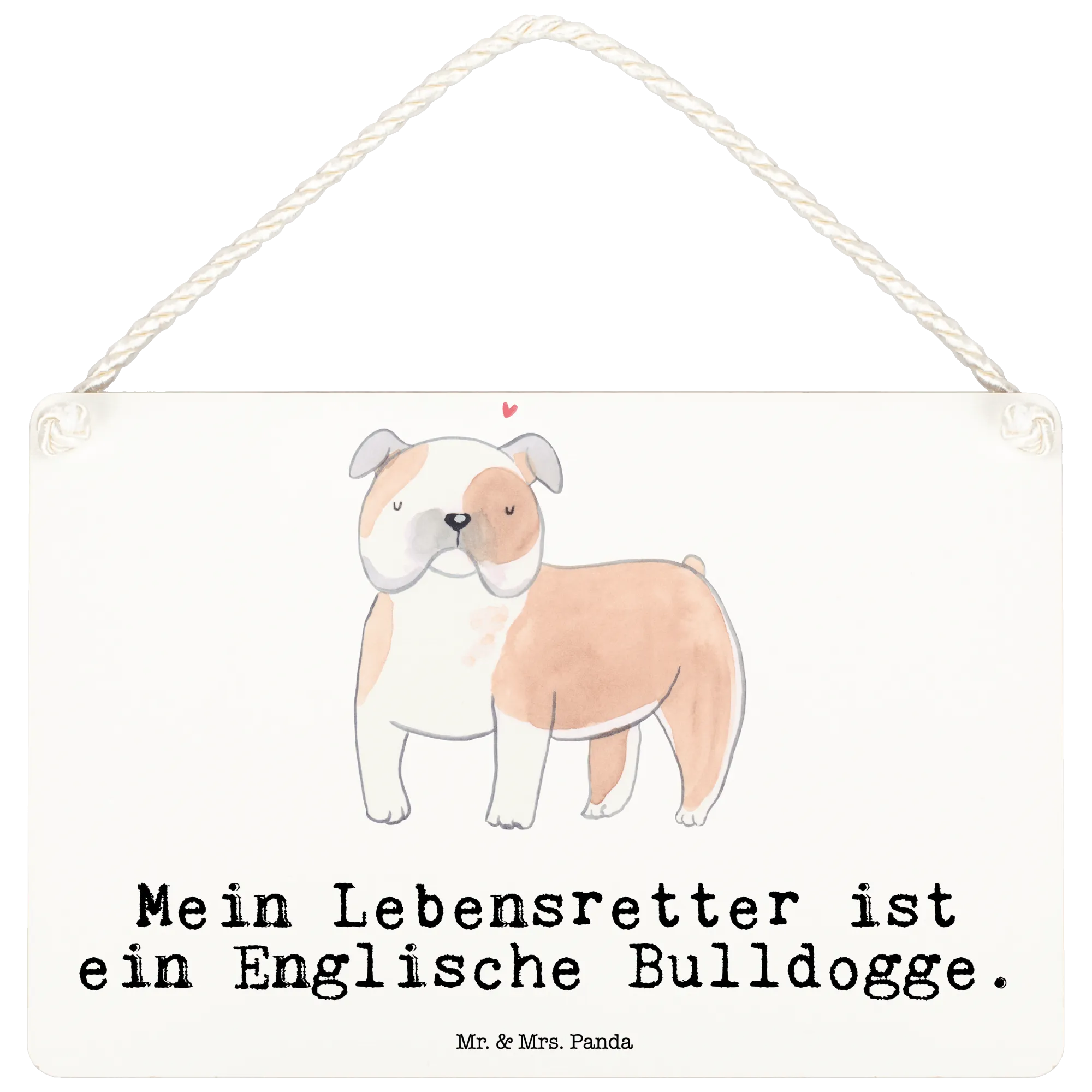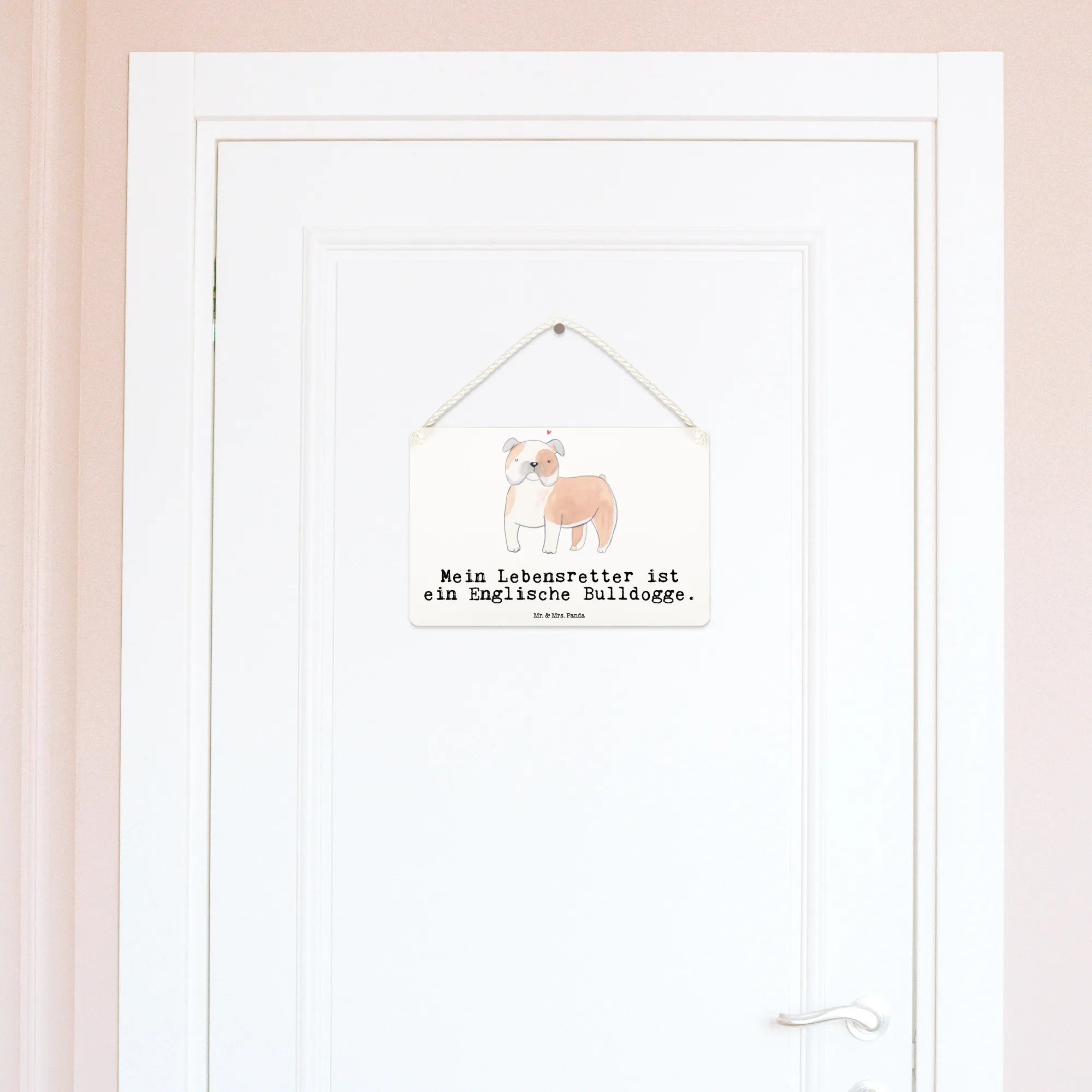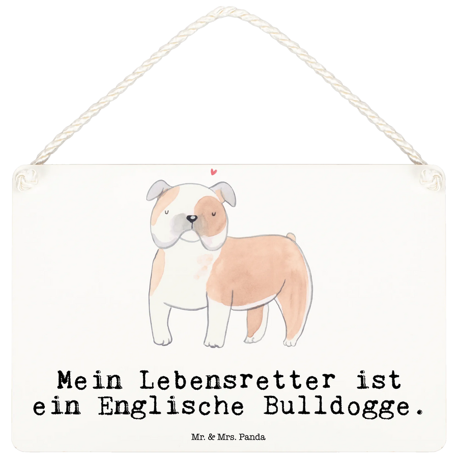Das Deko Schild "Mein Lebensretter ist eine englische Bulldogge" von Mr. & Mrs. Panda ist das perfekte Geschenk für alle Hundeliebhaber und Hundehalter! Egal, ob zum Einzug, zur Hochzeit oder als spaßige Überraschung zum Geburtstag - dieses Schild wird überall ein Lächeln zaubern. Mit einem entzückenden Motiv einer englischen Bulldogge und einem Herzen, vermittelt es sofort eine herzliche Botschaft: Hunde sind unsere besten Freunde und Lebensretter!
