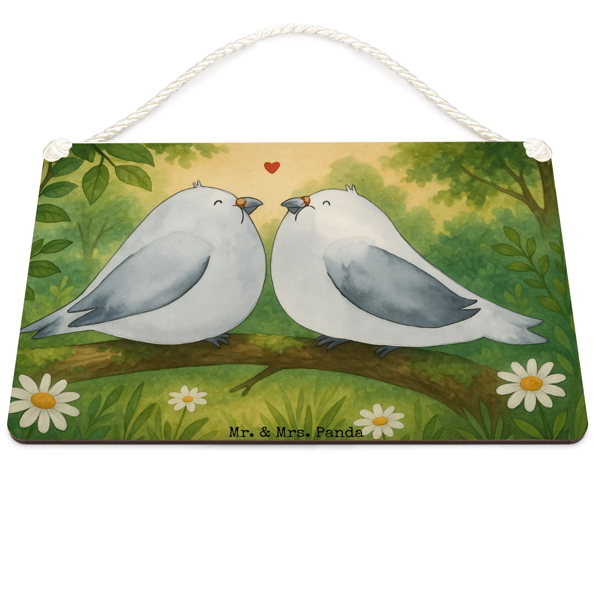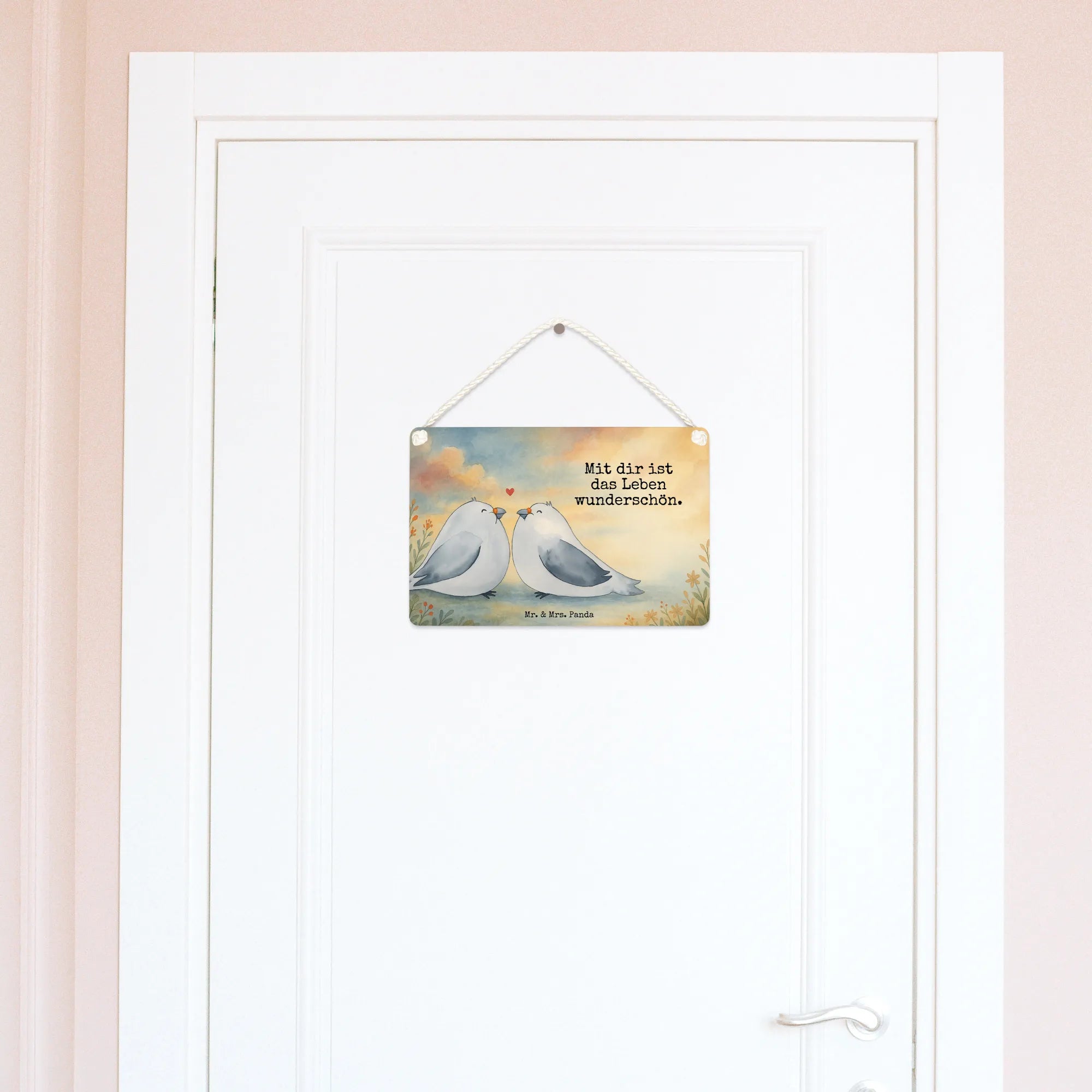 Mr. & Mrs. Panda Deko Schild „Turteltauben Liebe“ – ein liebevolles Geschenk für Verliebte und alle, die ihr Zuhause mit Gefühl dekorieren möchten. Die zarten Turteltäubchen, handgezeichnet von Mrs. Panda, lehnen sich zärtlich zueinander, während ein kleines rotes Herz ihre innige Verbindung symbolisiert. Der zugehörige Spruch „Mit dir ist das Leben wunderschön.“ macht das Schild zum perfekten Liebesbeweis.