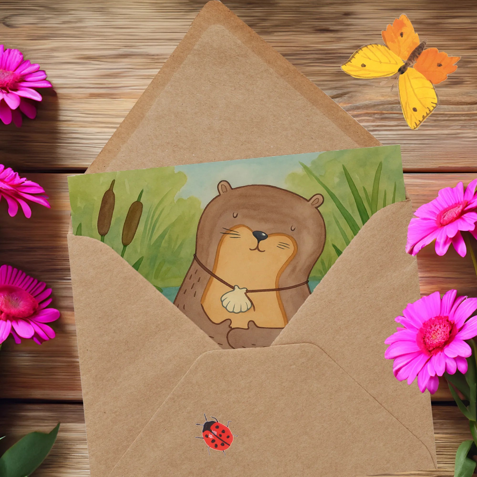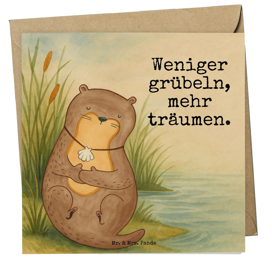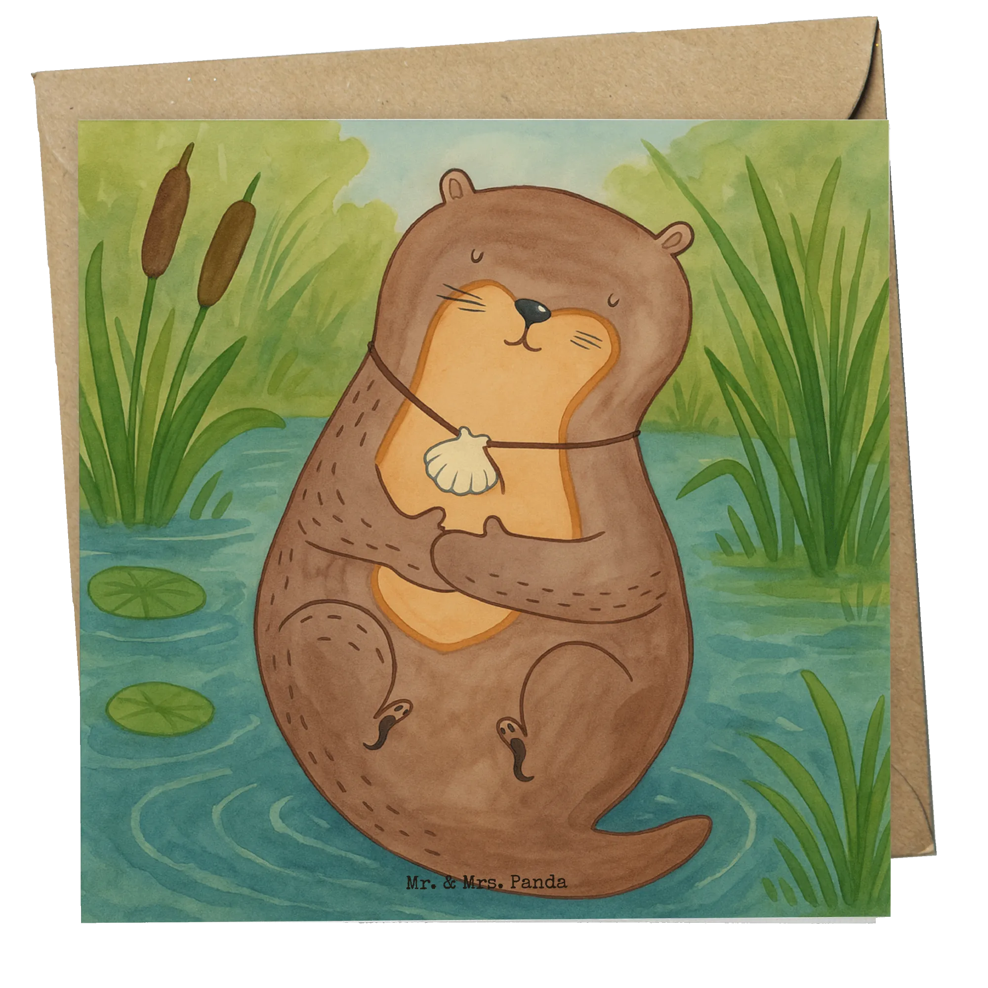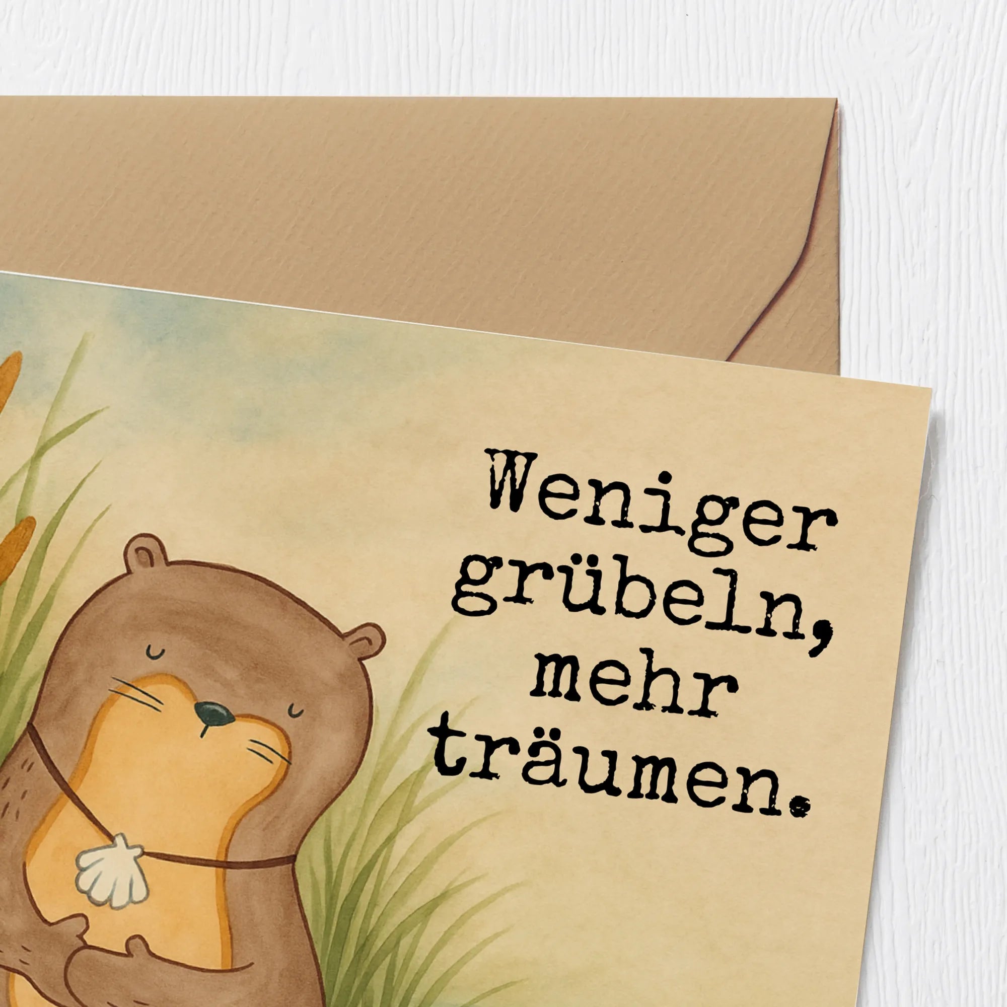Deluxe Card otter shell Design Karte, Grußkarte, Klappkarte, Einladungskarte, Glückwunschkarte, Hochzeitskarte, Geburtstagskarte, Hochwertige Grußkarte, Hochwertige Klappkarte, Otter, Fischotter, Seeotter, Otterliebe, grübeln, träumen, Motivation, Tagträumen, Büro