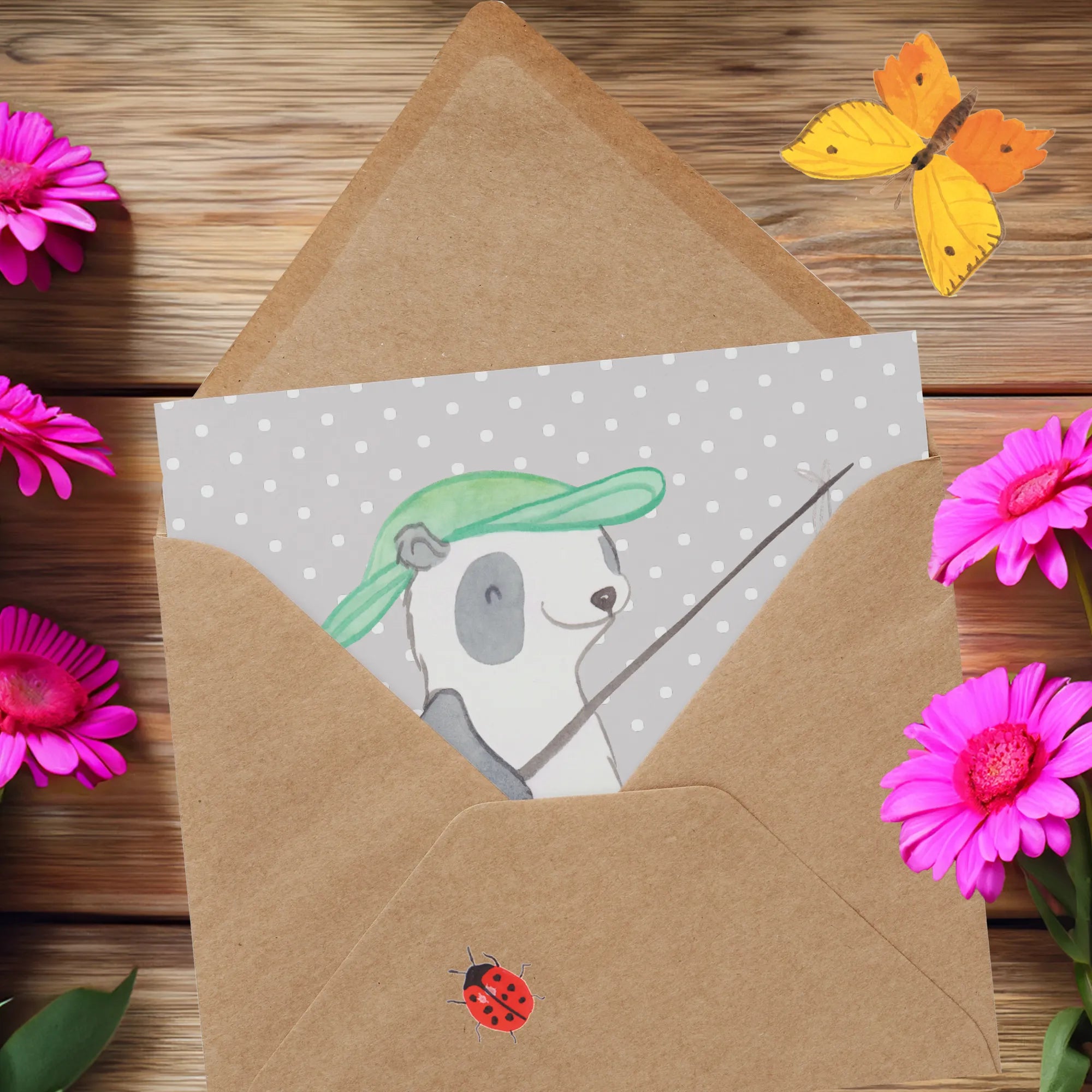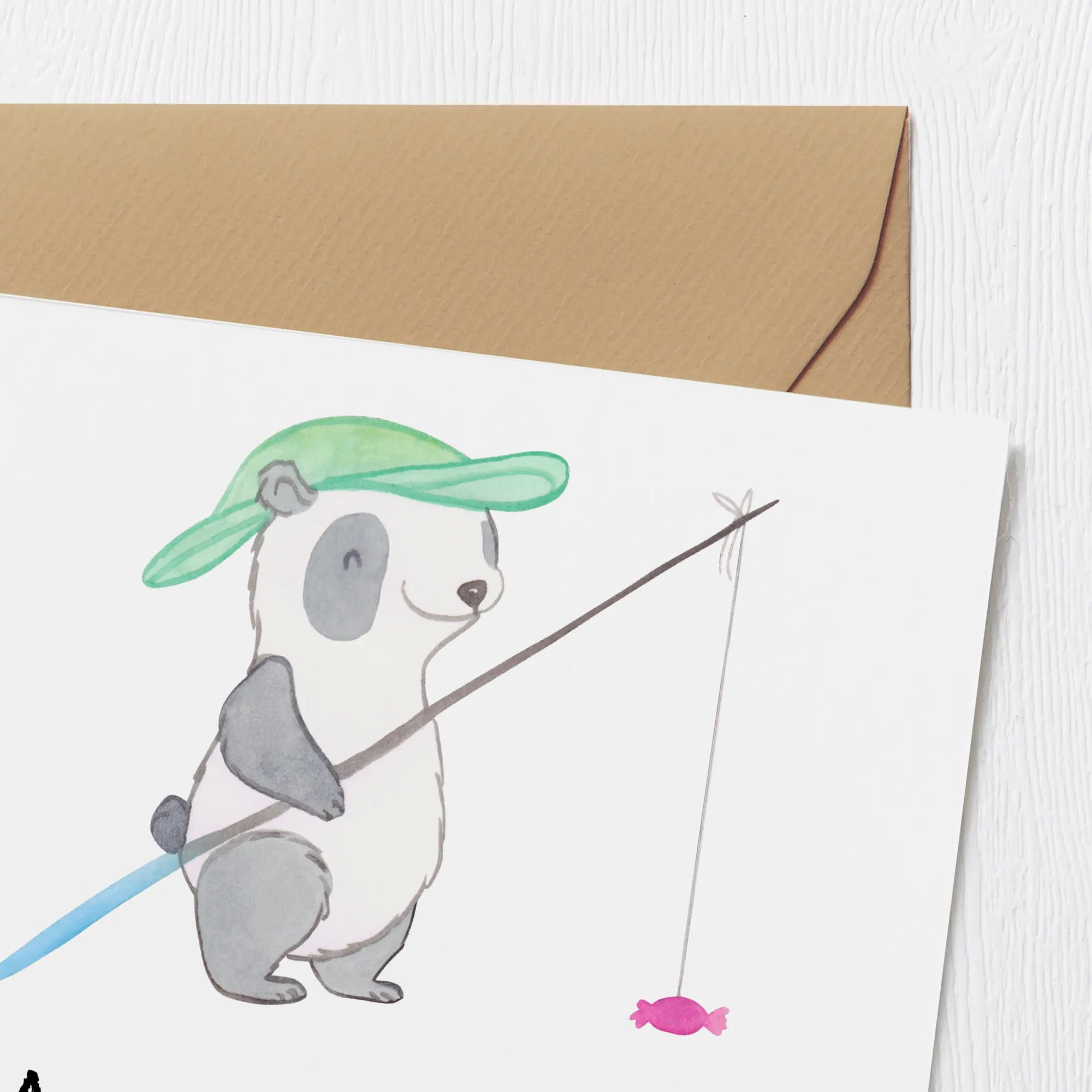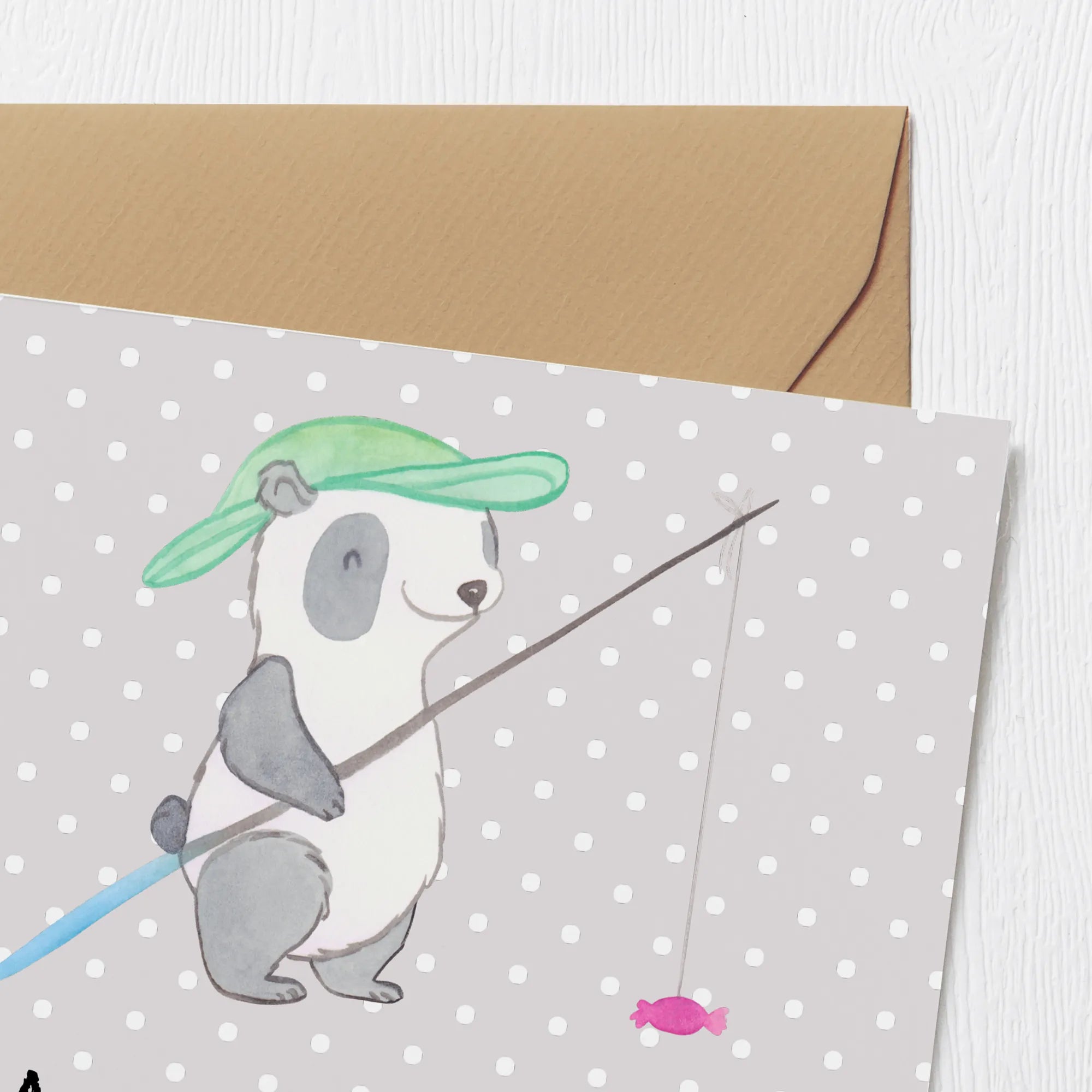Deluxe Card panda fishing - with saying - Pastel Gray