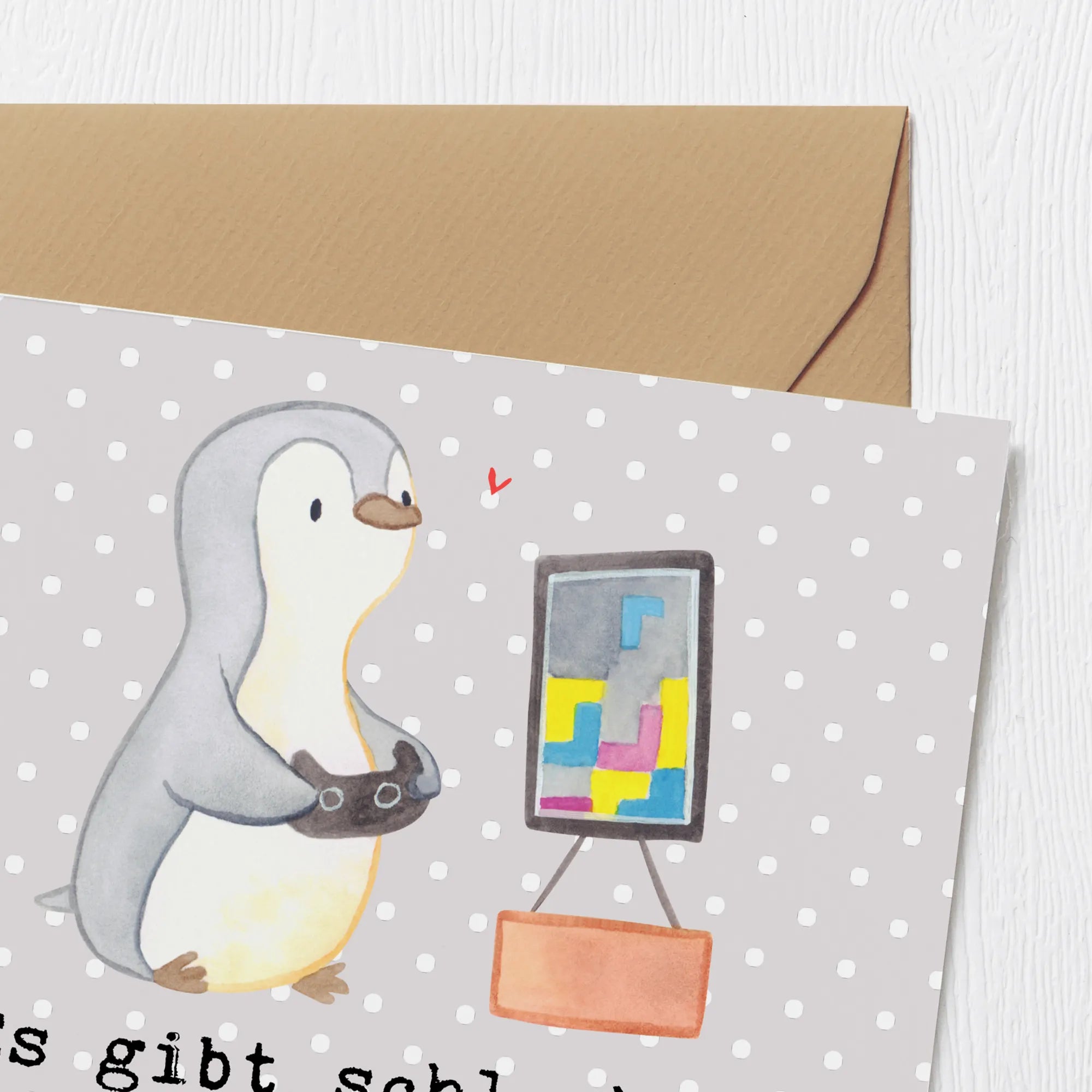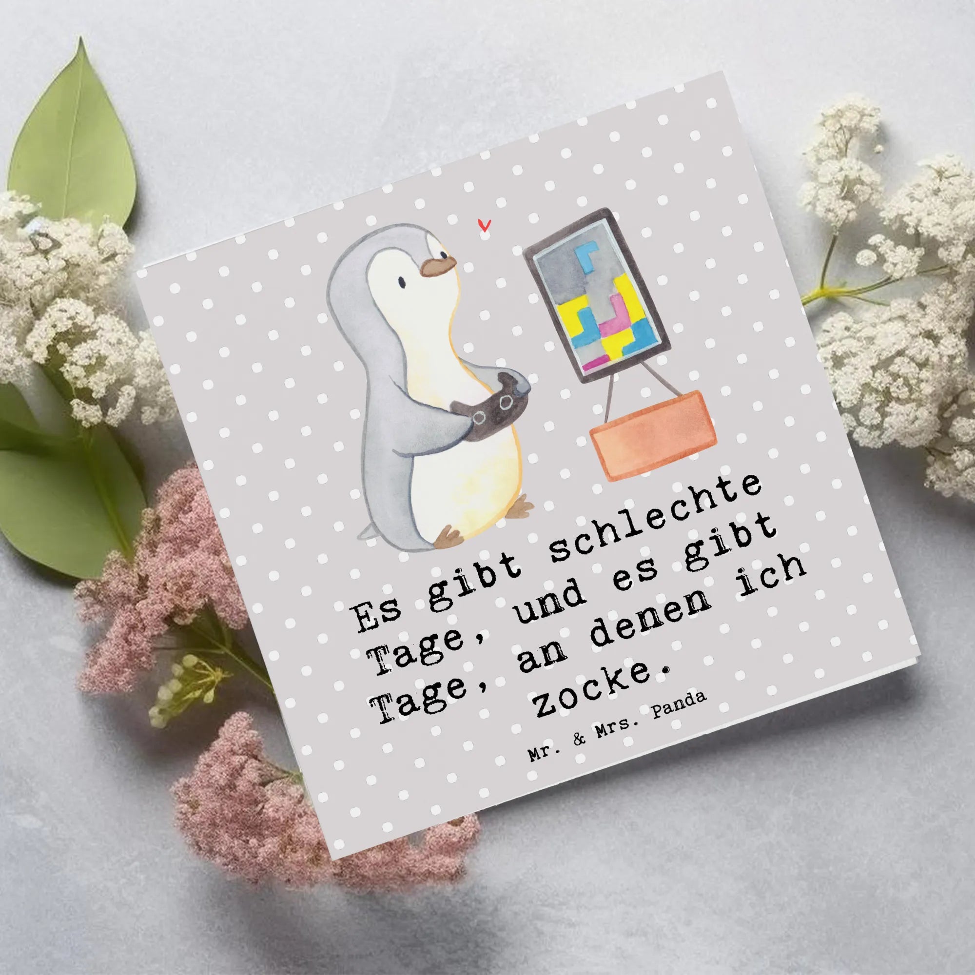 Introducing the delightful Deluxe Card featuring the adorable Penguin Gamble Days from the Mr. & Mrs. Panda collection! This high-quality card is perfect for anyone who loves gaming or sports, making it the ideal gift for friends and family who appreciate a good laugh as much as they appreciate their hobbies.