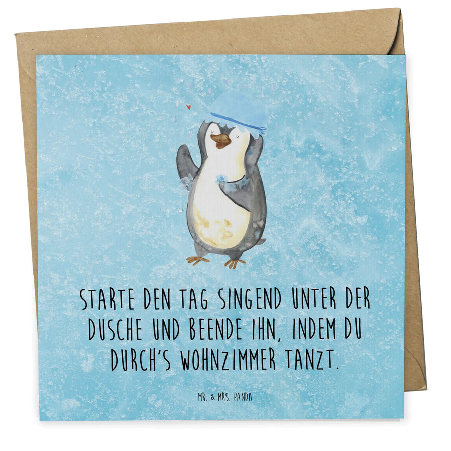 Deluxe Card Penguin have a shower - with a saying - Ice blue