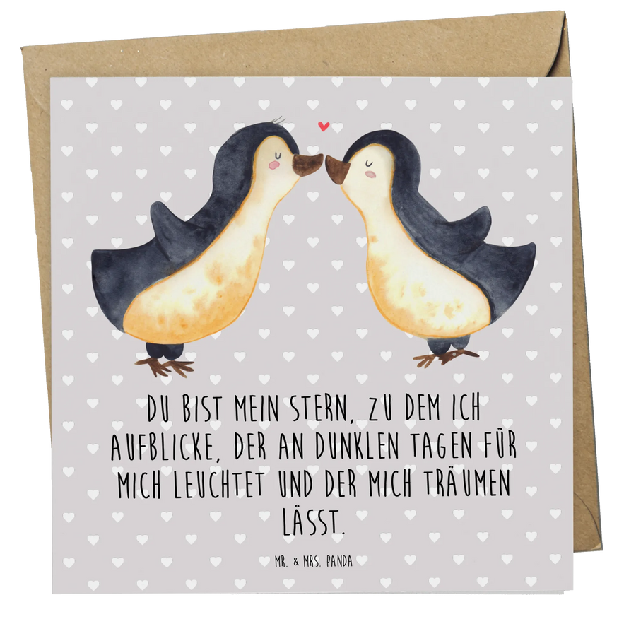 Deluxe Card Penguins in love - with a saying - Grey Pastel
