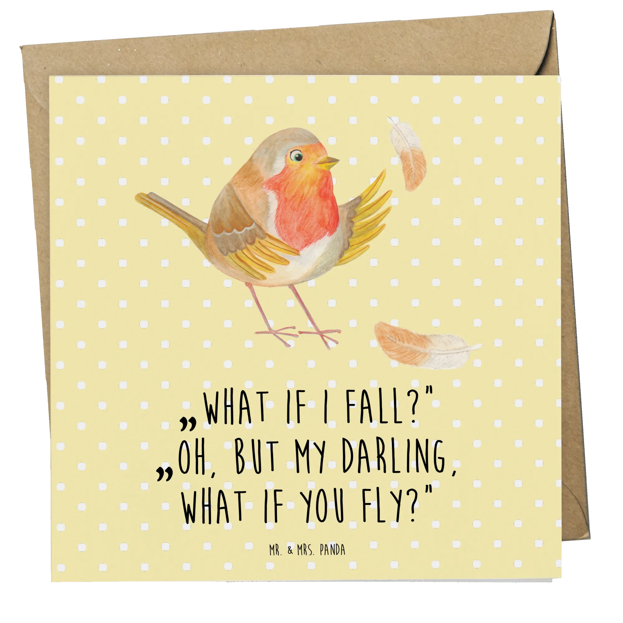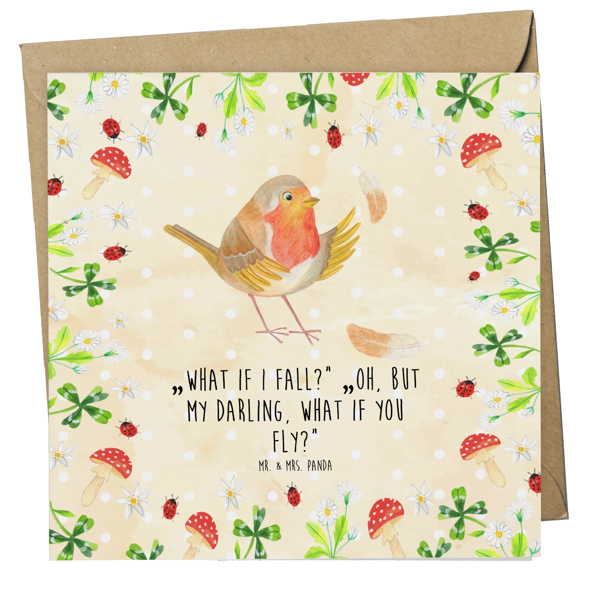 This card exudes warmth and encouragement with its beautifully hand-drawn design, making it an ideal choice for any occasion when you want to share a little motivation. Every time your loved one receives this card, they will see the lovely robin amidst colorful feathers, reminding them that life is about taking leaps of faith and overcoming fears. The inspiring sentiment, "What if I fall? Oh, but my darling, what if you fly?", encourages the recipient to embrace their dreams and aspirations with courage.