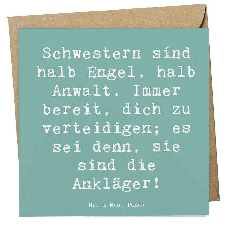 Deluxe Card Saying Schwestern sind halb Engel, halb Anwalt. Immer bere – Mr. & Mrs. Panda
