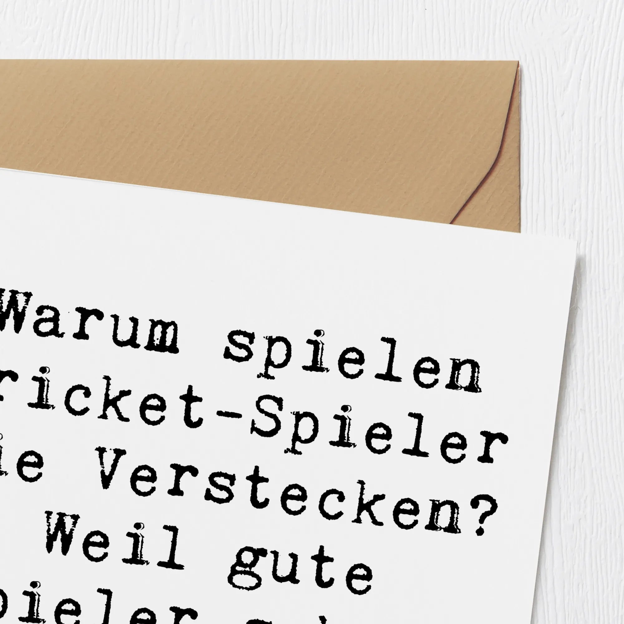 Deluxe Card Saying Warum spielen Cricket-Spieler nie Verstecken? Weil gute Spieler schwer zu finden sind! Karte, Hochzeitskarte, Hochwertige Grußkarte, Einladungskarte, Glückwunschkarte, Hochwertige Klappkarte, Grußkarte, Klappkarte, Geburtstagskarte, Geschenk, Sport, Sportart, Hobby, Schenken, Danke, Dankeschön, Auszeichnung, Gewinn, Sportler