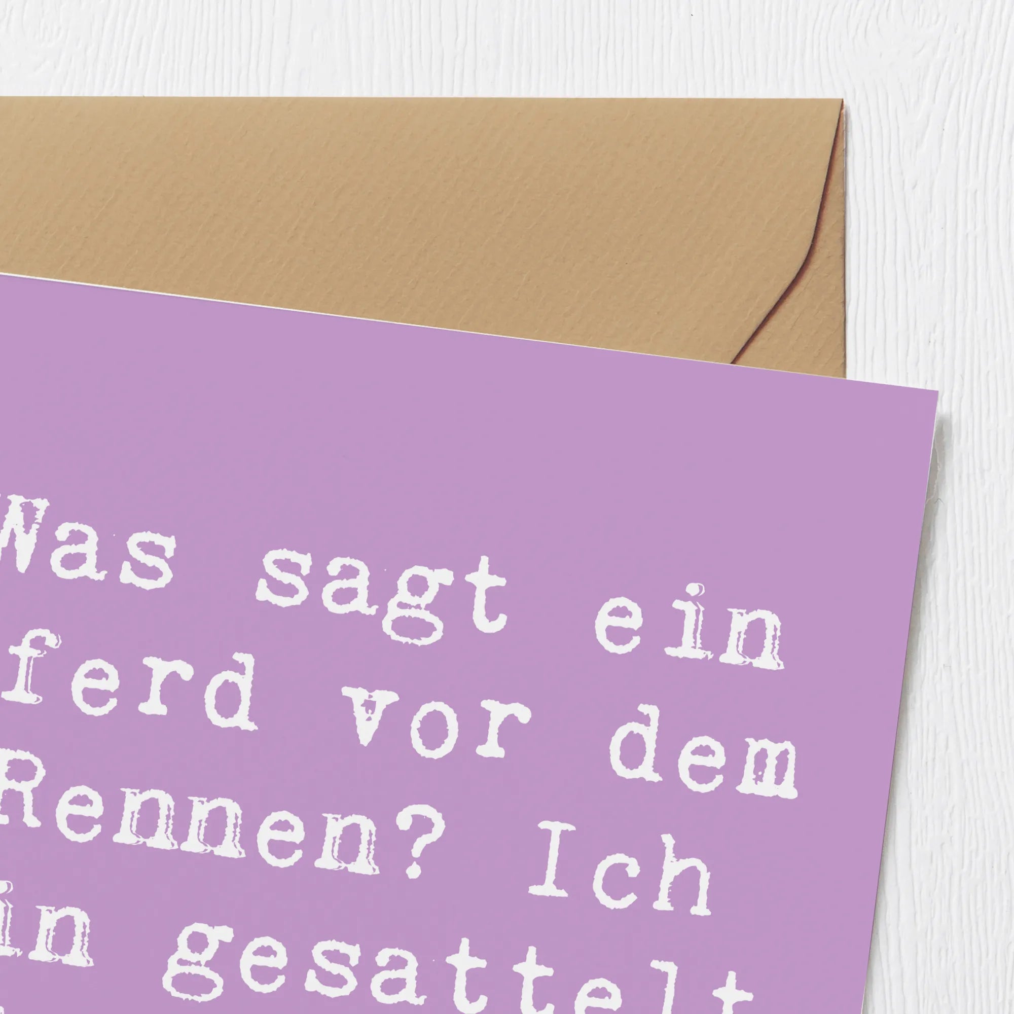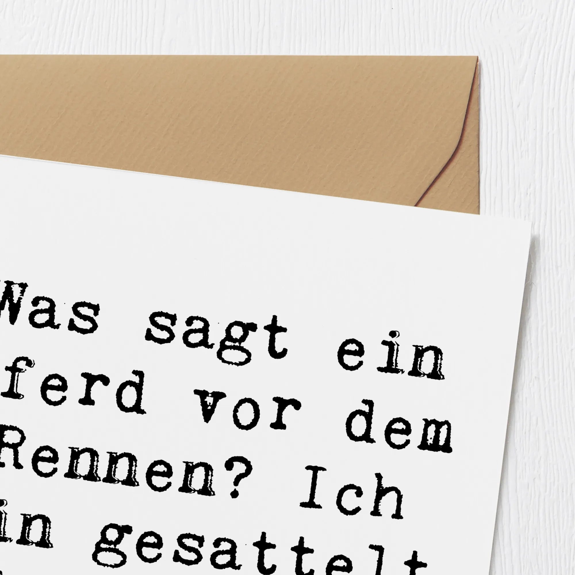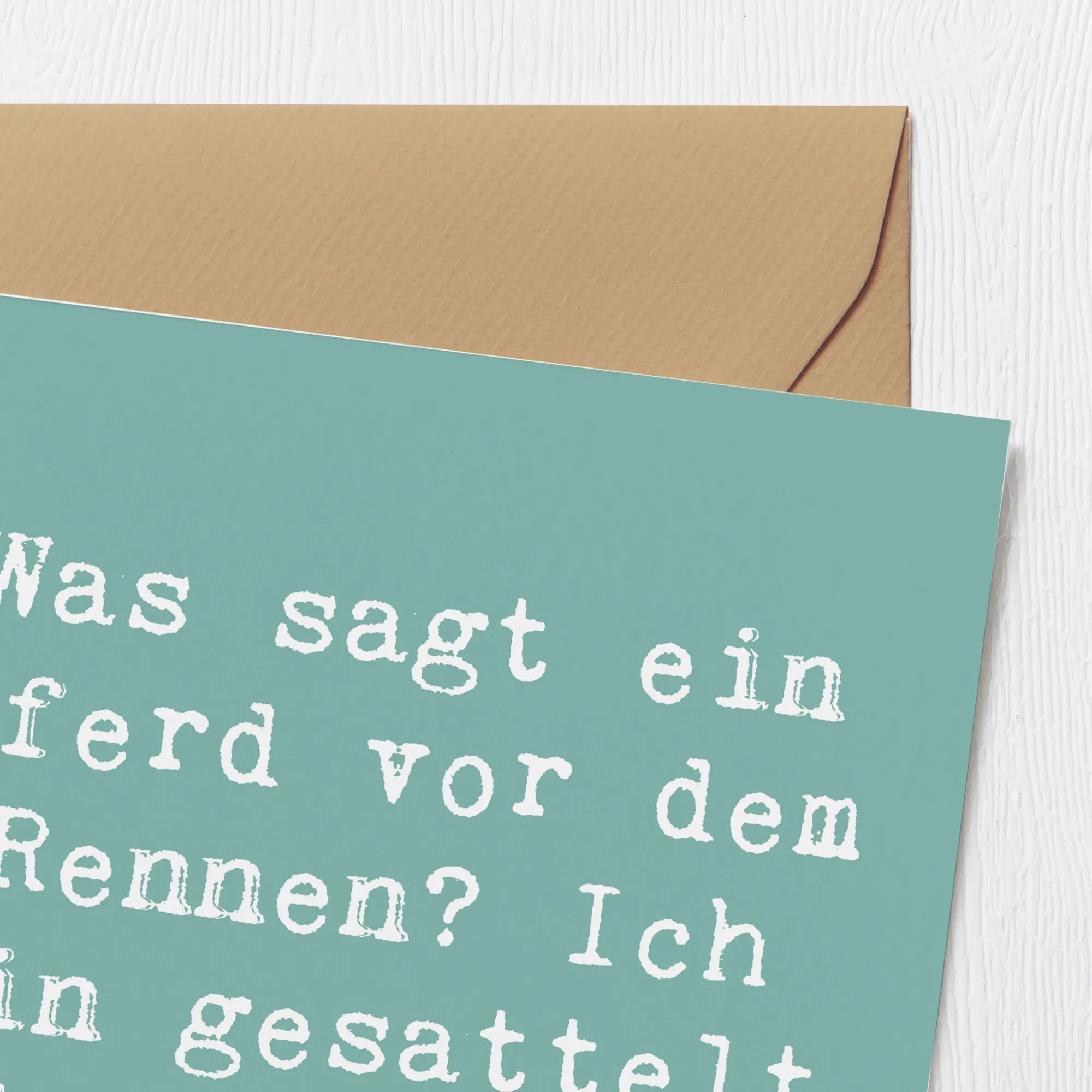 Deluxe Card Saying Was sagt ein Pferd vor dem Rennen? Ich bin gesattelt für den Sieg! Hochzeitskarte, Glückwunschkarte, Einladungskarte, Grußkarte, Klappkarte, Hochwertige Grußkarte, Hochwertige Klappkarte, Karte, Geburtstagskarte, Geschenk, Sport, Sportart, Hobby, Schenken, Danke, Dankeschön, Auszeichnung, Gewinn, Sportler