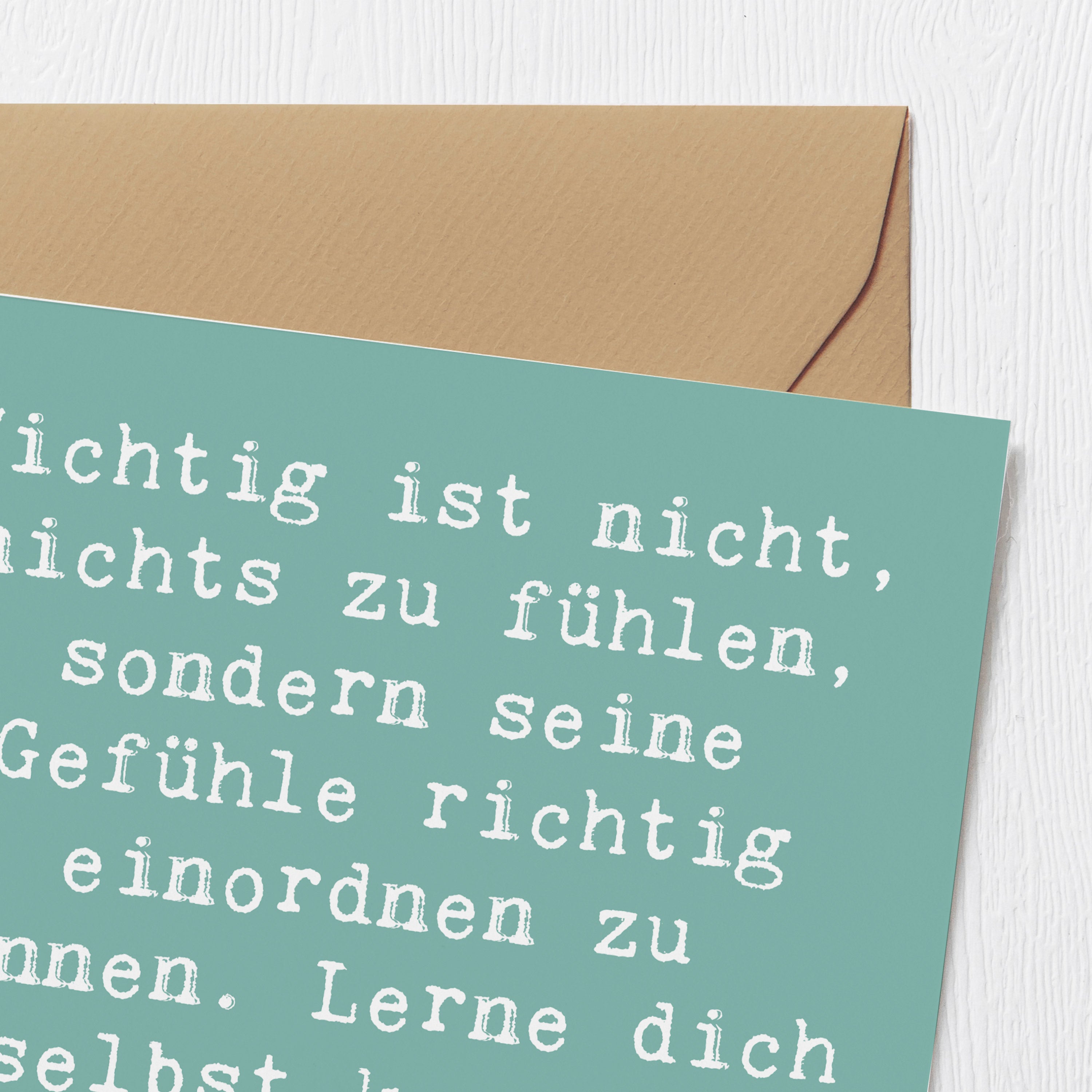 Deluxe Card Saying Wichtig ist nicht, nichts zu fühlen, sondern seine Gefühle richtig einordnen zu können. Lerne dich selbst kennen, dann wird alles möglich... - Sea Breeze