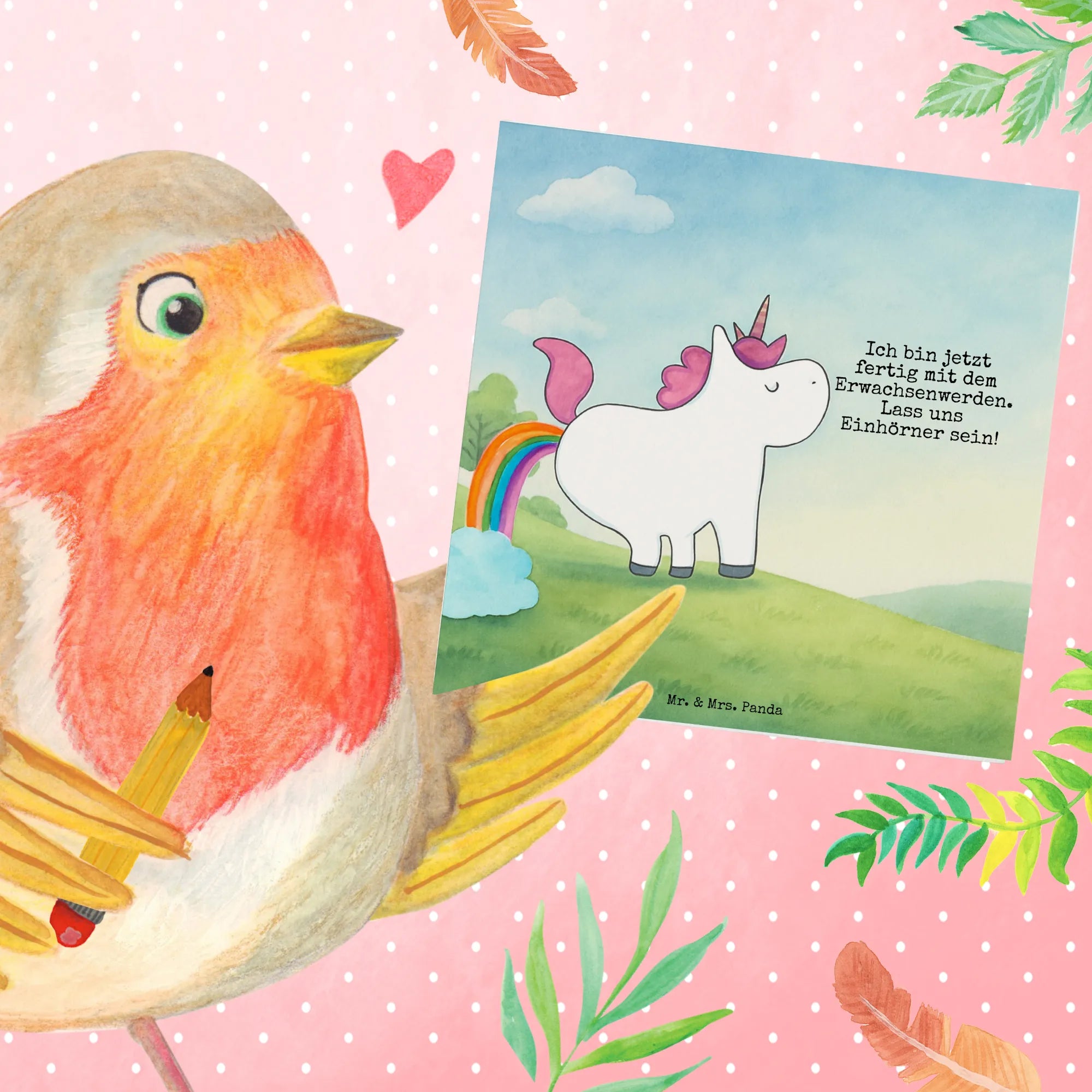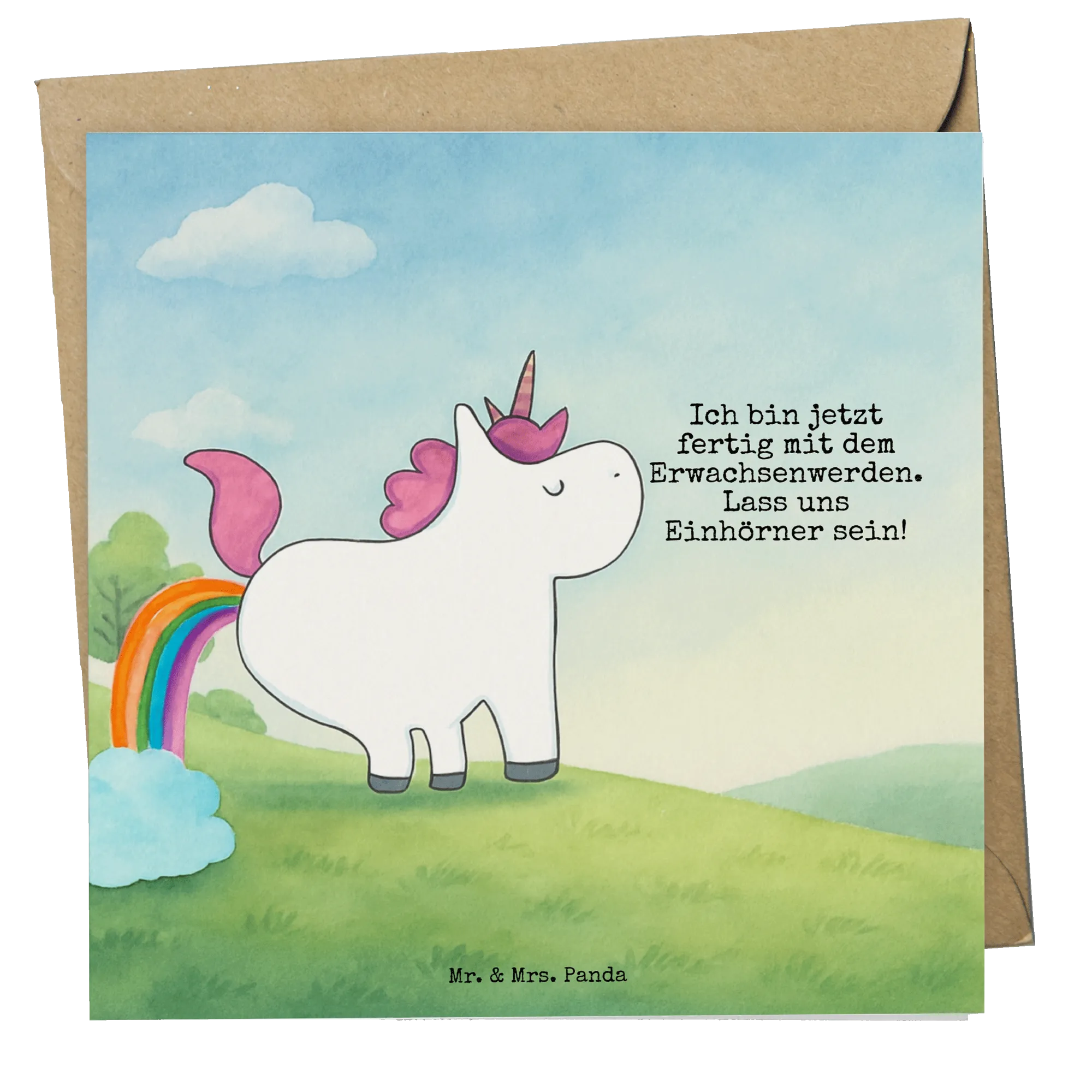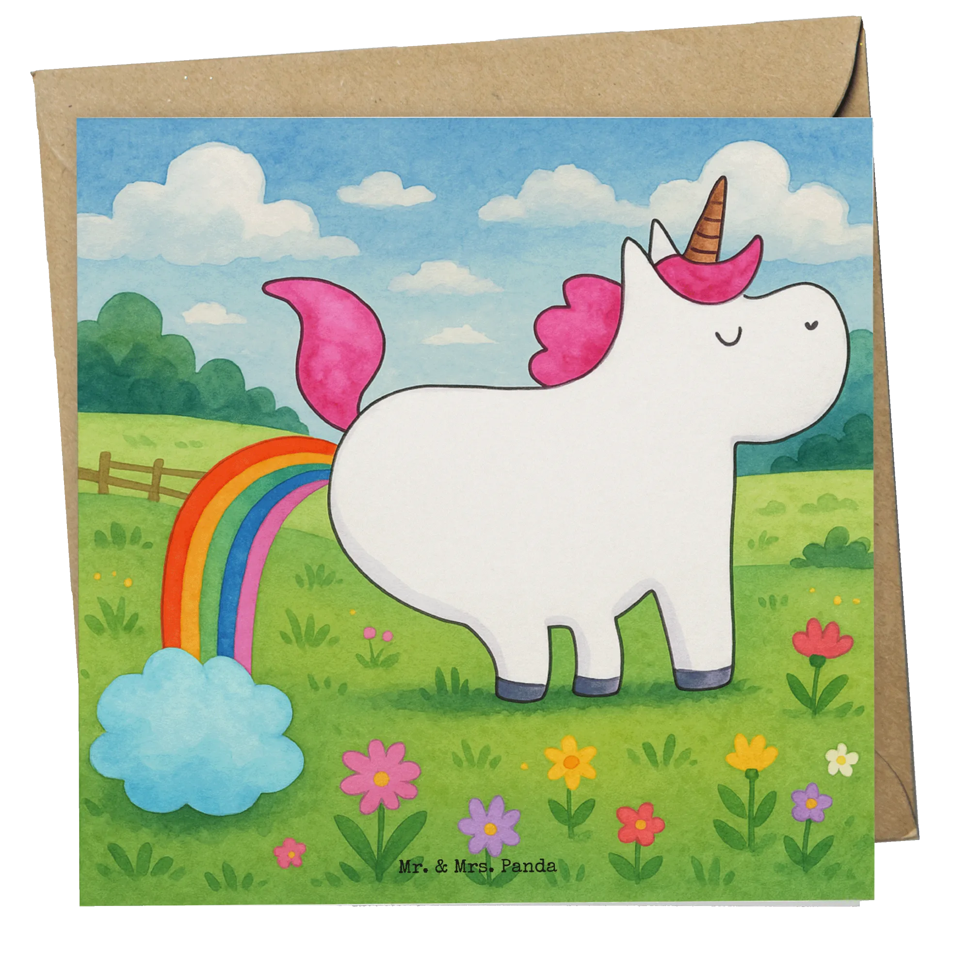 The farting unicorn is the most beautiful message to ask your girlfriend if adulthood sometimes annoys her too. Hunting over a rainbow with lots of glitter is also somehow more fun than taking out the garbage. Maybe that's why the farting unicorn is one of Mr. & Mrs. Panda's most popular motifs.