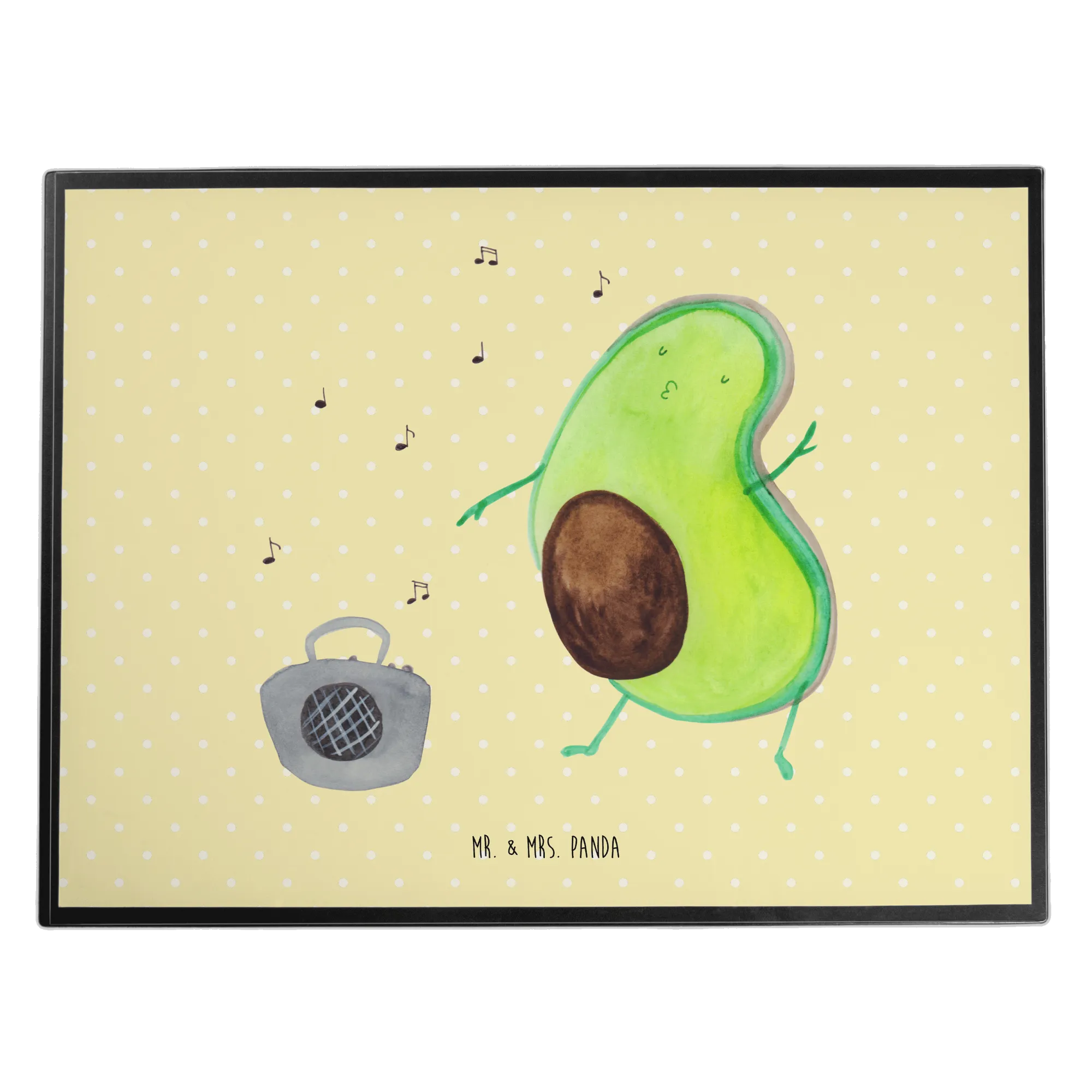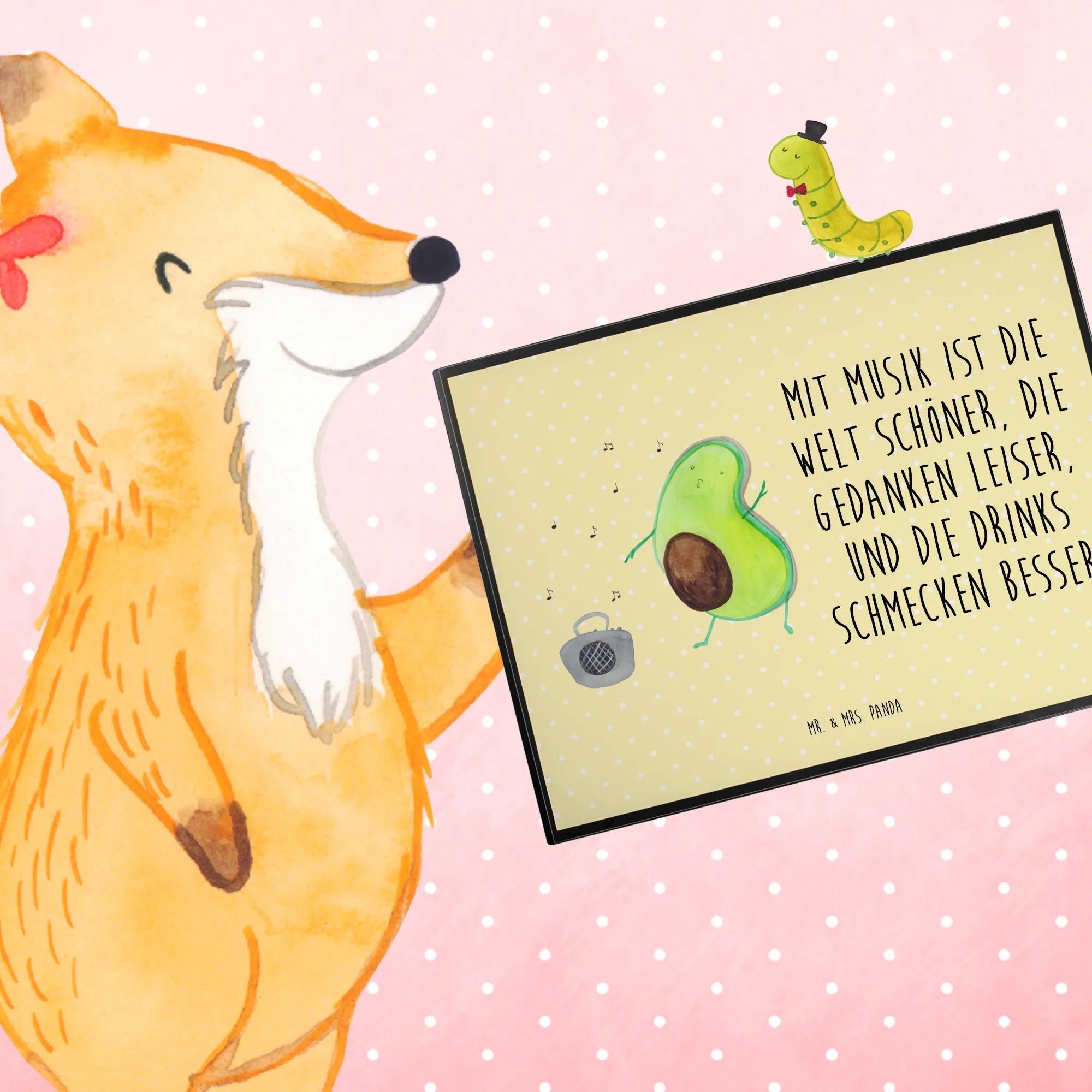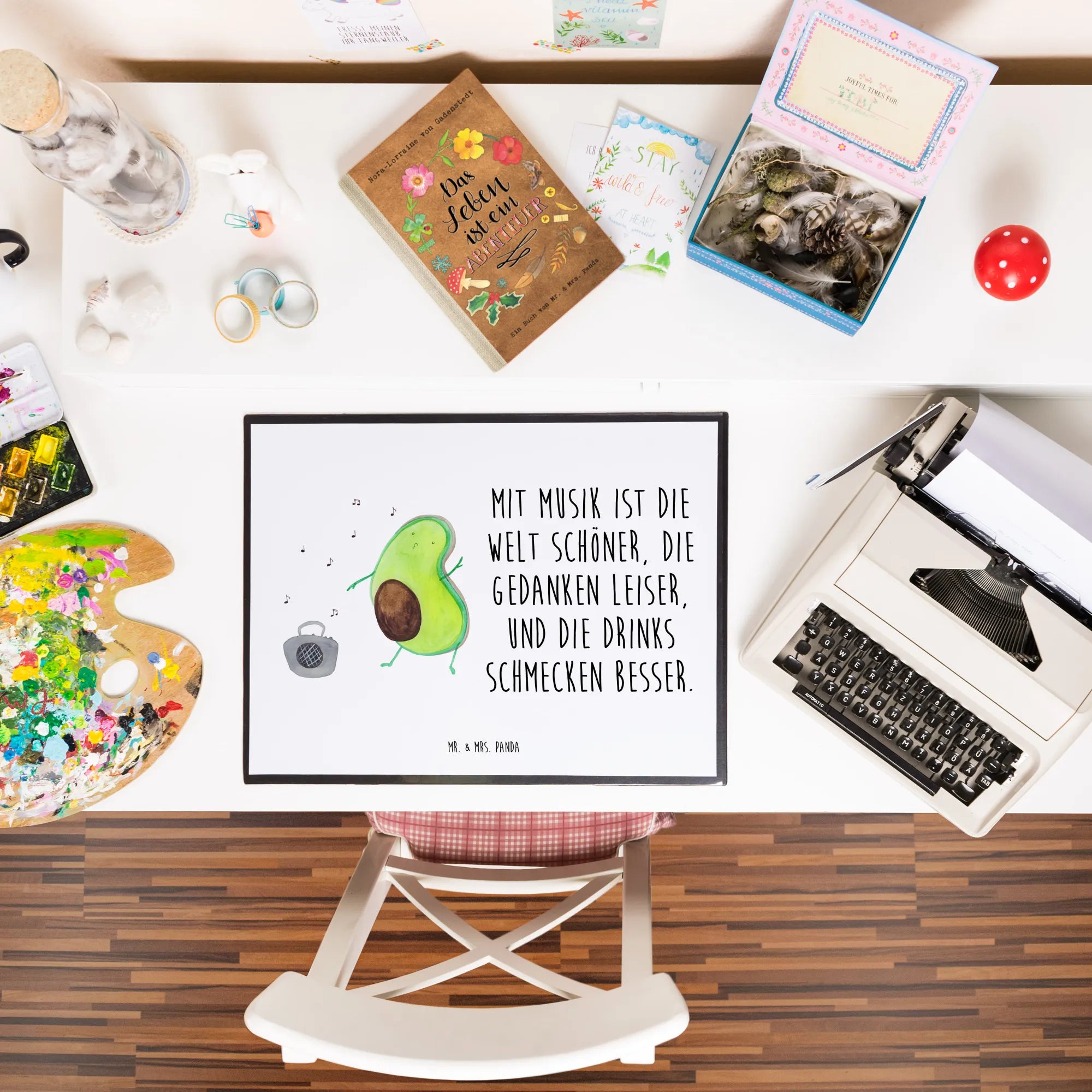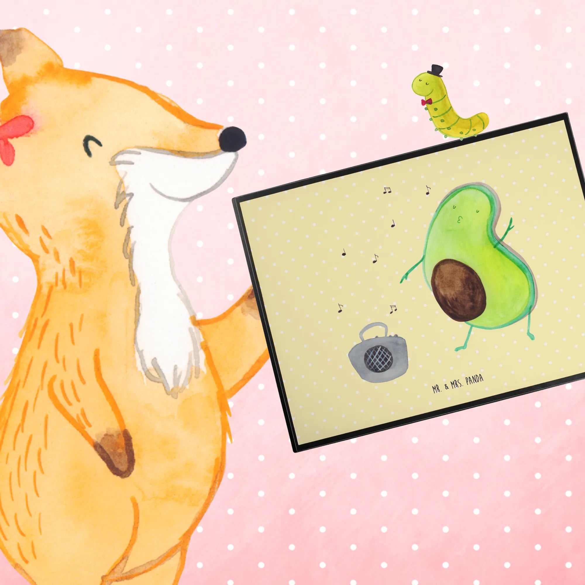 Imagine a cheerful avocado, swaying and twisting in front of a boombox, radiating positivity and joy through dance. This motif brings to life the spirit of fun and embodies the saying 'Music makes the world more beautiful, calms a restless mind, and turns sour into sweet.' Let this playful scene inspire you to add a little dance to your daily life.