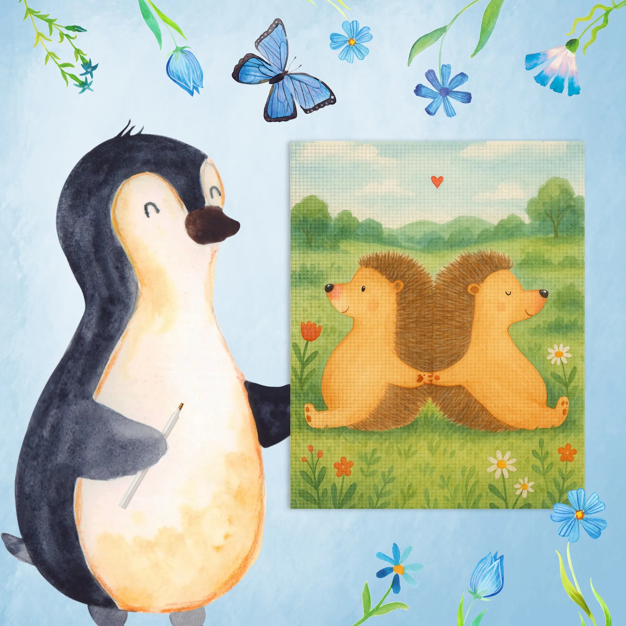 Diamond Painting Hedgehogs holding hands Design - Without frame