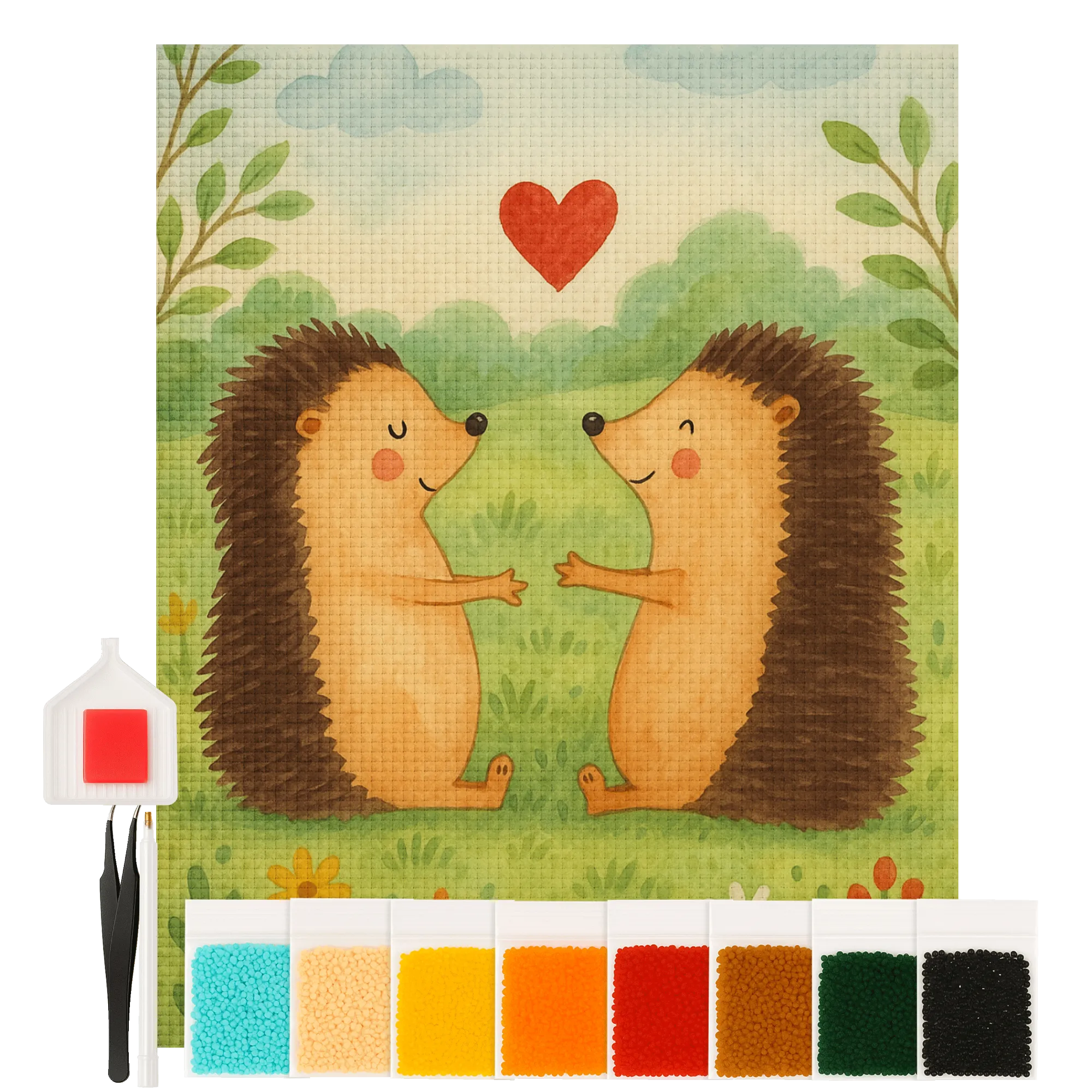 Diamond Painting Hedgehogs in love Design - Ohne Rahmen