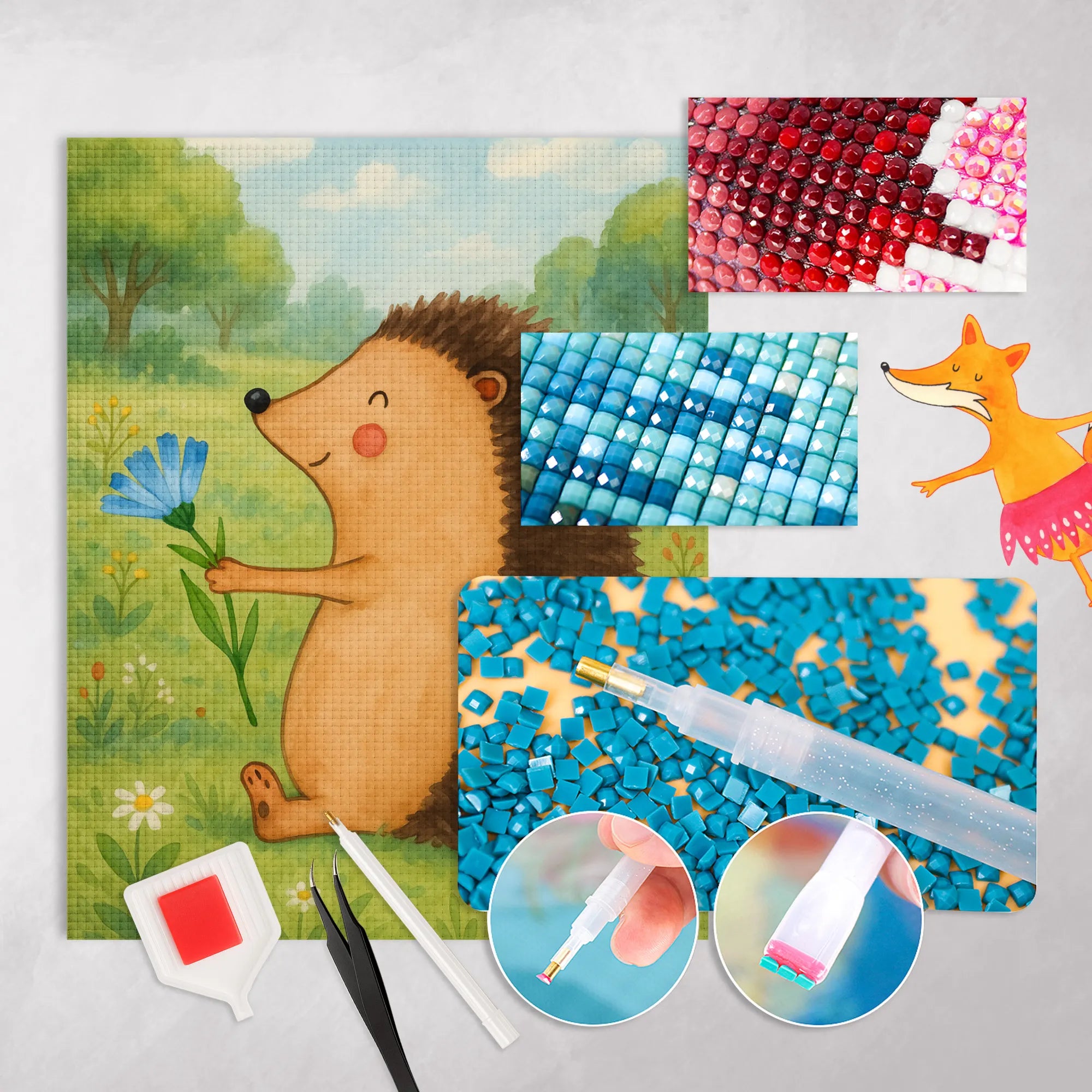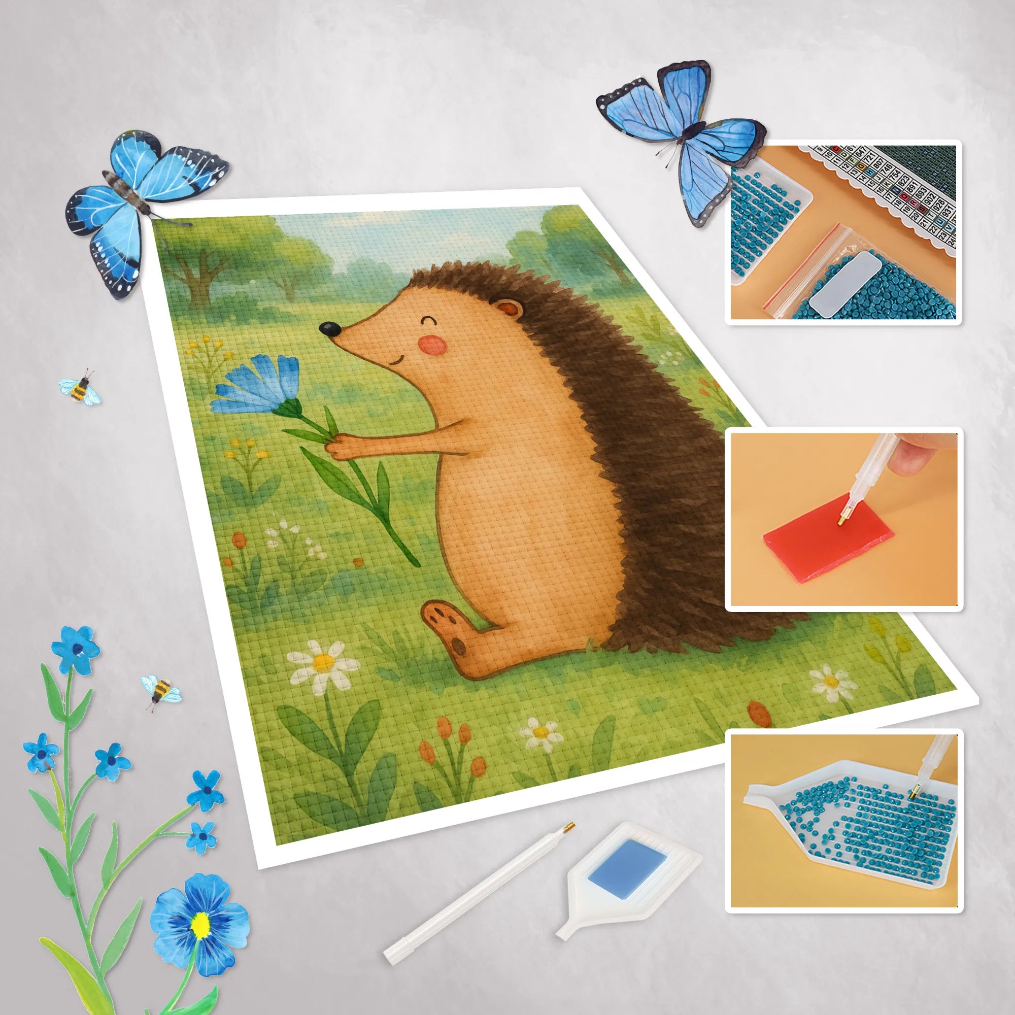 Diamond Painting Igel Blumen Design - Ohne Rahmen