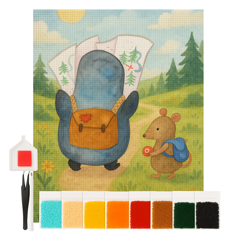 Diamond Painting Penguin & Mouse Hiker Design - Ohne Rahmen