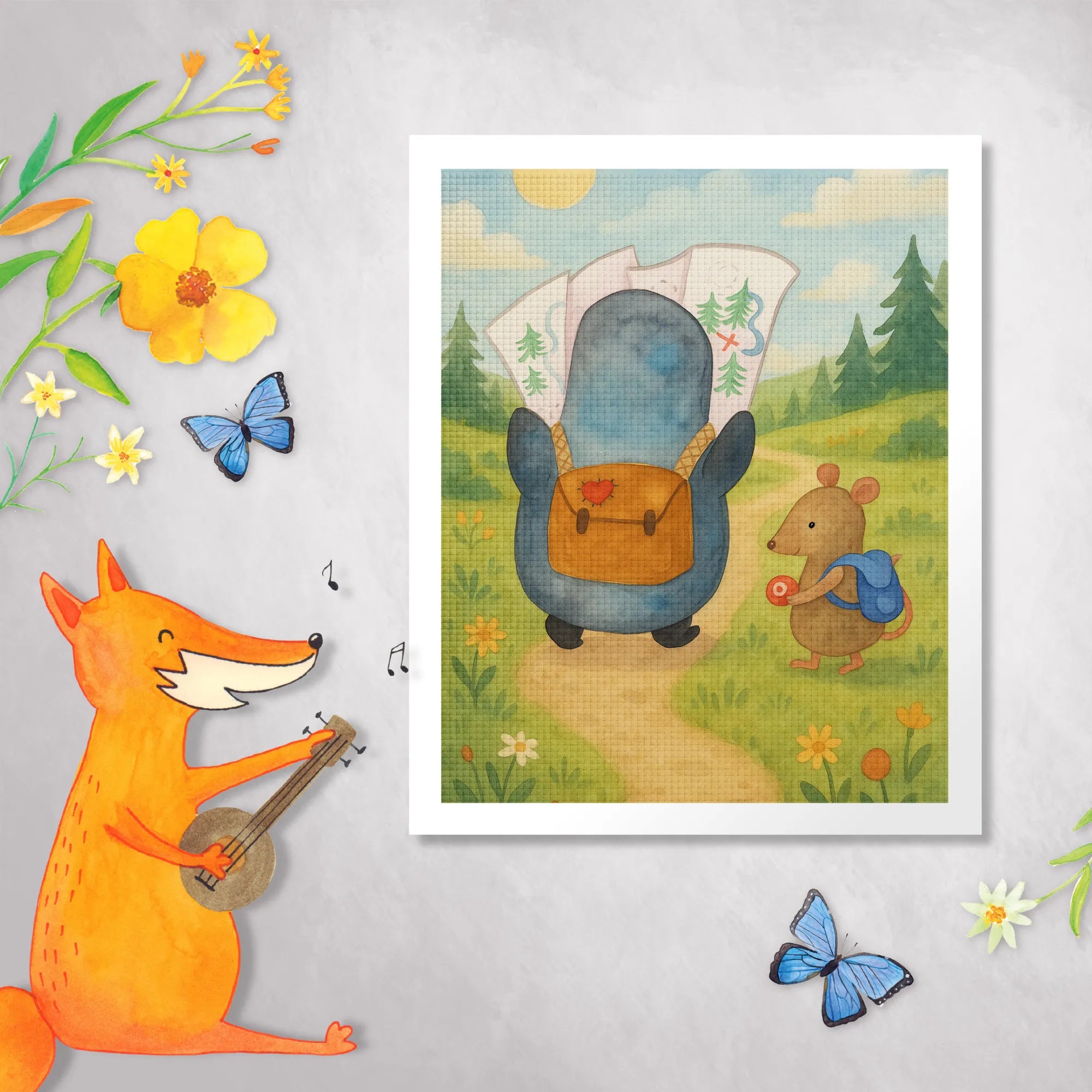 Bist du bereit für ein Abenteuer mit dem Pinguin und der Maus? In diesem traumhaften Motiv schaut der Pinguin mit großen Augen auf die Landkarte, während die Maus den Kompass in der Hand hält. Gemeinsam verkörpern sie die pure Freude des Entdeckens! Ob durch zauberhafte Landschaften oder geheimnisvolle Wälder – ihre Freundschaft und ihre Unerschrockenheit machen jedes Abenteuer unvergesslich. Der Roadtrip der beiden lädt uns ein, das Unerforschte zu umarmen und die Welt neugierig zu erkunden. Ihre witzigen Interaktionen und die Vorfreude auf das, was kommt, erinnern uns daran, dass Freundschaft die beste Begleiterin auf dem Abenteuer des Lebens ist. Lasst uns inspirieren und unser eigenes Stück Wanderlust auf den nächsten Ausflug mitnehmen!