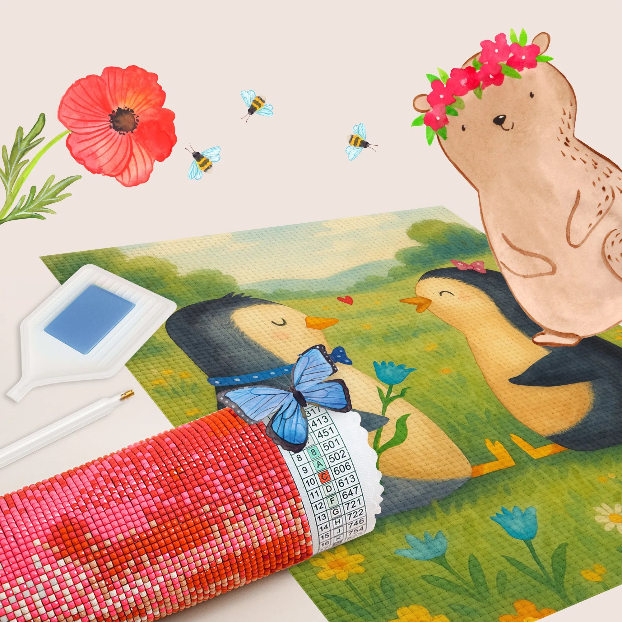 Das Diamond Painting Pinguin Pärchen aus der Pinguin - Kollektion von Mr. & Mrs. Panda ist das perfekte Geschenk für Verliebte, ein kreatives Hobby für entspanntes Abschalten und eine liebevolle Deko-Idee für dein Zuhause. Die beiden niedlichen Pinguine sitzen sich gegenüber und schauen sich mit ganz viel Zuneigung an – ein Motiv, das sofort wärmt.
