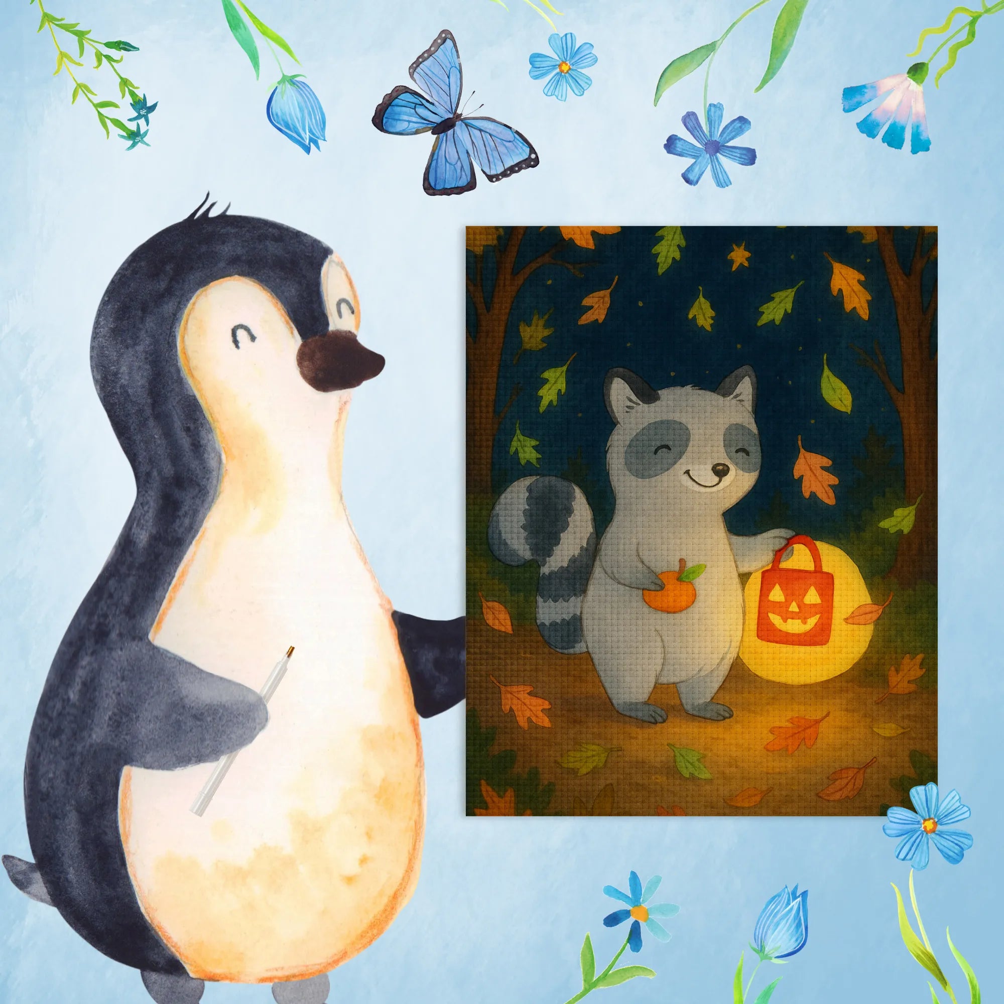 Mit seiner leuchtenden Laterne beherrscht unser süßer Waschbär die Kunst, die magische Atmosphäre des Herbstes einzufangen. Umgeben von laubbehangenen Wegen und dem sanften Schriftzug von Halloween erinnert er an die Freude der bunten Feste. Dieser kleine Freund sagt uns, dass es Zeit ist, die Süßigkeiten zu zählen und sich auf das aufregende Abenteuer der Nächte vorzubereiten. Sein freundlicher Blick zaubert jedem ein Lächeln ins Gesicht und schafft sofort eine herzliche Stimmung. Lass dich von seiner Energie anstecken und verwandle dein Zuhause in ein einladendes Refugium voller Freude und Farben. Mit diesem tollen Waschbären wird die Halloween-Zeit zu einem unvergesslichen Erlebnis!