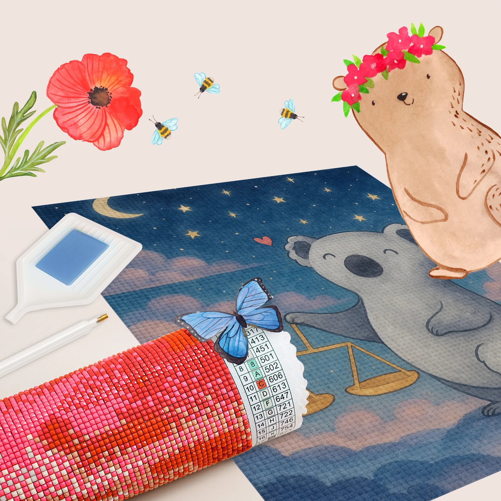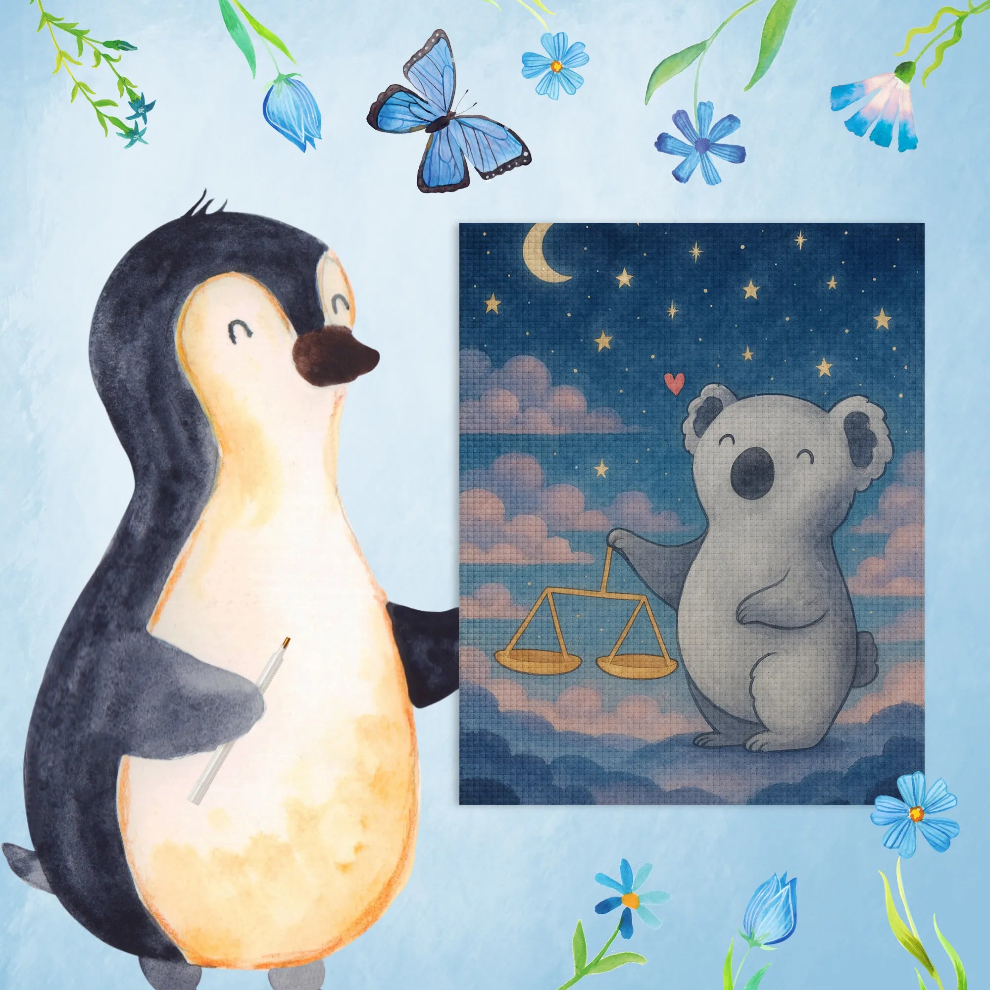 Feiere die Waage mit diesem freudigen Motiv, das einen charmanten Koala und eine Bast-Waage zeigt. Der Koala wirkt so zufrieden und glücklich mit seinem Lächeln und den geschlossenen Augen und vermittelt ein Gefühl von innerem Frieden und Balance. Das kleine rote Herz über seinem Kopf erinnert uns an die Liebe, die Waagen Tag für Tag in die Welt bringen. Dieses Kunstwerk ist nicht nur eine großartige Dekoration, sondern auch ein durchdachtes Geburtstagsgeschenk für jeden, der das Sternzeichen Waage schätzt. Es bringt Freude und Liebe in jeden Raum und ist eine zärtliche Erinnerung daran, wie wichtig es ist, das Gleichgewicht in unserem Leben zu halten. Mit diesem charmanten Bild wirst du sowohl Herausragendes als auch Zuneigung verschenken. Mach das nächste Geschenk deiner Freunde zu etwas Besonders!
