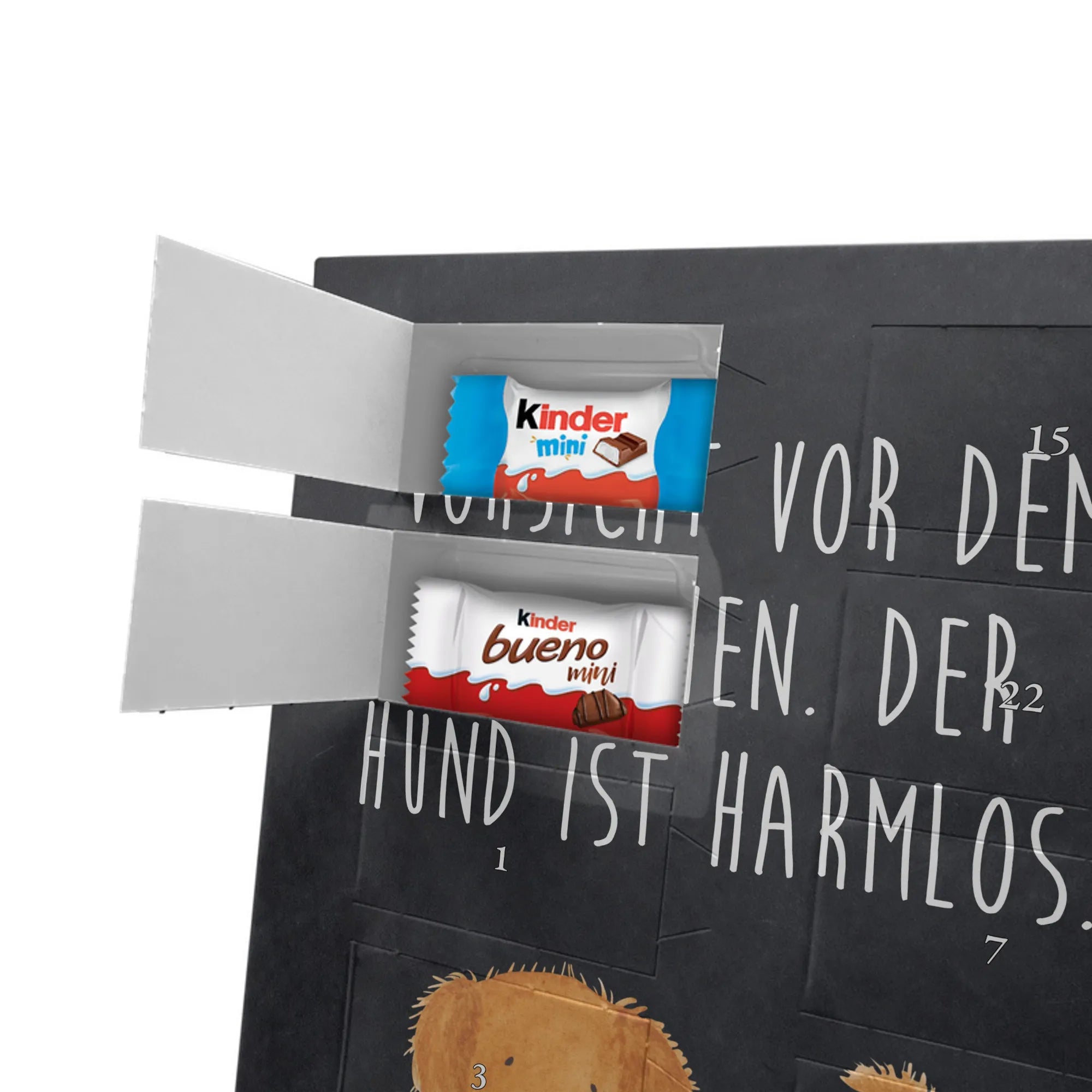 Unser personalisierten Schoko Foto Adventskalender ist ein echtes Highlight in der Adventszeit – handlich, individuell und voller süßer Überraschungen. Du personalisierst die Vorderseite mit deinem liebsten Foto und wir kombinieren es mit liebevollen Motiven und Sprüchen von Mr. & Mrs. Panda. Bitte achte auf eine ausreichende Bildauflösung und einen passenden Bildausschnitt, damit das Druckergebnis gestochen scharf ist. Lade nur Bilder hoch, deren Rechte du besitzt oder bei denen du die Erlaubnis hast, besonders wenn Personen darauf zu sehen sind. Wichtig: Fotos werden nicht retuschiert oder zugeschnitten; personalisierte Foto-Artikel sind vom Widerruf ausgeschlossen. Der Kalender besticht durch brillante Druckqualität und eine seidenmatte Oberflächenveredelung sowie bedruckte Seitenflächen. Maße: 355 mm x 245 mm x 11 mm. Du kannst ihn entweder aufstellen oder an die Wand hängen. Gefüllt ist der Adventskalender mit kinder® Schokolade, inklusive kinder® Schoko-Bons, kinder® Bueno mini und kinder® Schokolade mini. Ein liebevolles, persönliches Geschenk für Kinder, Freunde oder die bessere Hälfte – individuell, süß und mit dem typischen Mr. & Mrs. Panda Charme.