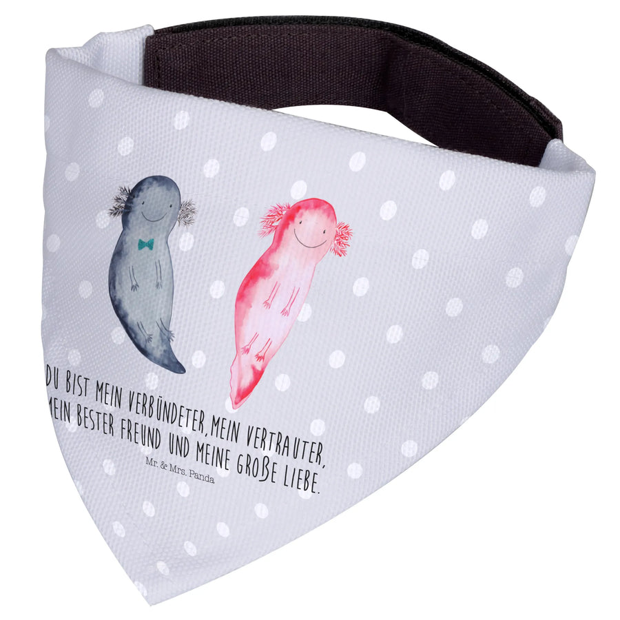 Introducing the delightful Mr. & Mrs. Panda dog neckerchief featuring an adorable Axolotl couple. This charming accessory is not just a stylish piece for your furry friend; it's a statement of love and companionship that resonates with dog lovers everywhere. The whimsical design showcases two cute Axolotls happily swimming together, symbolizing friendship, love, and loyalty. Perfect for big dogs, this neckerchief will make your pup the center of attention on walks and at gatherings.