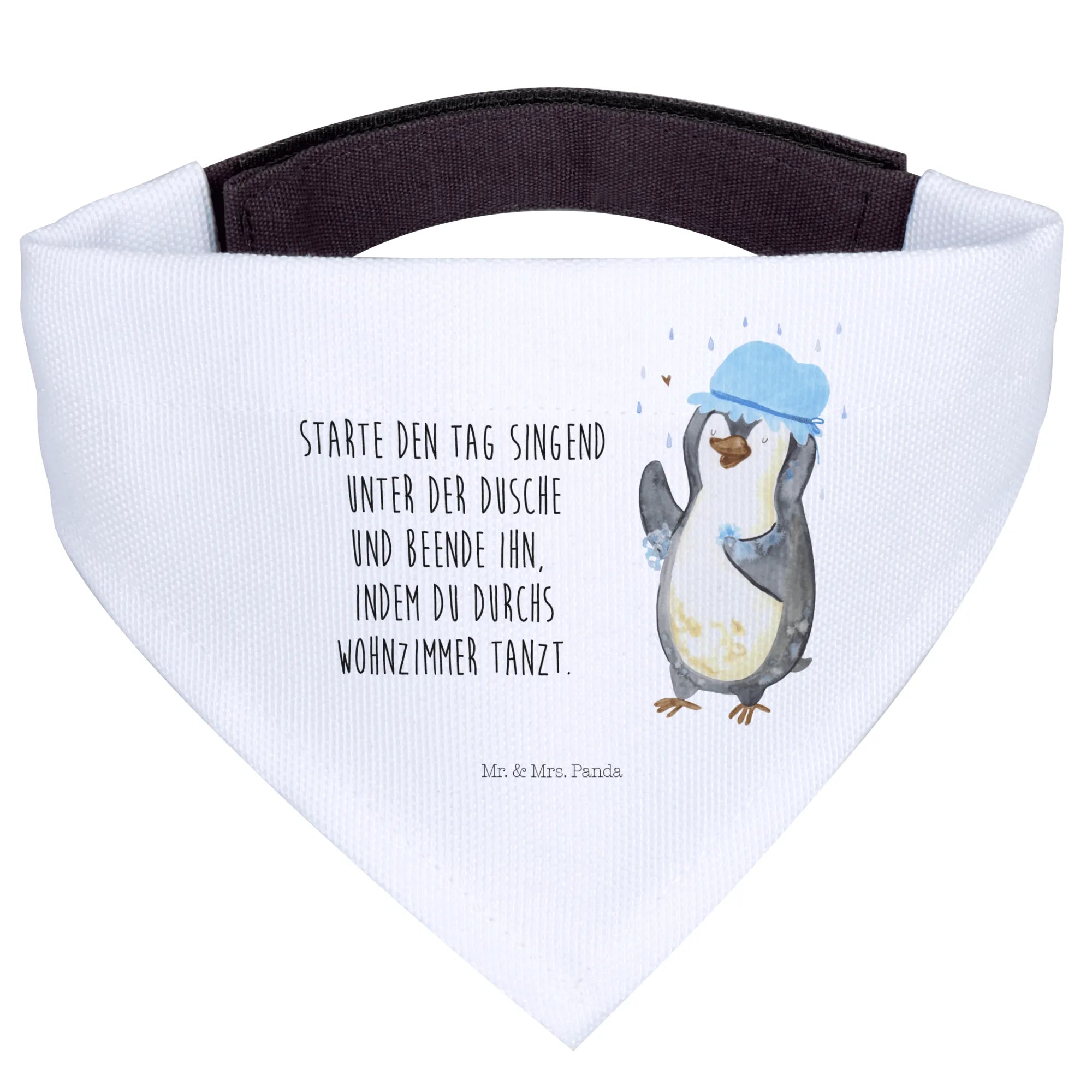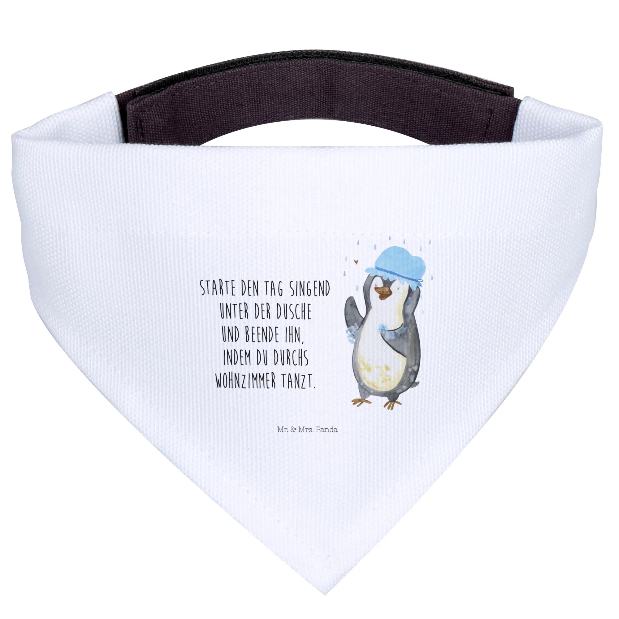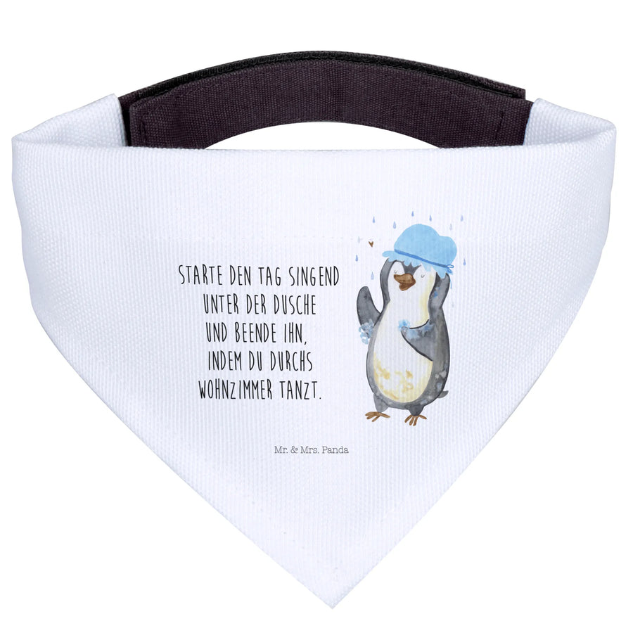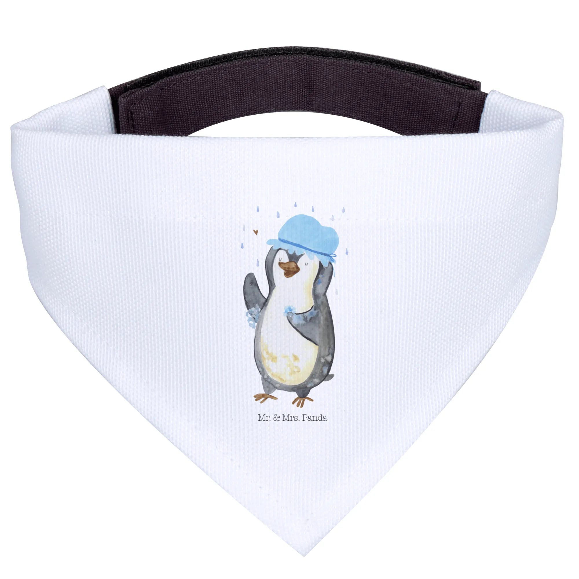 Dog neckerchief Penguin have a shower - Dog neck scarf M - with saying - White