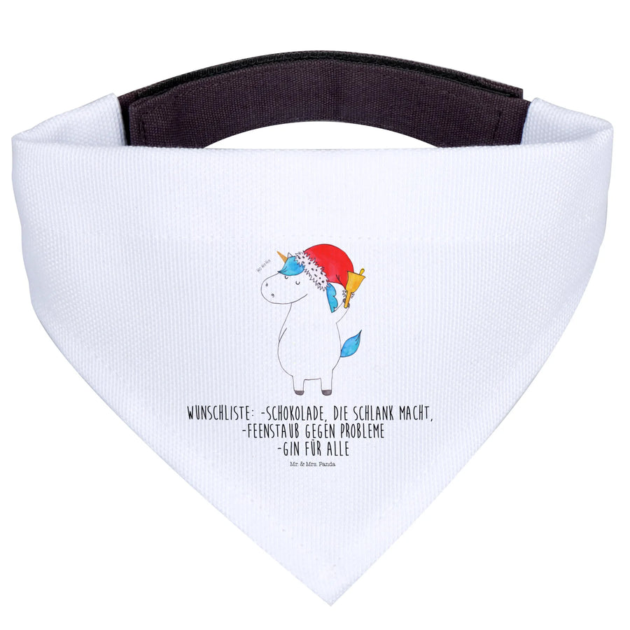 What makes the Mr. & Mrs. Panda Unicorn Santa Dog Neckerchief even more special is its playful slogan: ‘Wunschliste: - Schokolade, die schlank macht - Feenstaub gegen Probleme - Gin für alle.’ This light-hearted touch adds an element of fun that reflects the joyful essence of the holiday season while fostering connections with fellow pet lovers. After all, who wouldn’t want to share holiday wishes that include gin and fairy dust?