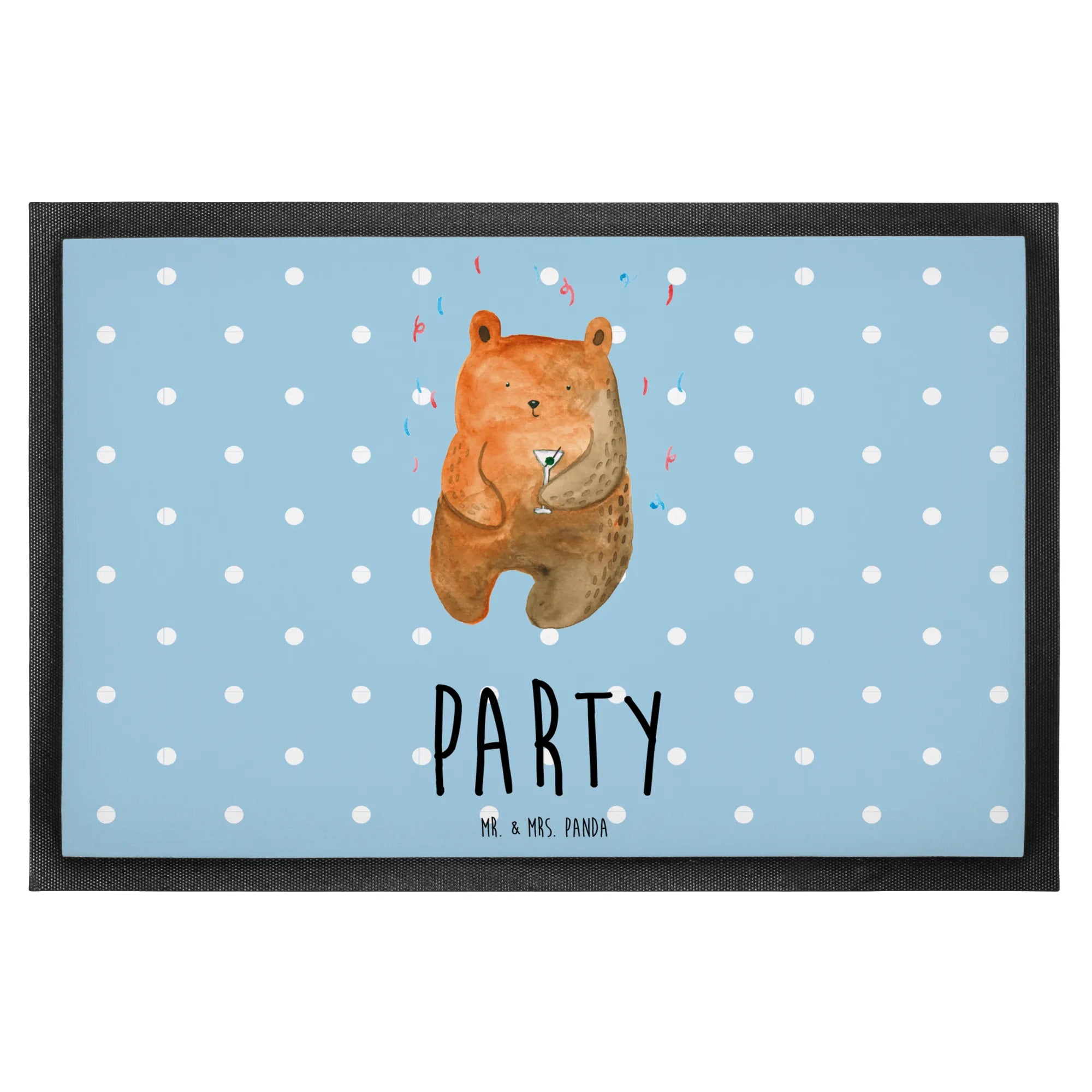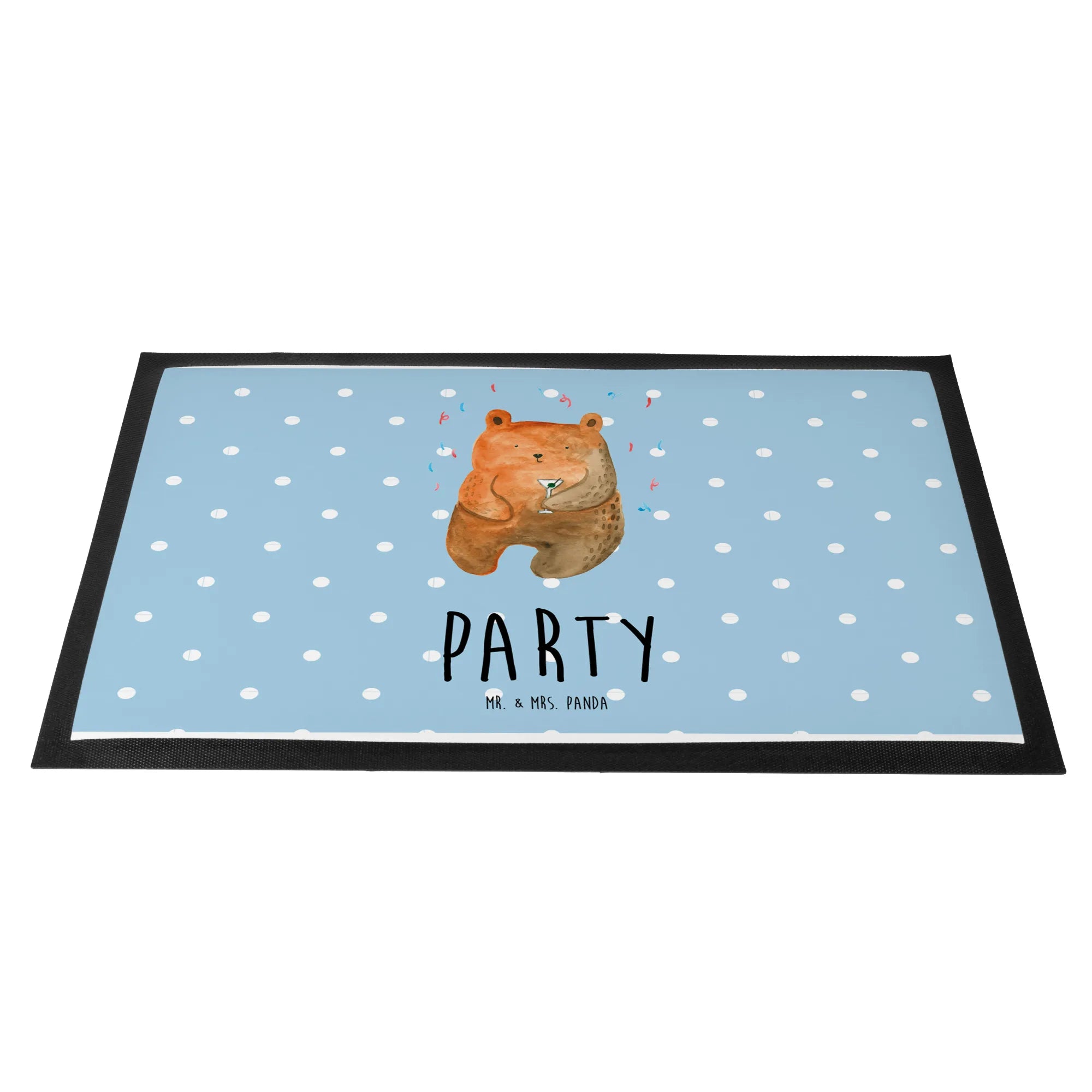 Doormat bear party - 60 x 90 cm - with a saying - Blue Pastel