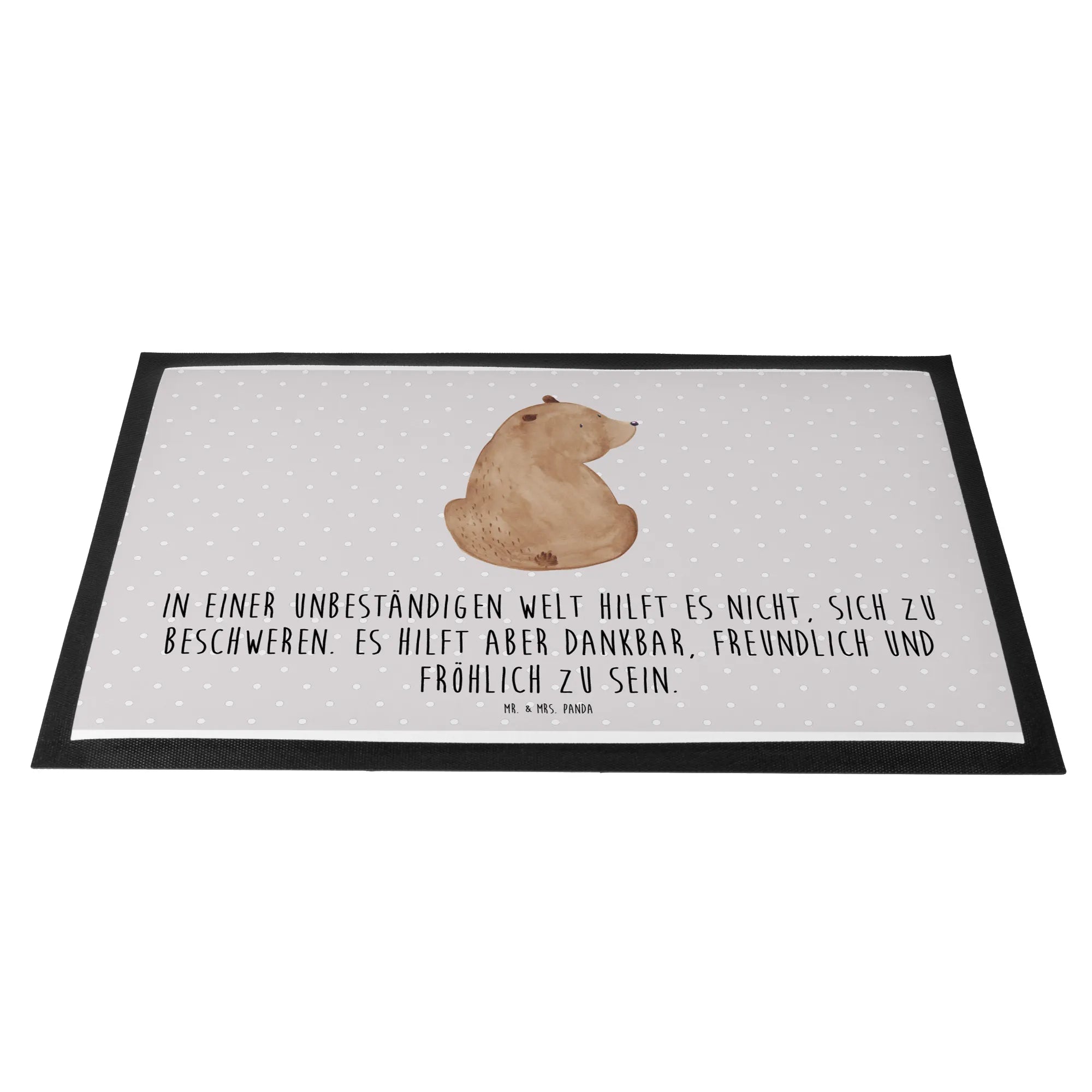 The bear motif is not only heartwarming but also serves as a gentle reminder of the importance of gratitude and positivity in our fast-paced world. With its accompanying saying, "In a volatile world, it doesn’t help to complain. But it helps to be grateful, friendly, and cheerful!" this doormat encourages all who enter to embrace a joyful perspective. The cute bear looking over its shoulder adds a whimsical touch that will surely put a smile on anyone's face!