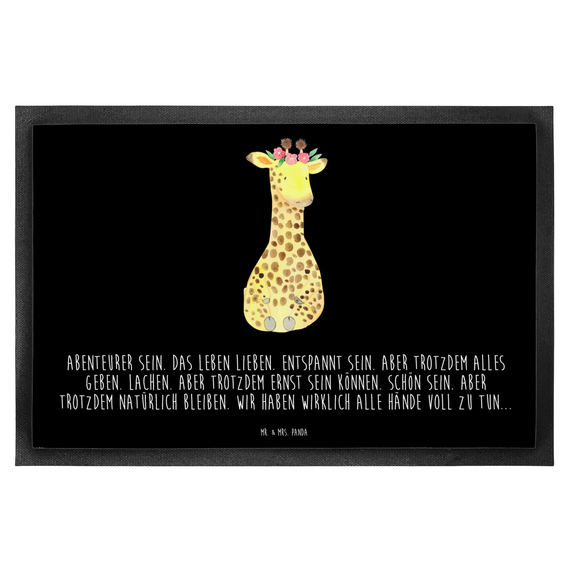 Doormat giraffe flower wreath - 60 x 90 cm - with saying - Black