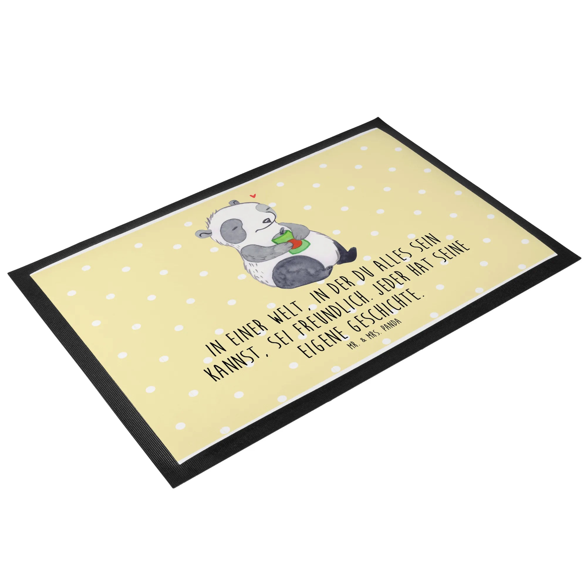 Mach deinen Eingangsbereich zu etwas Besonderem mit der Fußmatte von Mr. & Mrs. Panda! Mit einer Größe von 600 mm x 900 mm x 5 mm выделяется sie bereits beim ersten Blick. Die Vorderseite besteht aus hochwertigem Polyesterfilz, der sowohl abriebfest als auch wetterbeständig ist. Die gummierte Rückseite sorgt für einen festen Stand und der breite Gummirand verhindert das Ausfransen. Pflegeleicht ist die Matte wunderbar pflegbar - einfach ausklopfen oder bis 30°C waschen! Egal ob für dein Zuhause oder als nettes Geschenk, das fröhliche Design bringt sofort gute Laune! Erhältlich in mehreren Größen, wird diese Fußmatte zum Hingucker im Flur.